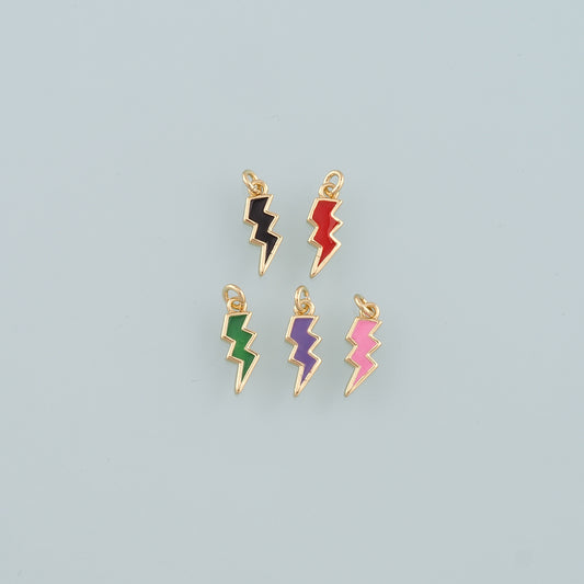18K Gold Filled Lightning Pendant,Enamel Lightning Charm Bracelet Necklace for DIY Jewelry Making Supply