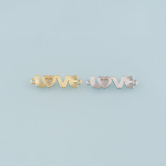 18K Gold Filled Love Connector,CZ Micro Pave Heart Charm Bracelet Necklace for DIY Jewelry Making Supply