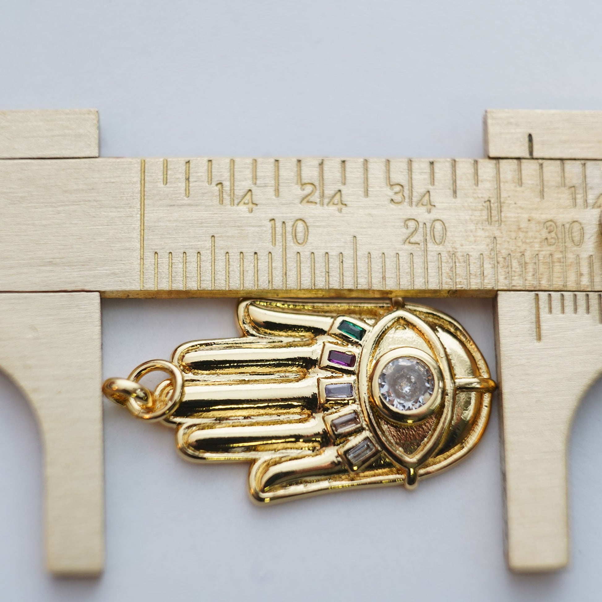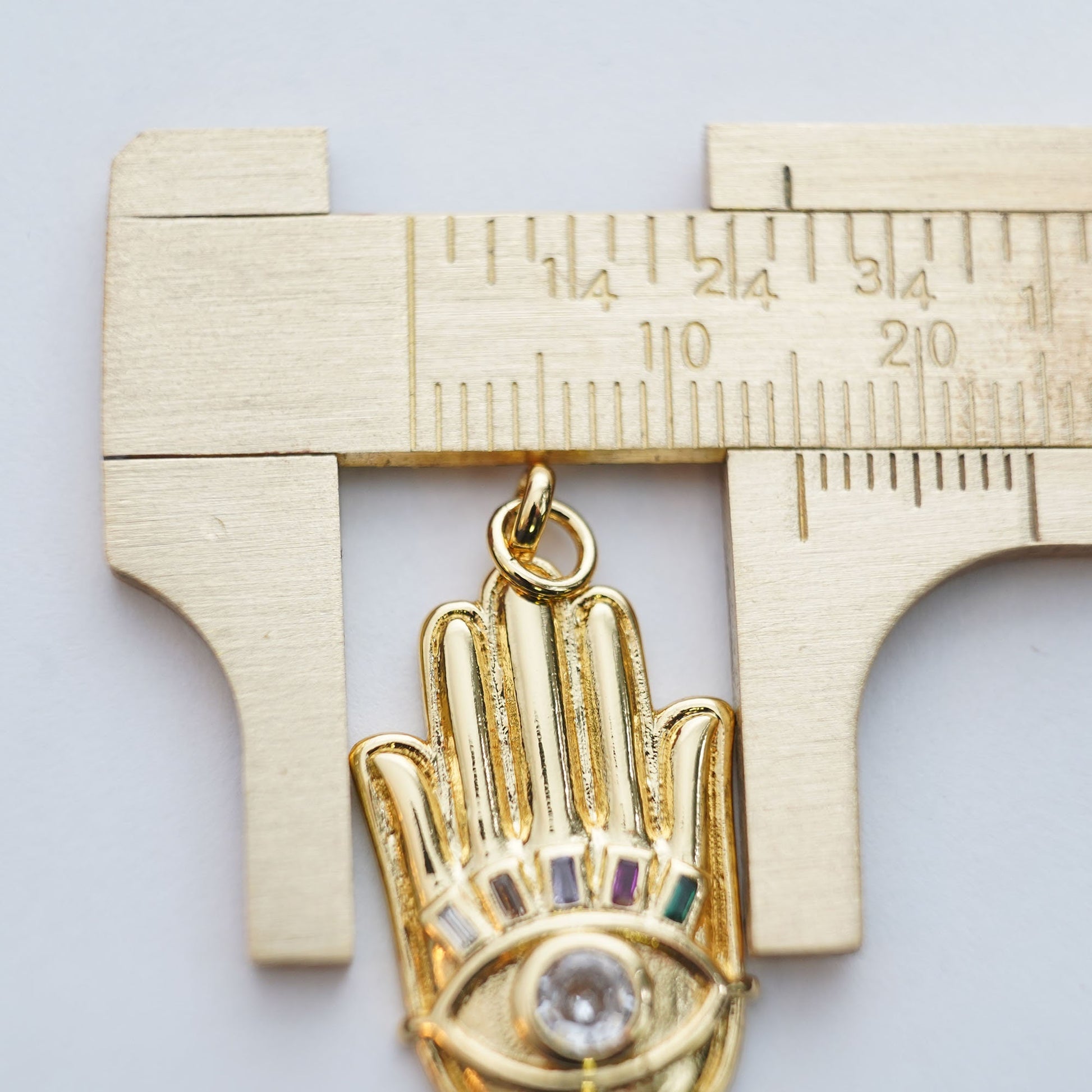 18K Gold Filled CZ Evil Eye Hamsa Hand Pendant,Hand Gesture Charm Necklace for DIY Jewelry Making Supply