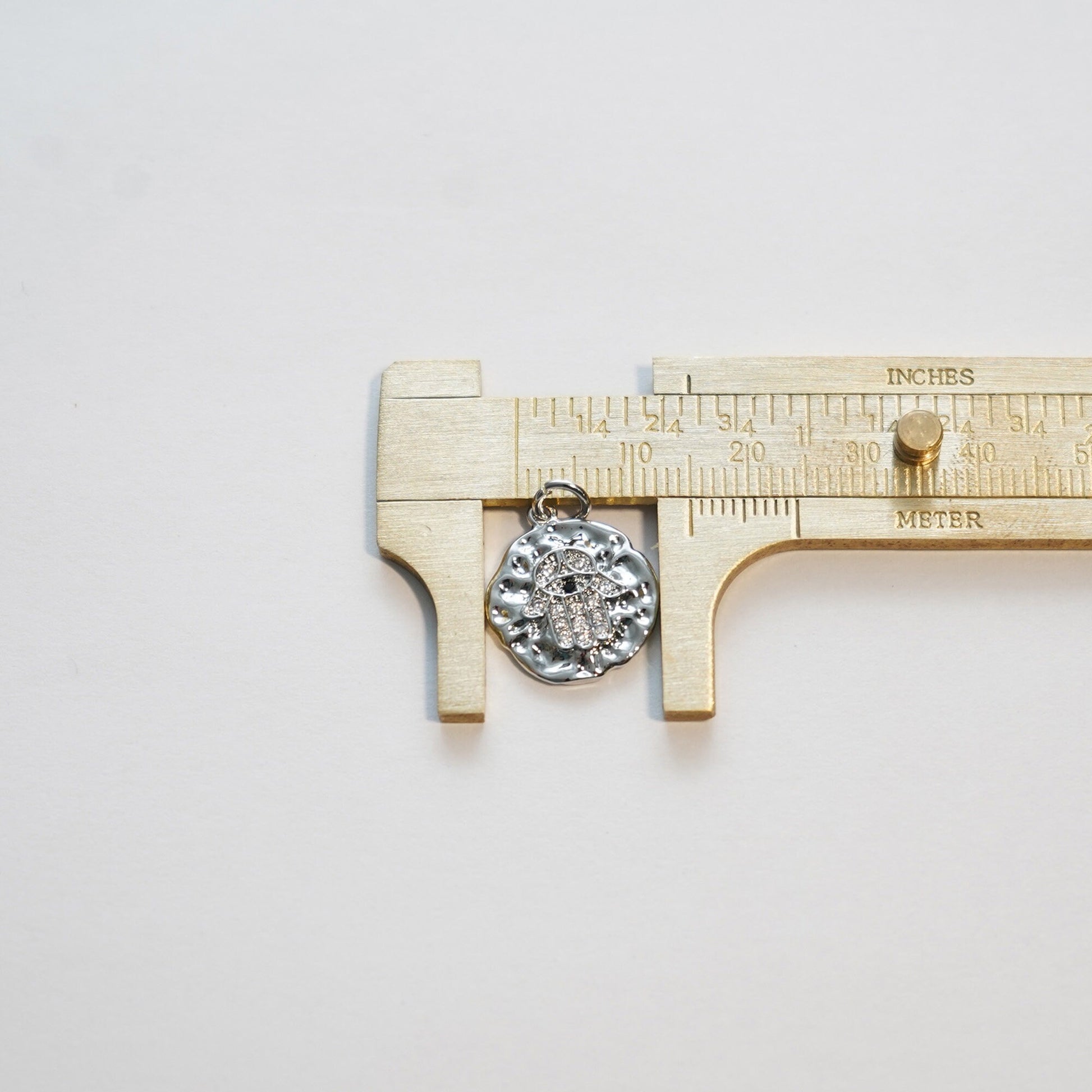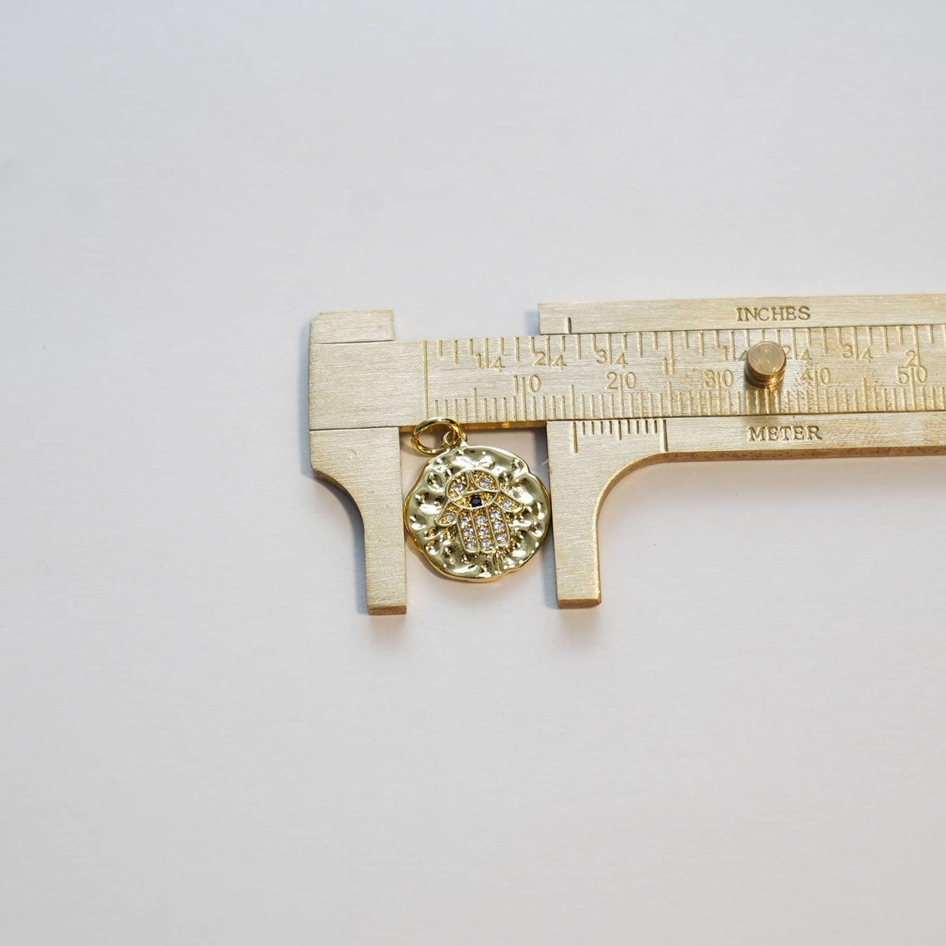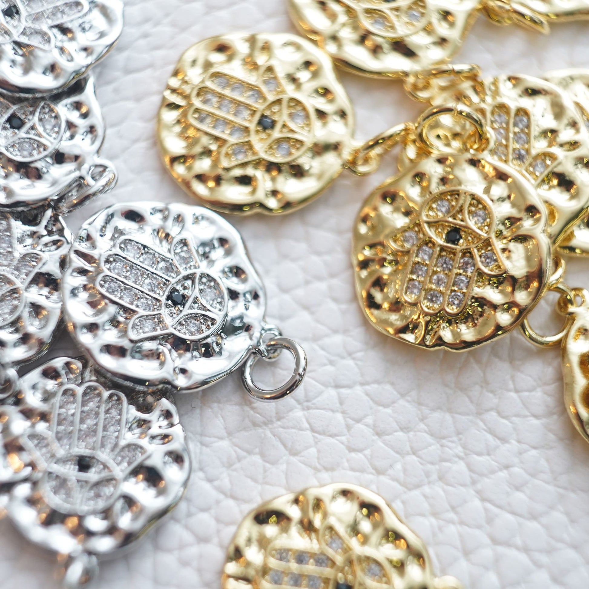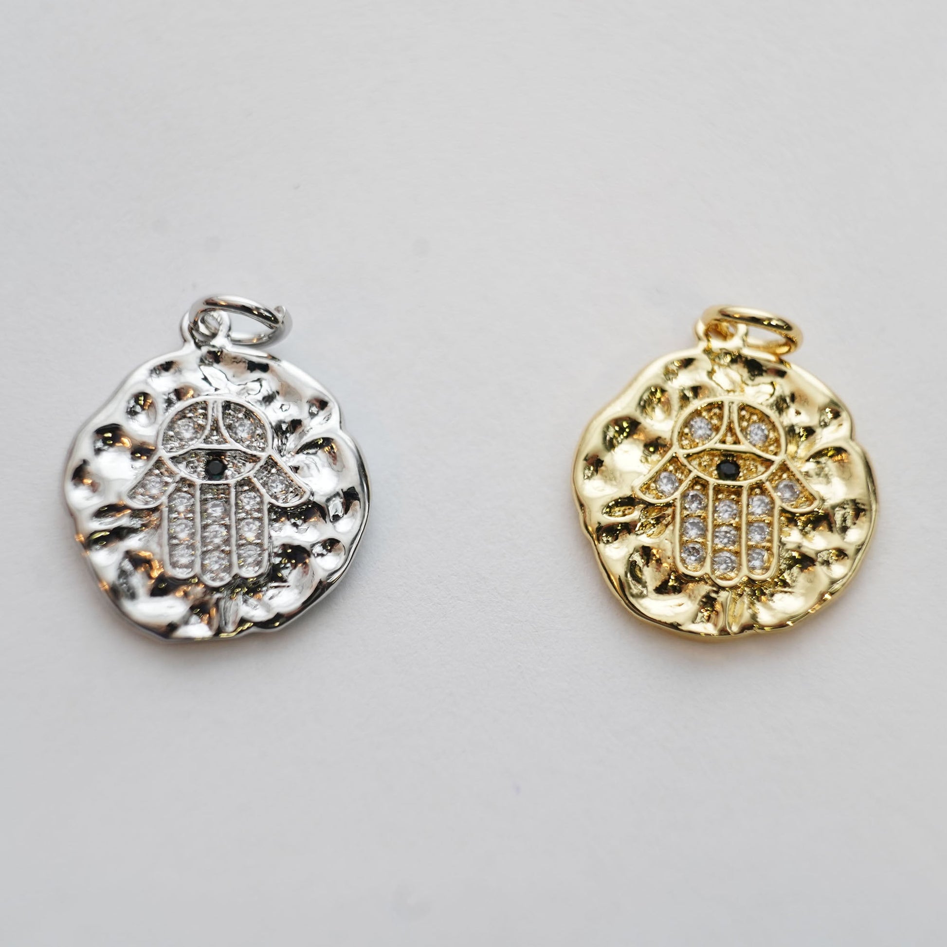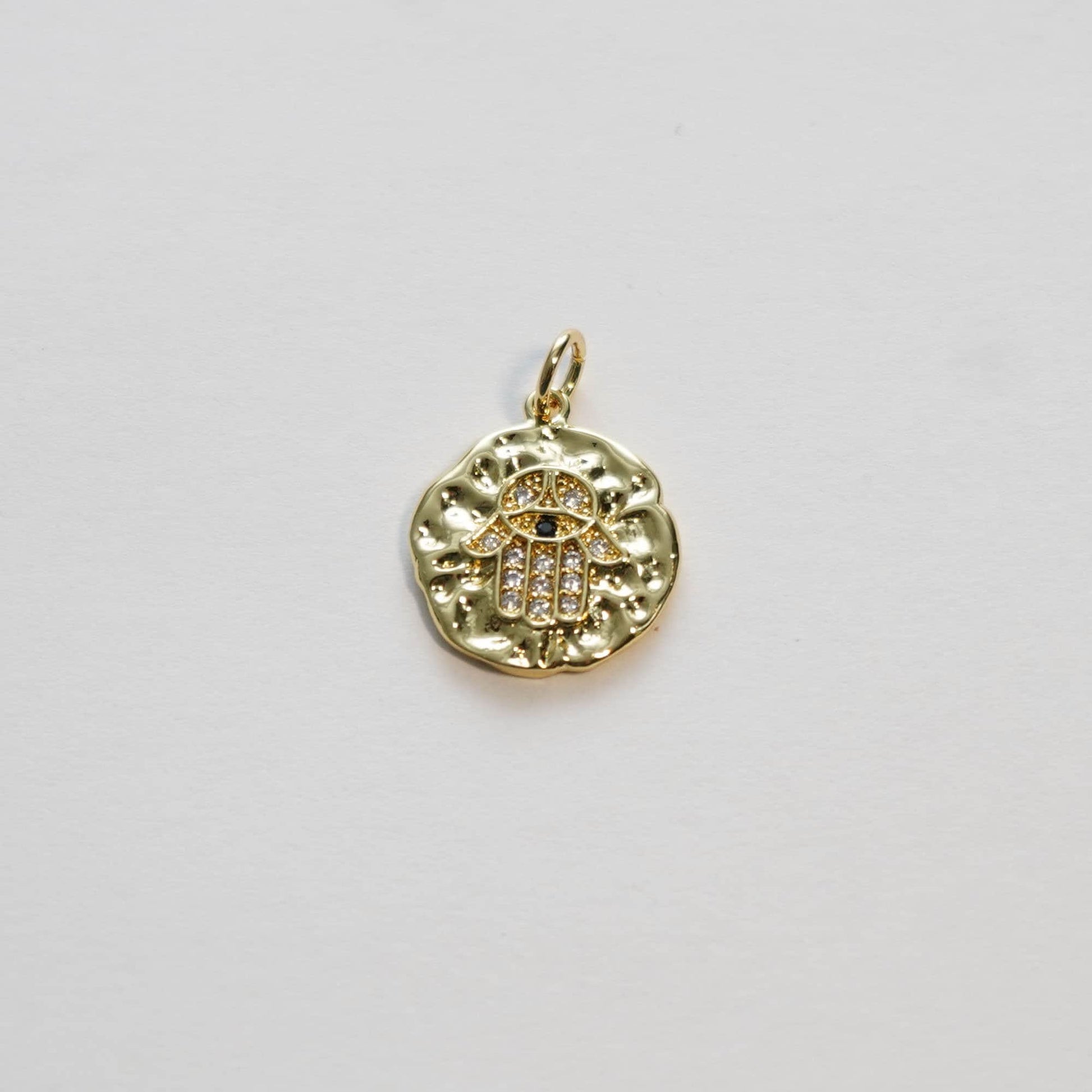 18K Gold Filled Hamsa Evil Eye Pendant,Coin CZ Micro Pave Evil Eye Charm Necklace for DIY Jewelry Making Supply