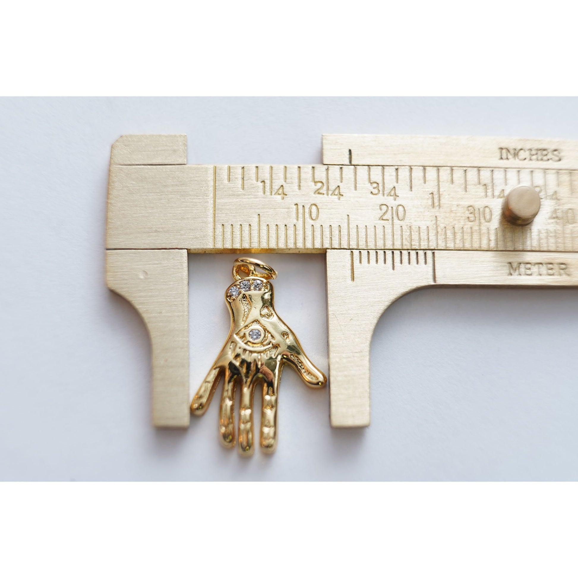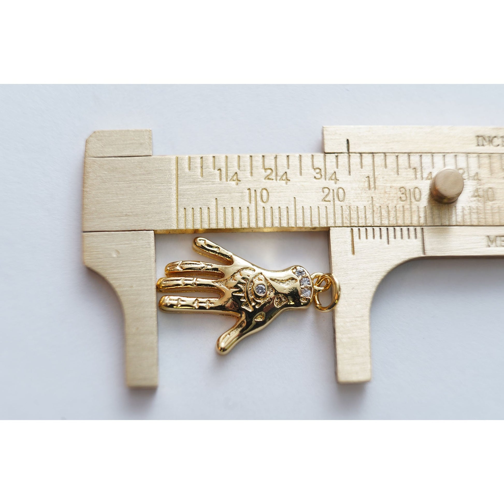 18K Gold Filled Hamsa Hand Pendant,Cubic Zirconia Hand Evil Eye Charm Necklace for DIY Jewelry Making Supply