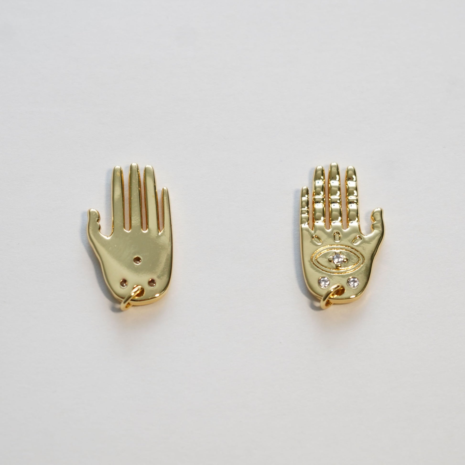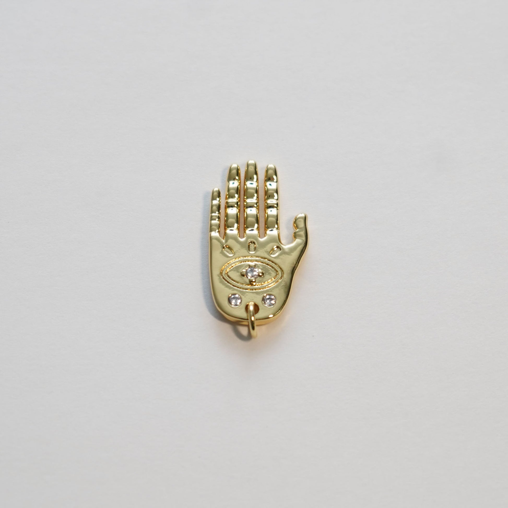 18K Gold Filled Hamsa Hand Pendant,CZ Micro Pave Hand Evill Eye Charm Necklace for DIY Jewelry Making Supply