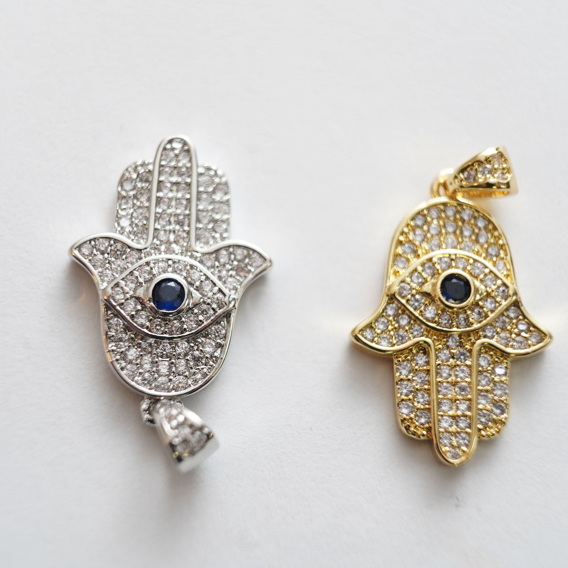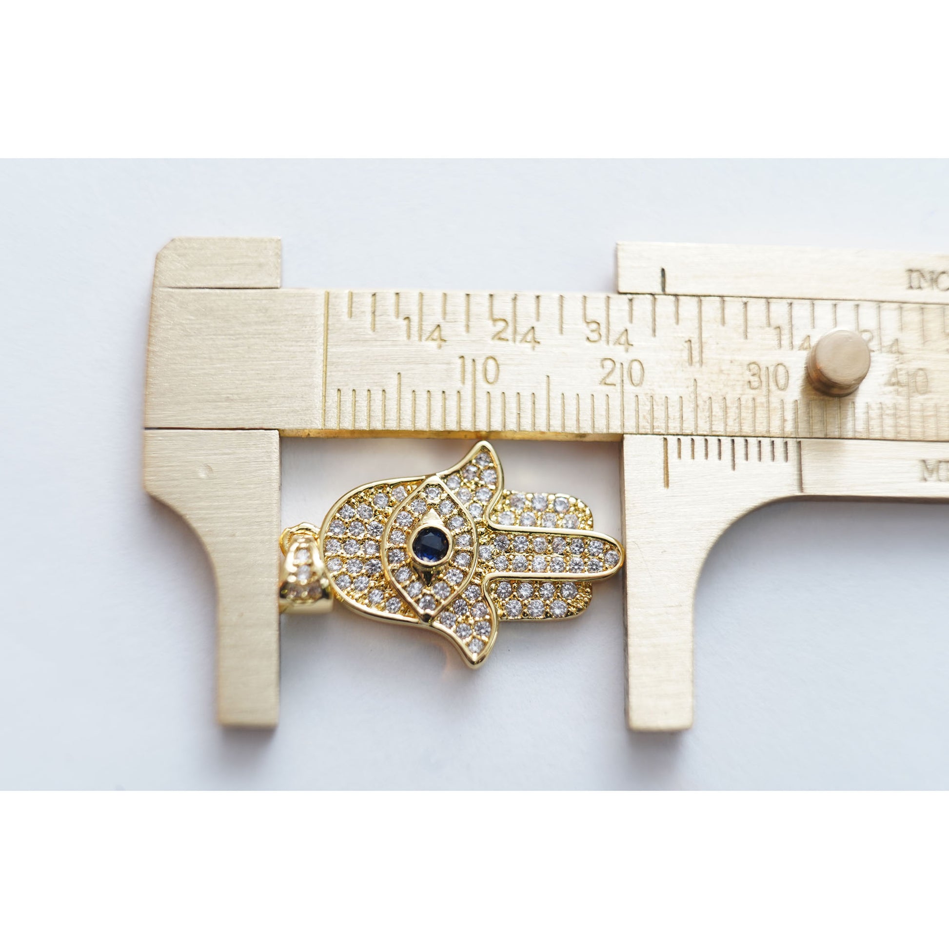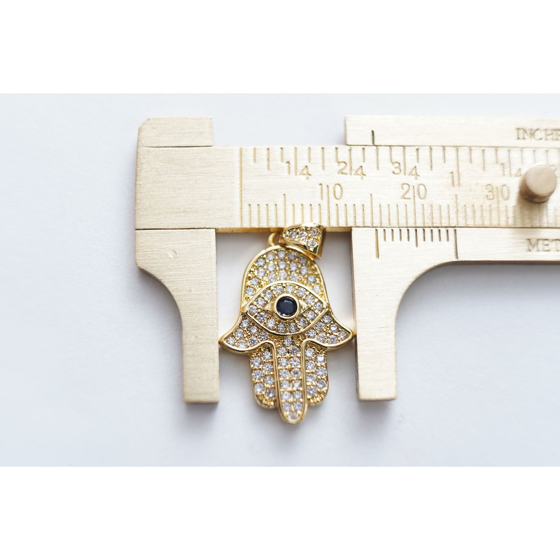 18K Gold Filled Hamsa Hand Pendant,CZ Micro Pave Hand Evill Eye Charm Necklace for DIY Jewelry Making Supply