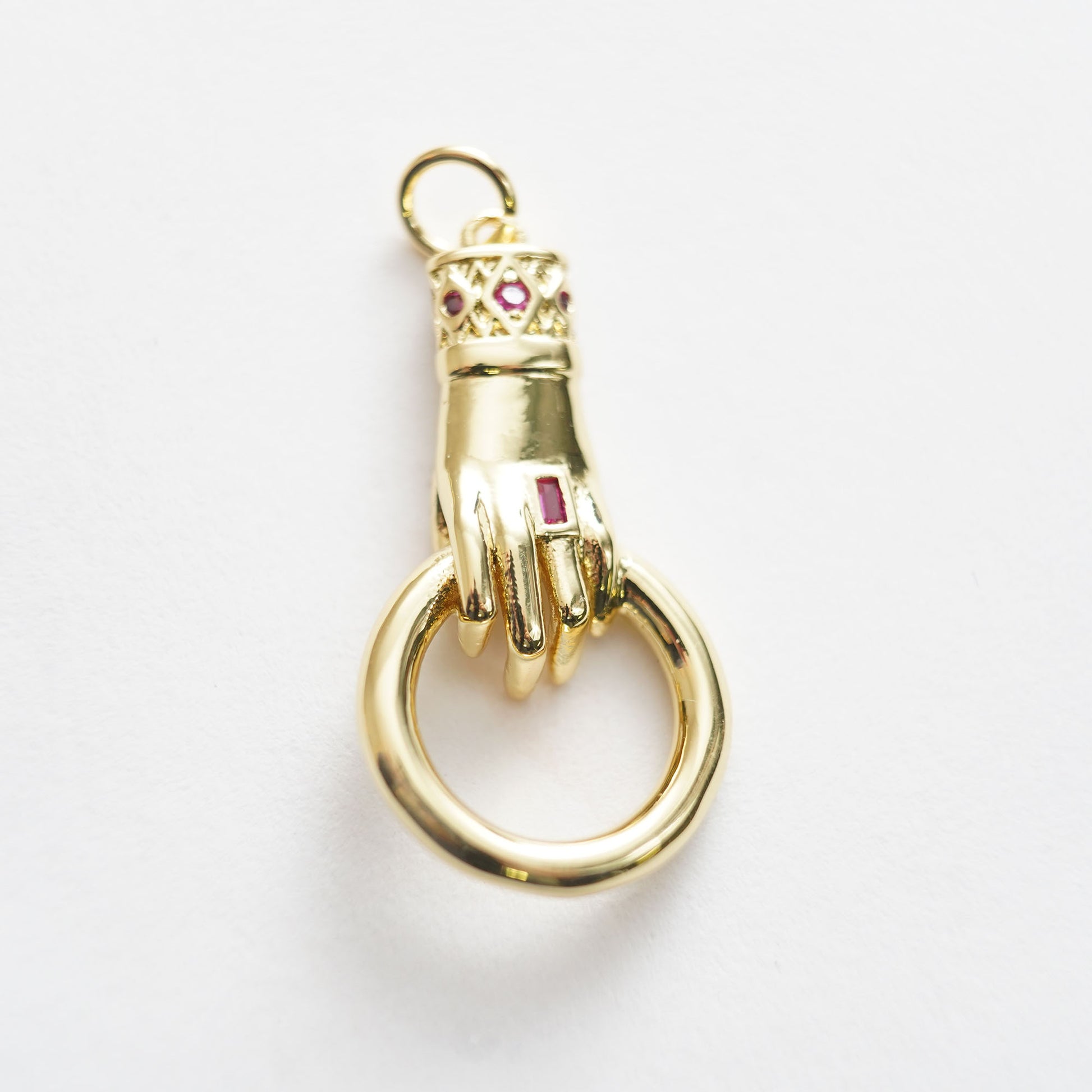 18K Gold Filled Hamsa Hand Pendant,Hand Charm Necklace for DIY Jewelry Making Supply