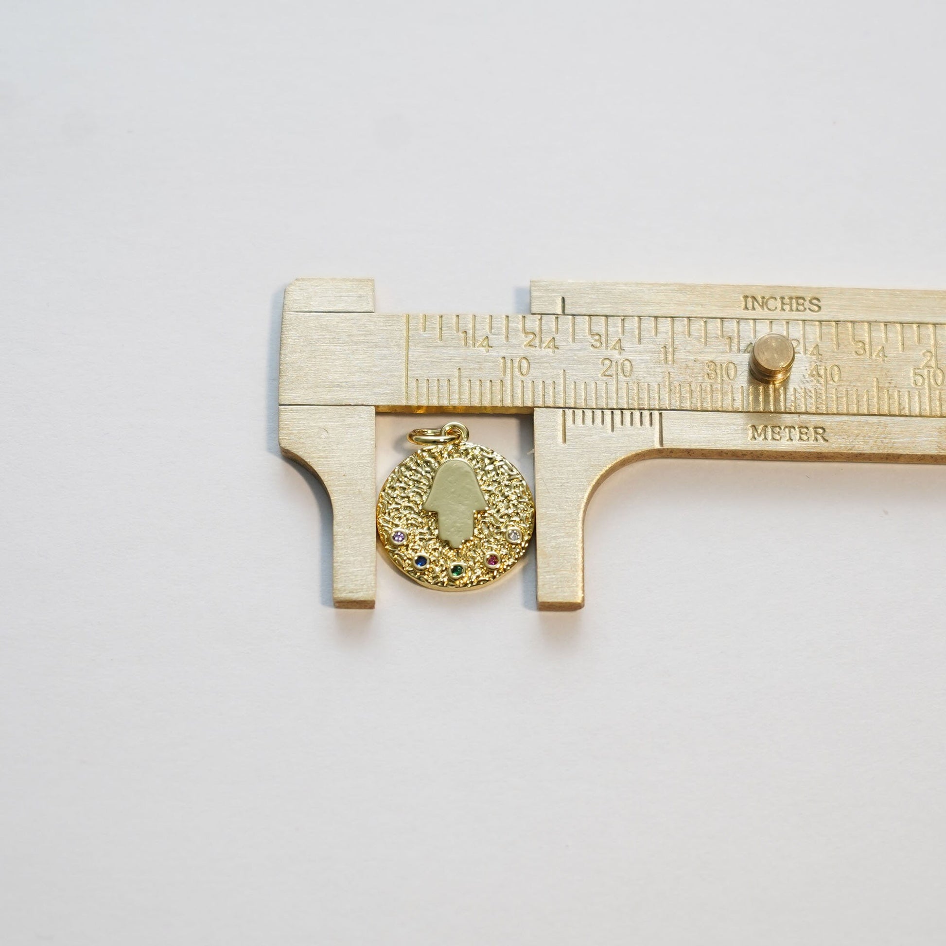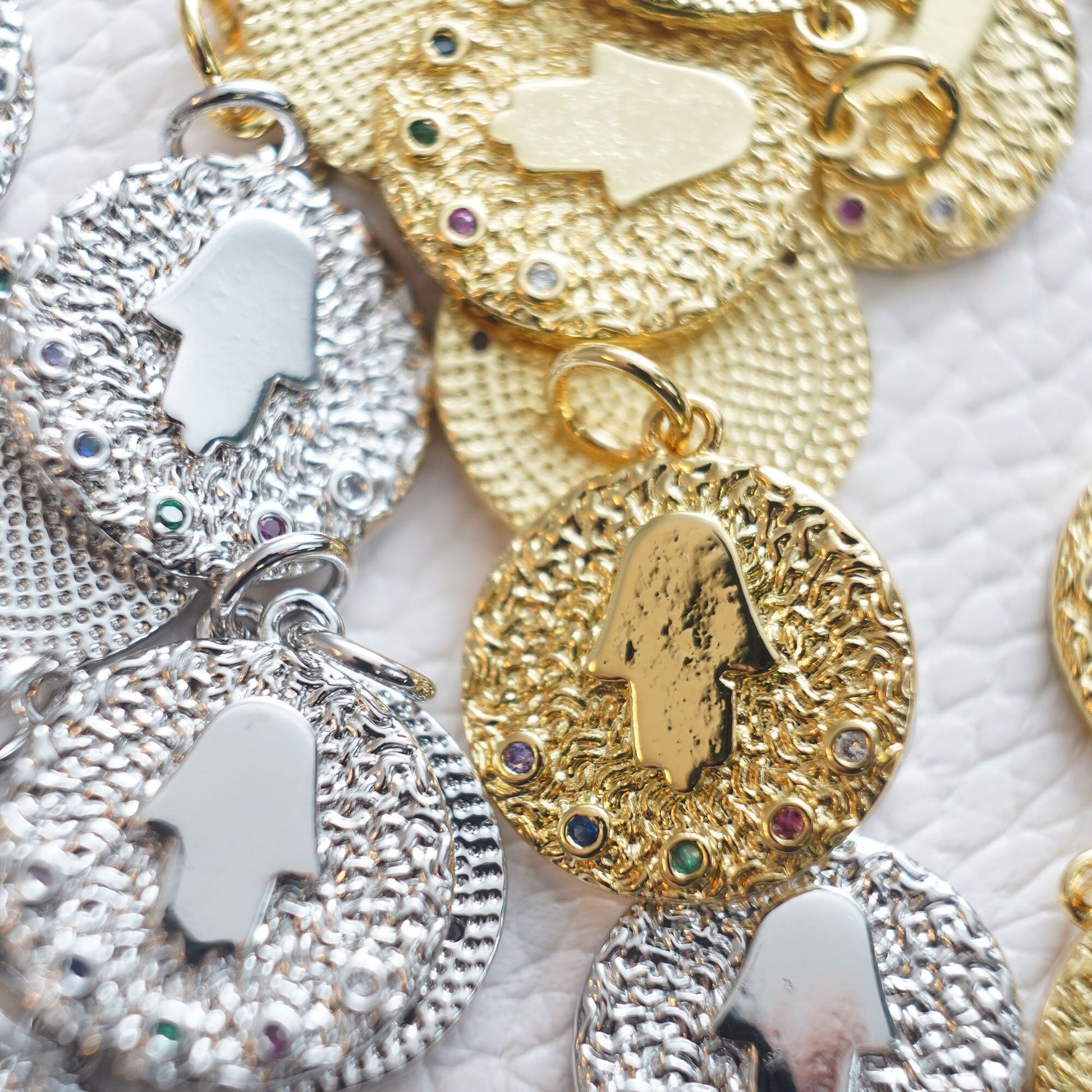 18K Gold Filled Hamsa Pendant,Coin CZ Micro Pave Hamsa Charm Necklace for DIY Jewelry Making Supply