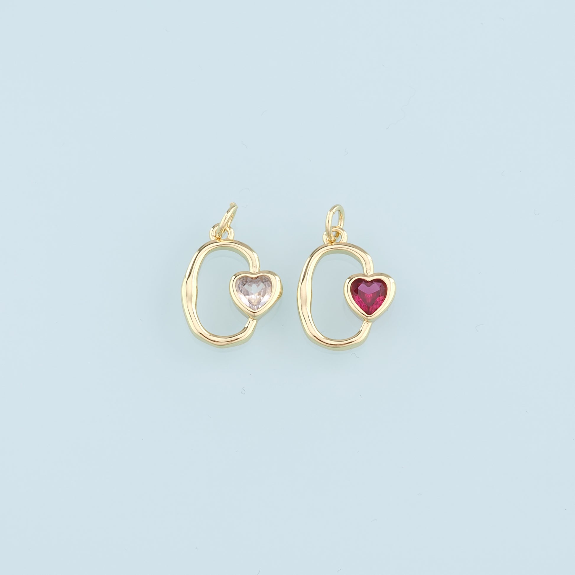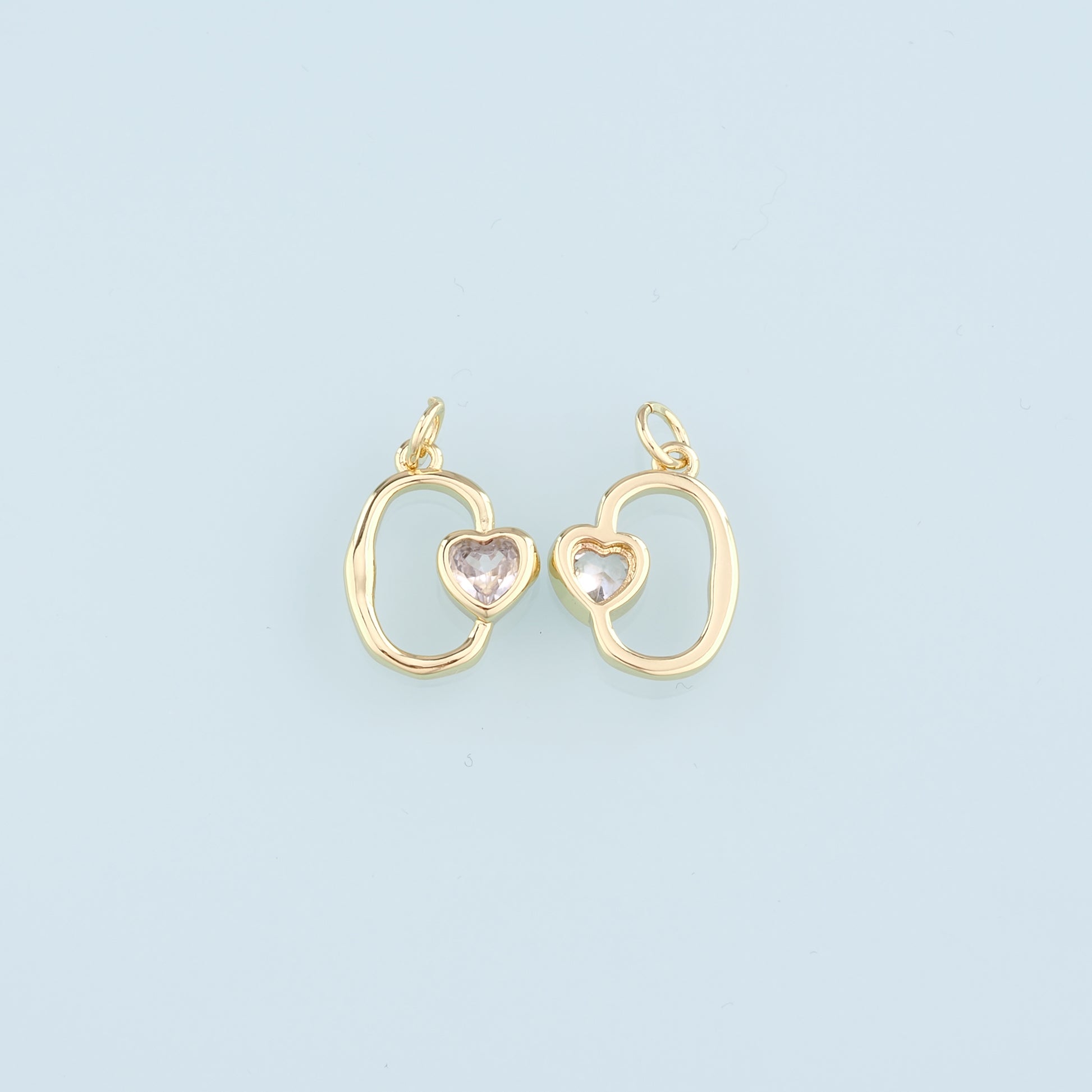 18K Gold Filled Heart Pendant,Crystal Heart Charm Bracelet Necklace for DIY Jewelry Making Supply