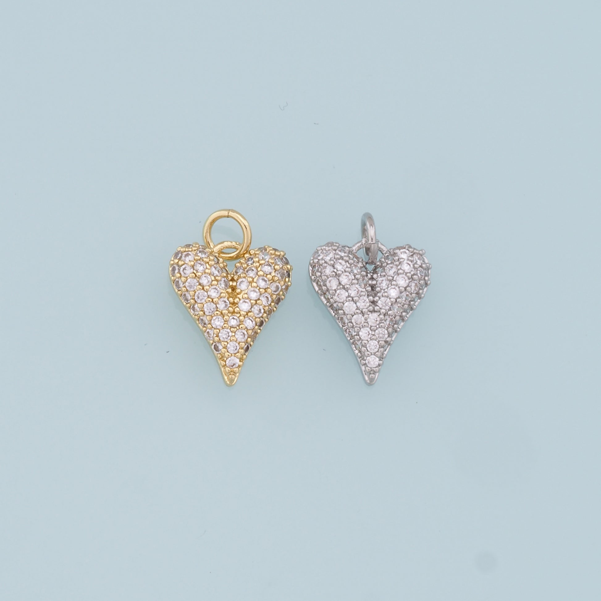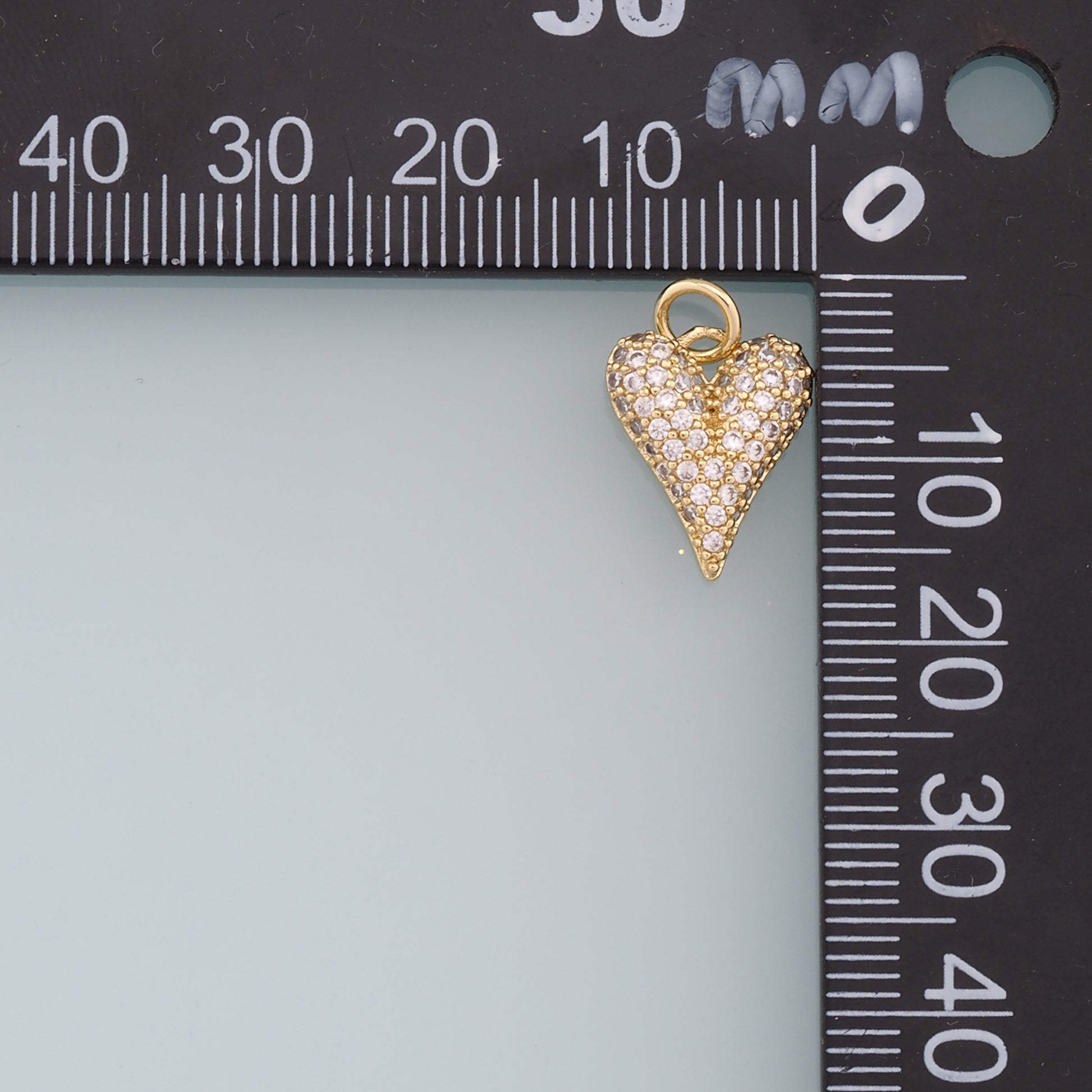 18K Gold Filled Heart Pendant,CZ Heart Charm Bracelet Necklace for DIY Jewelry Making Supply