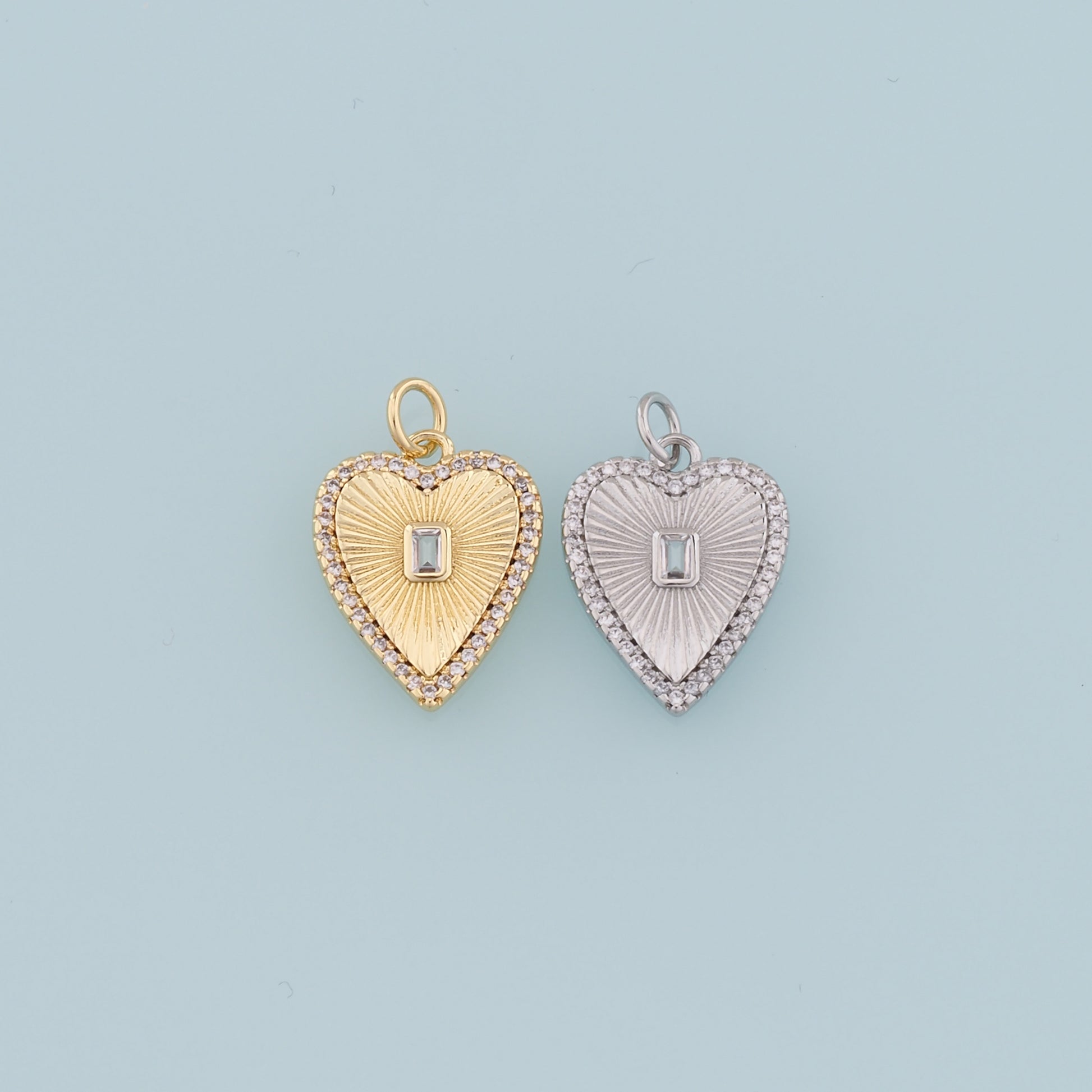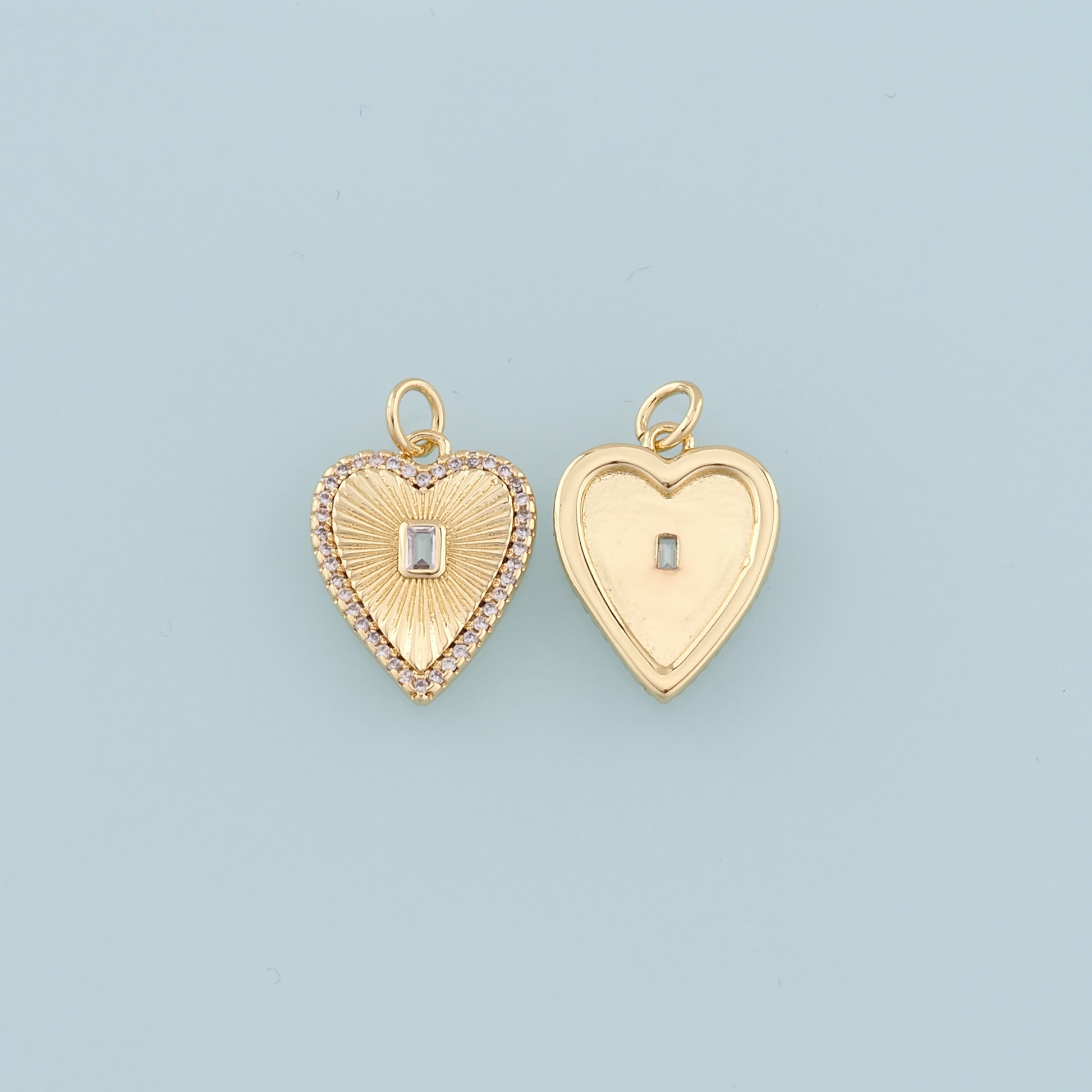 18K Gold Filled Heart Pendant,CZ Heart Charm Bracelet Necklace for DIY Jewelry Making Supply