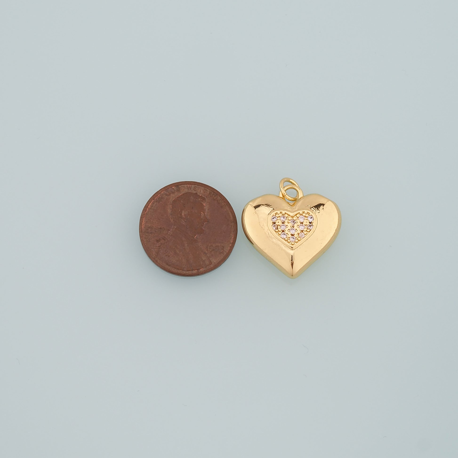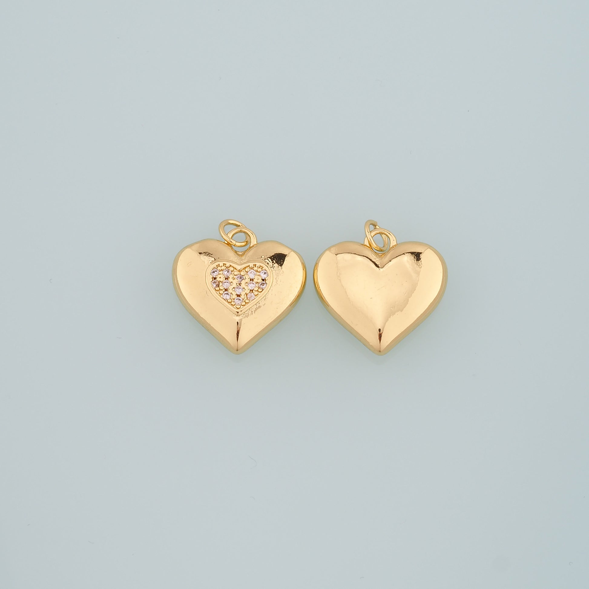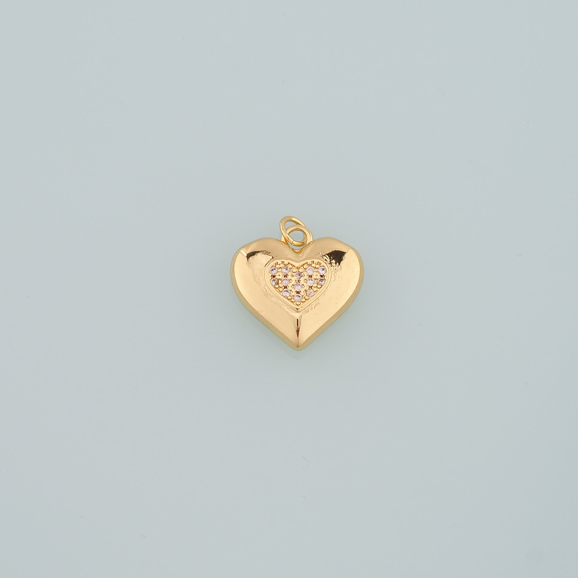 18K Gold Filled Heart Pendant,CZ Micro Pave Heart Charm Bracelet Necklace for DIY Jewelry Making Supply