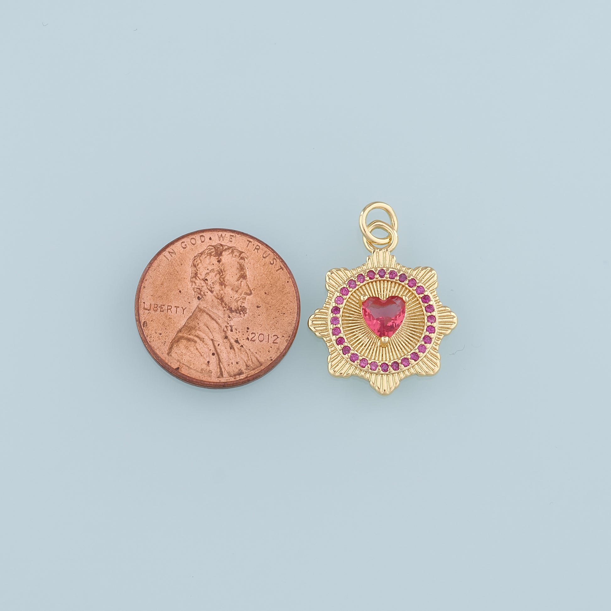 18K Gold Filled Heart Pendant,CZ Micro Pave Heart Charm Bracelet Necklace for DIY Jewelry Making Supply