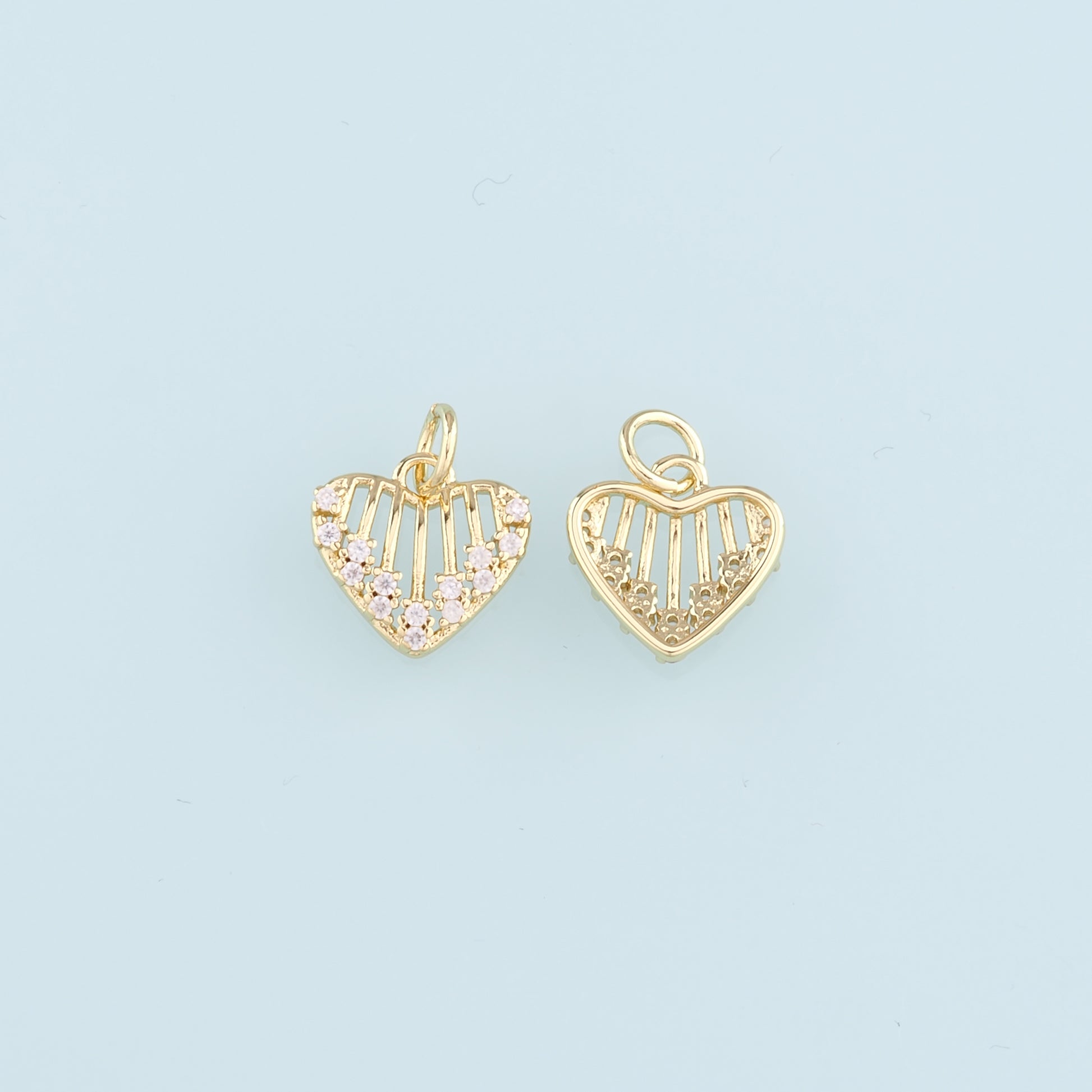 18K Gold Filled Heart Pendant,CZ Micro Pave Heart Charm Bracelet Necklace for DIY Jewelry Making Supply