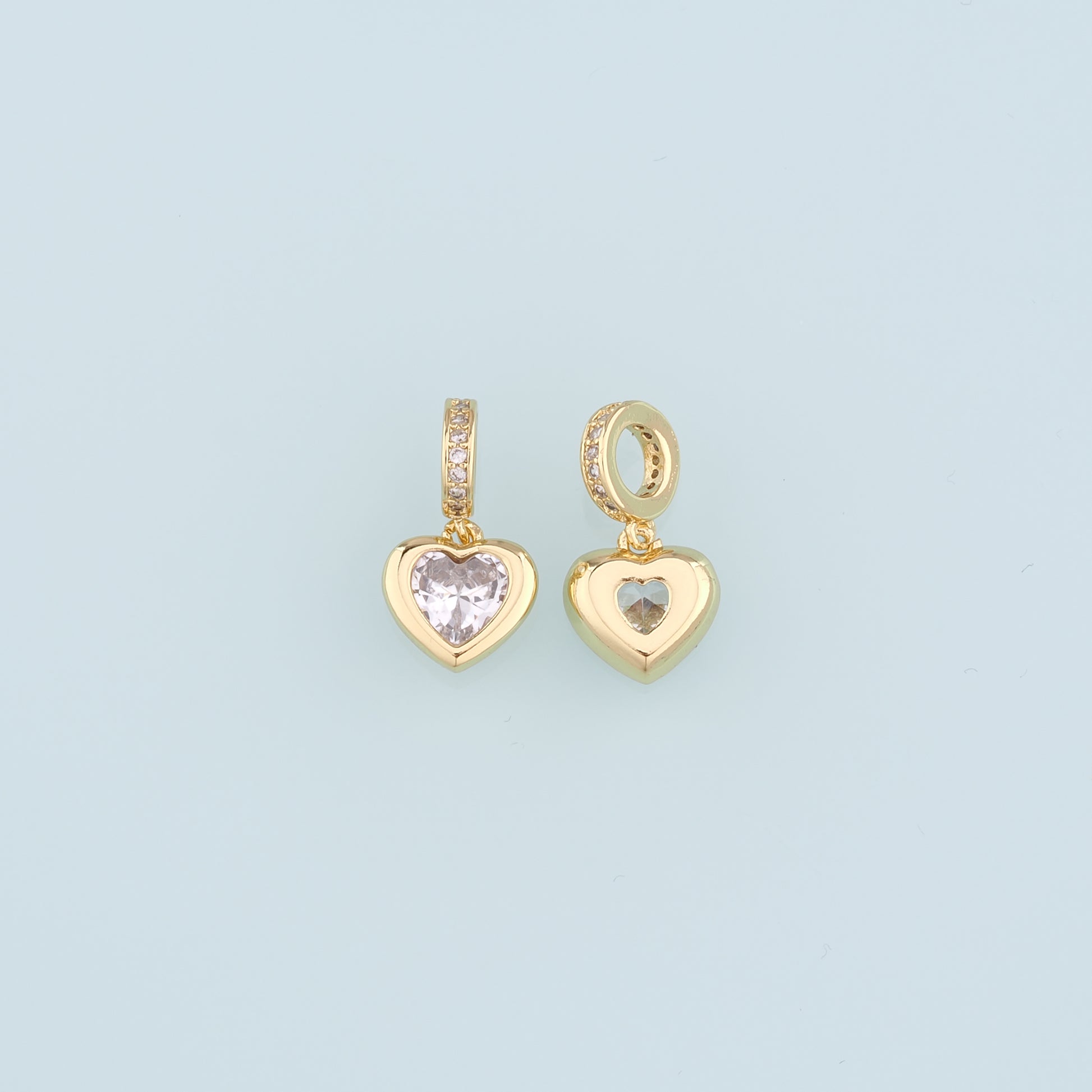 18K Gold Filled Heart Pendant,CZ Micro Pave Heart Charm Bracelet Necklace for DIY Jewelry Making Supply