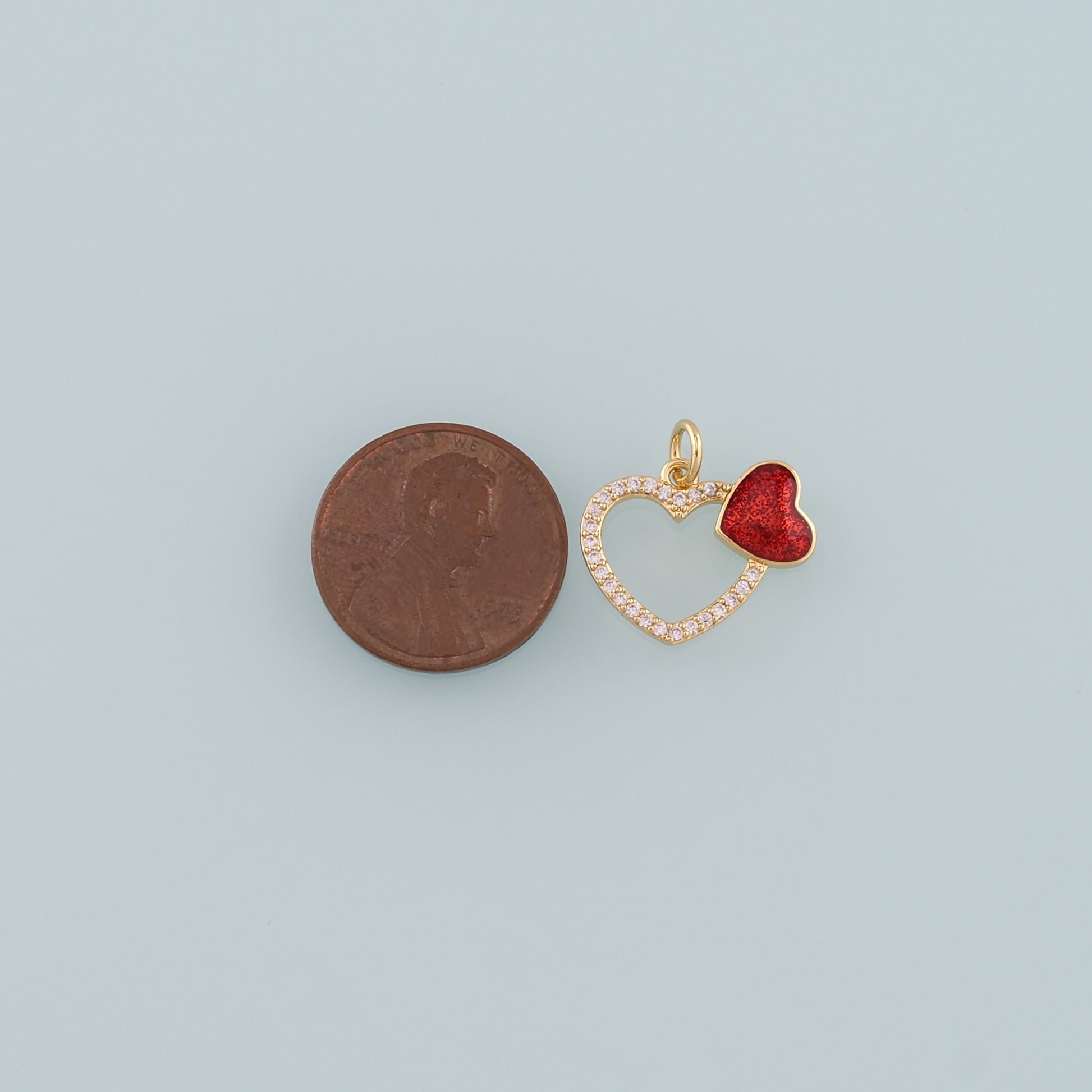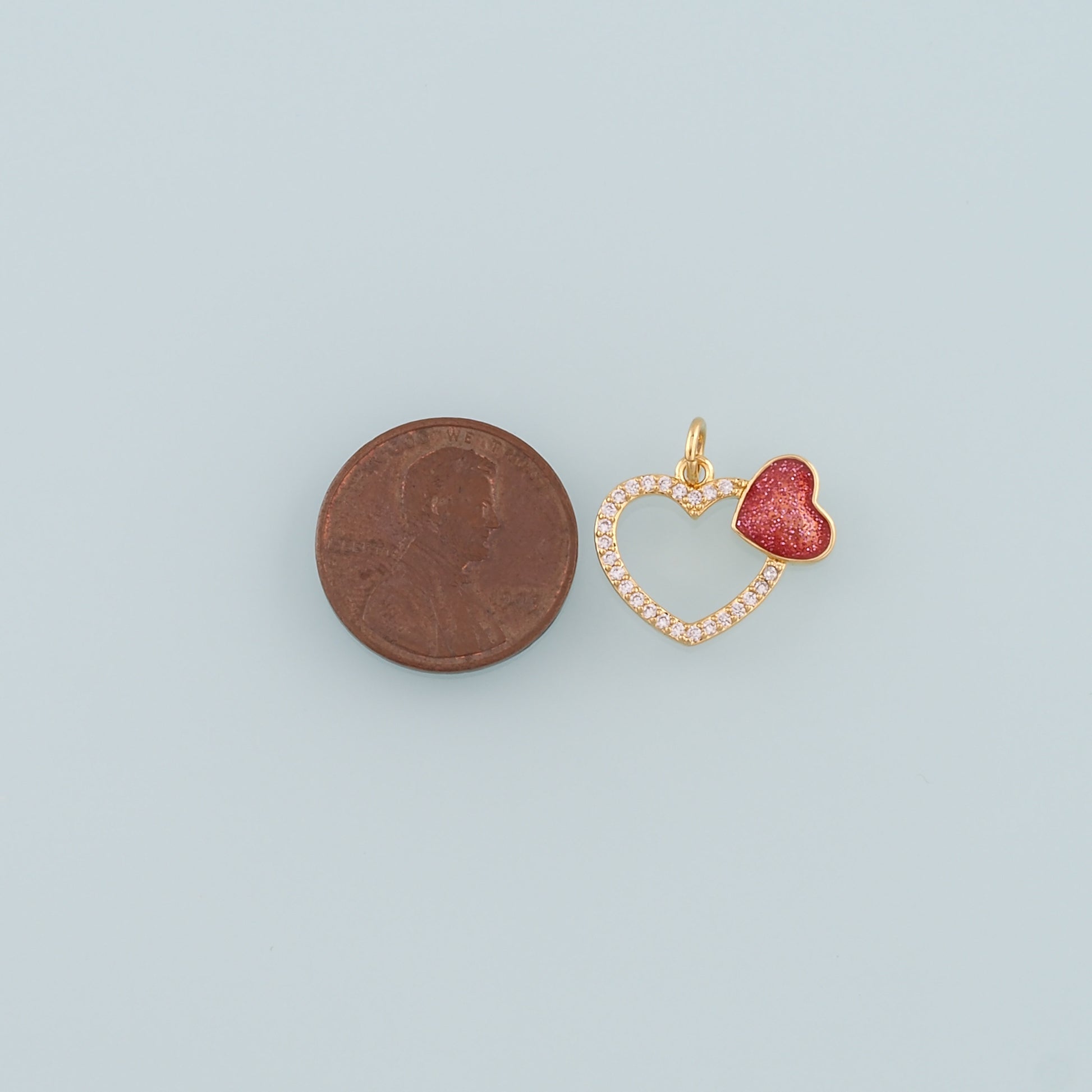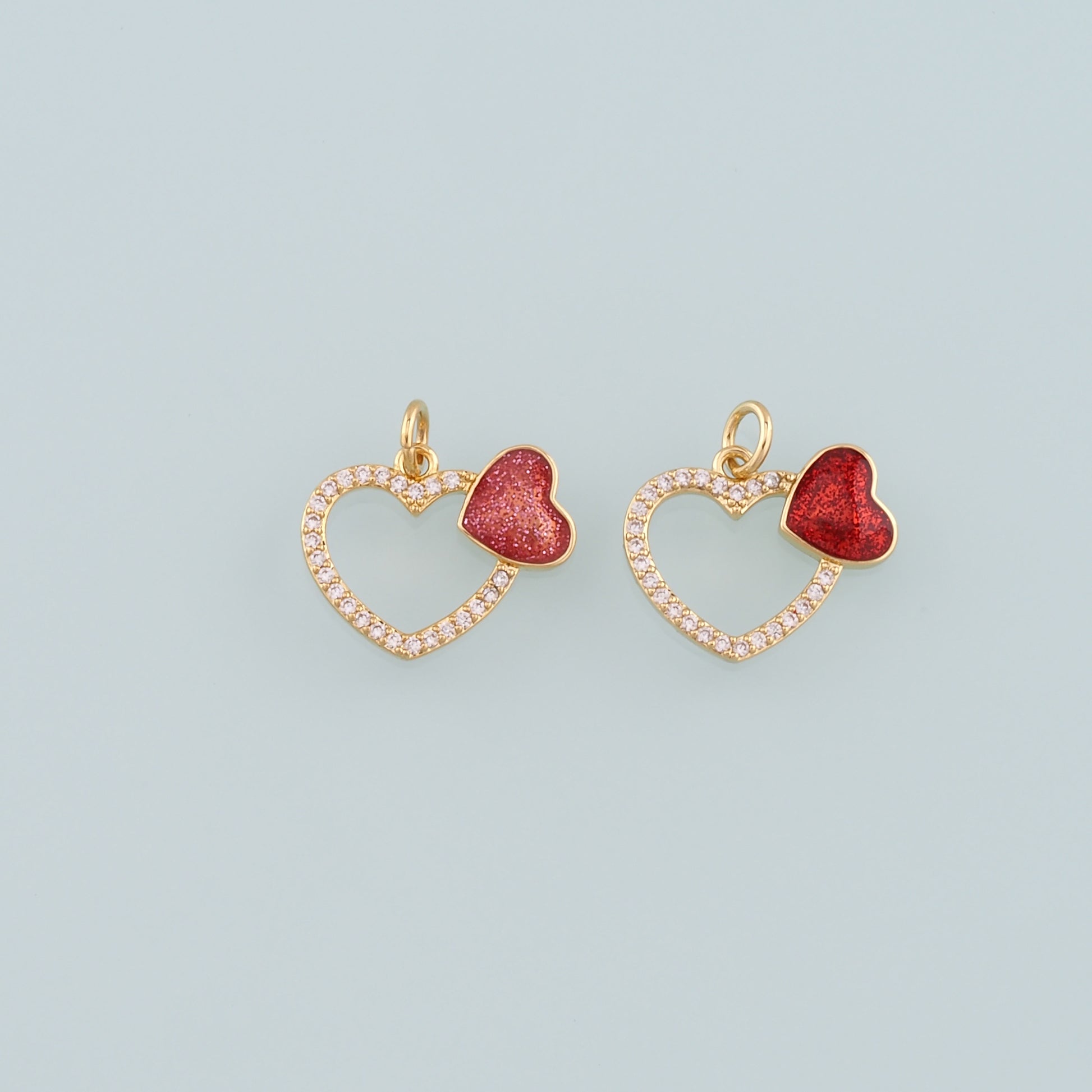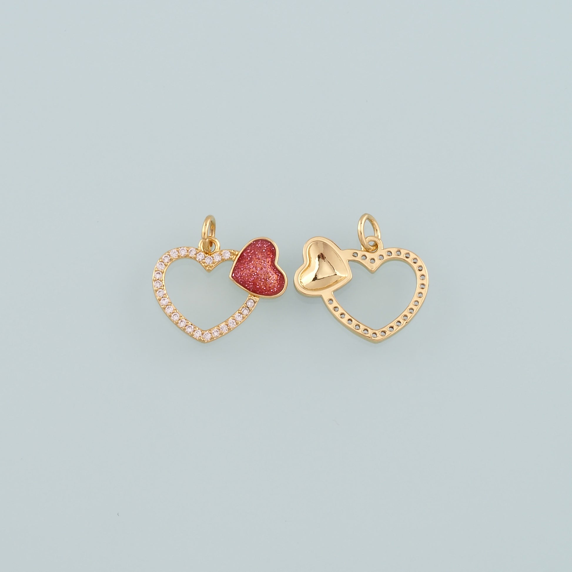 18K Gold Filled Heart Pendant,Enamel Heart Charm Bracelet Necklace for DIY Jewelry Making Supply
