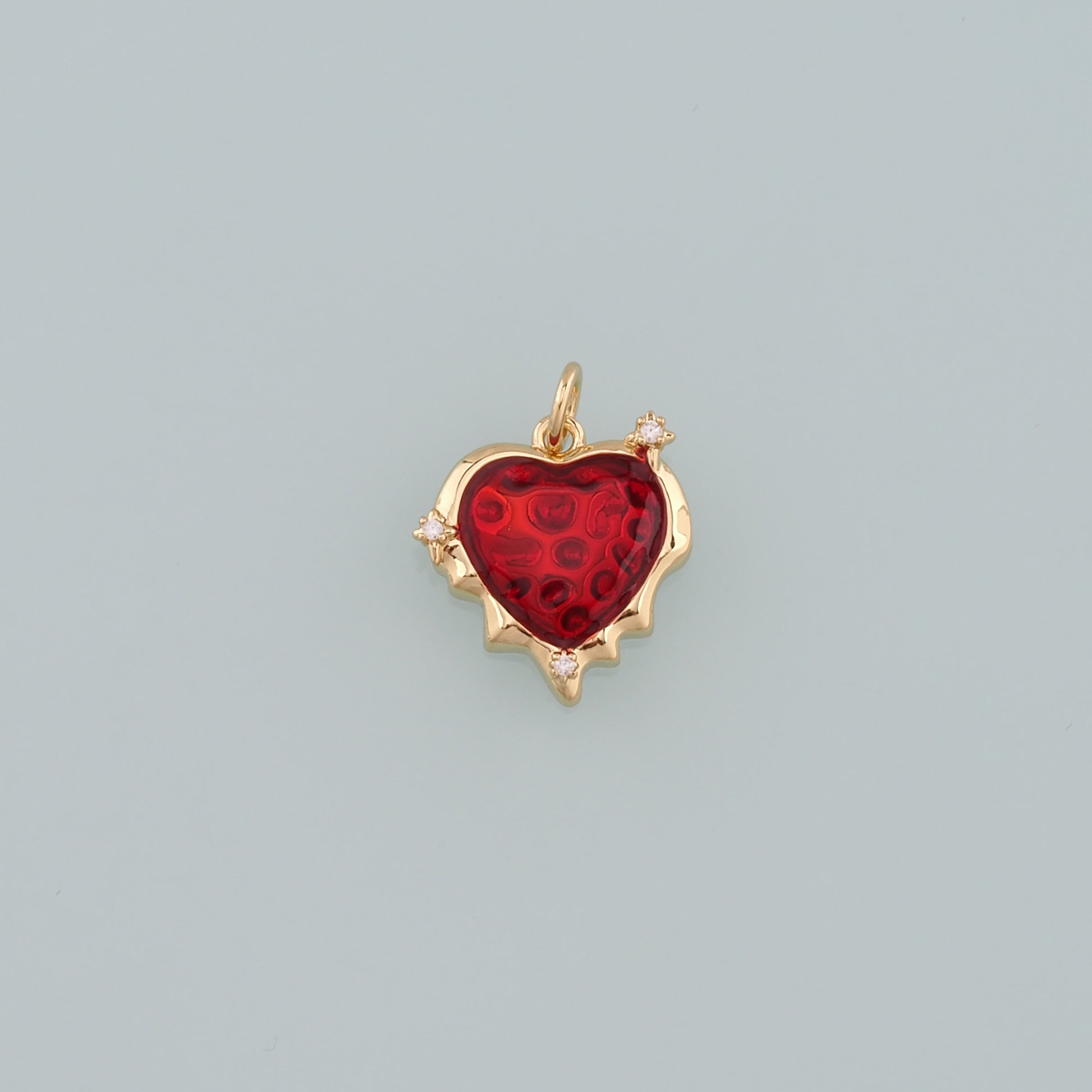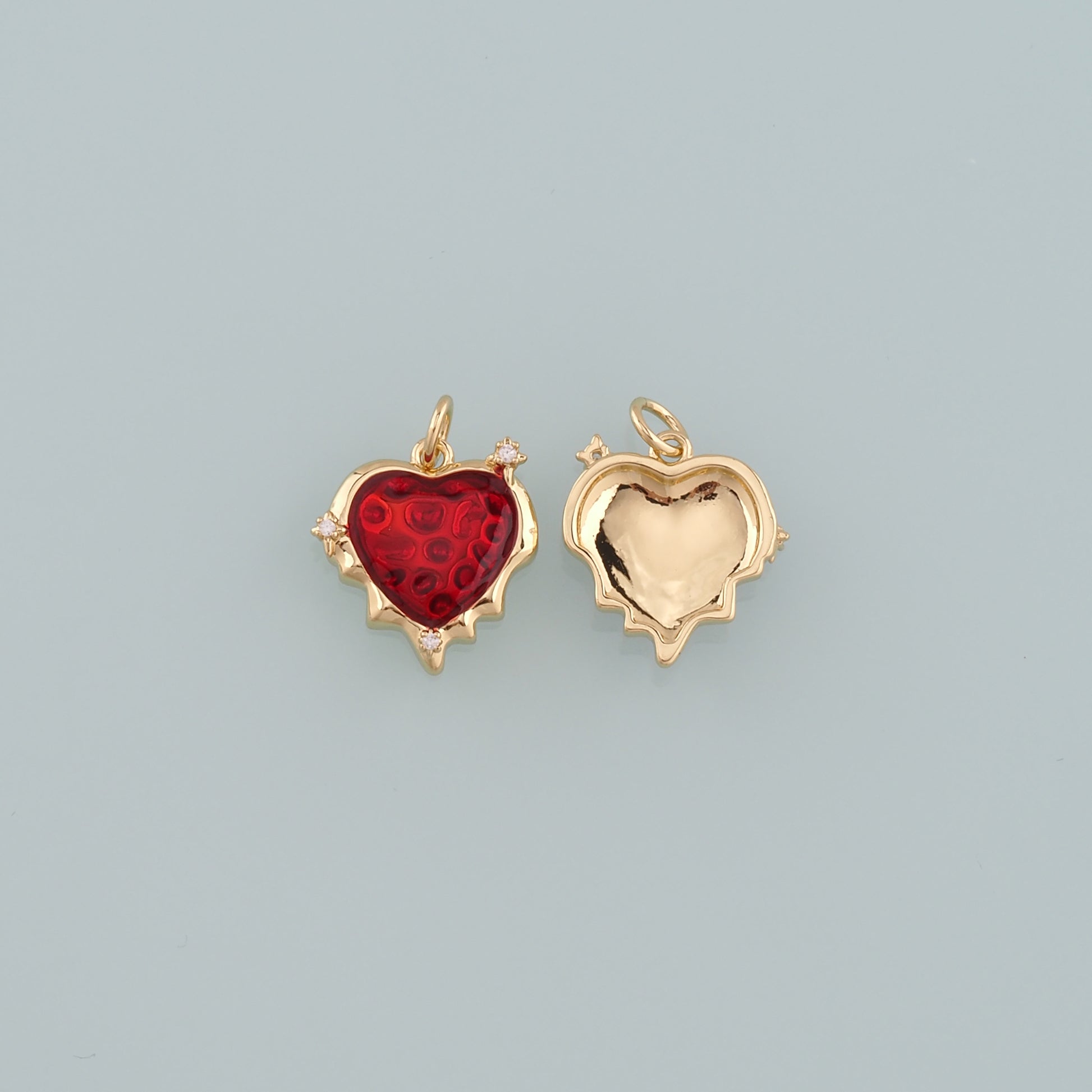 18K Gold Filled Heart Pendant,Enamel Heart Charm Bracelet Necklace for DIY Jewelry Making Supply