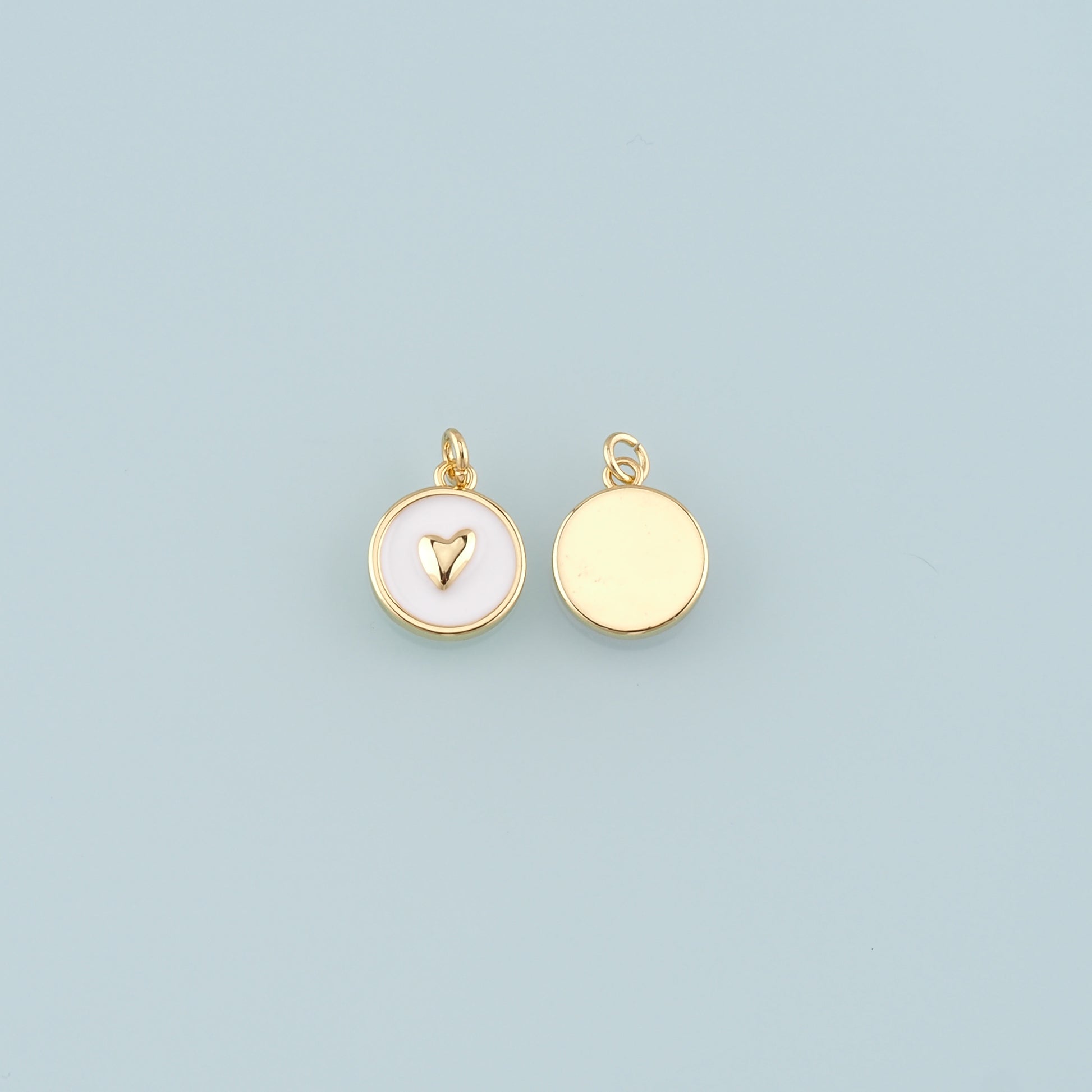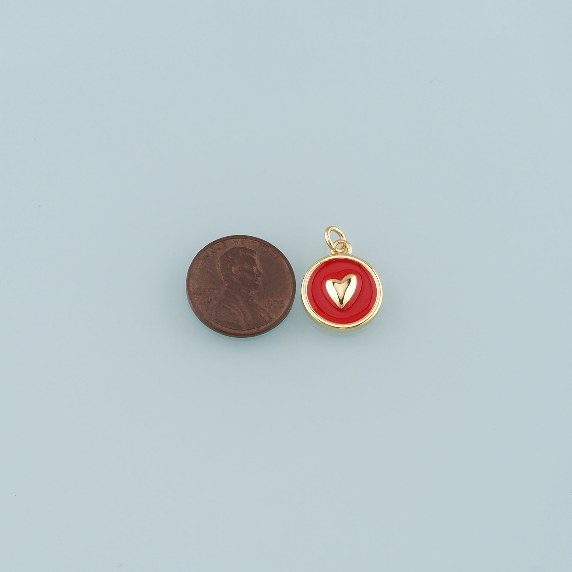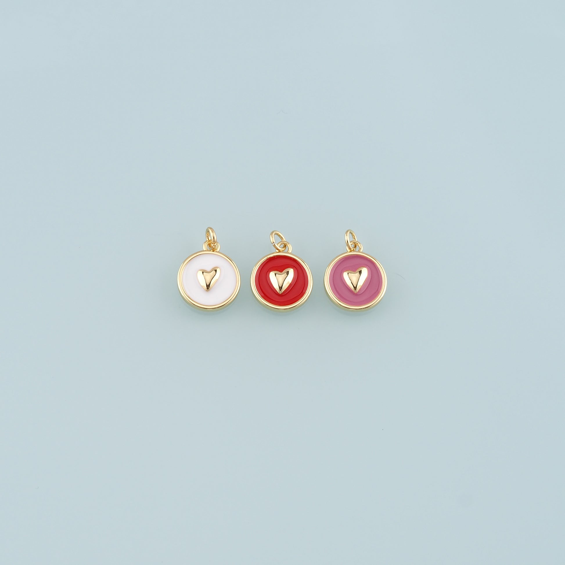 18K Gold Filled Heart Pendant,Enamel Heart Charm Bracelet Necklace for DIY Jewelry Making Supply