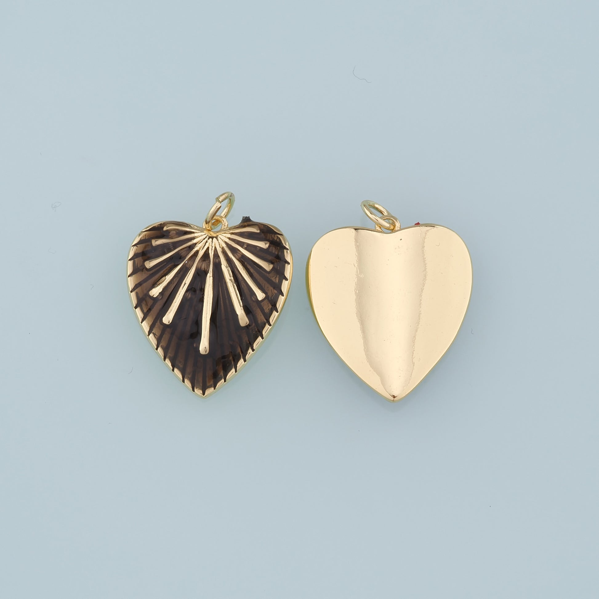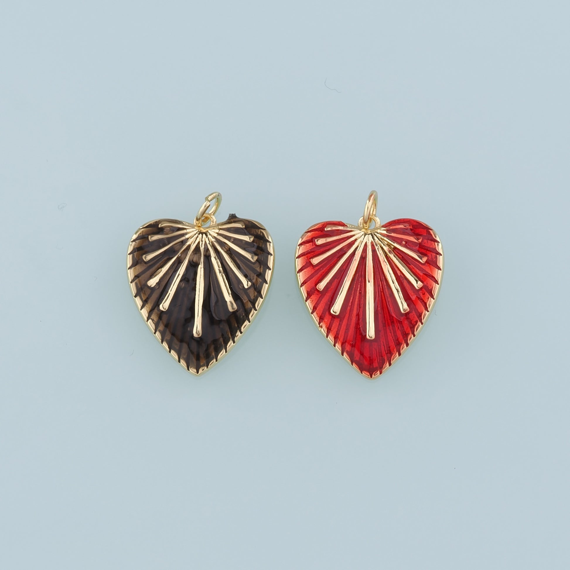 18K Gold Filled Heart Pendant,Enamel Heart Charm Bracelet Necklace for DIY Jewelry Making Supply