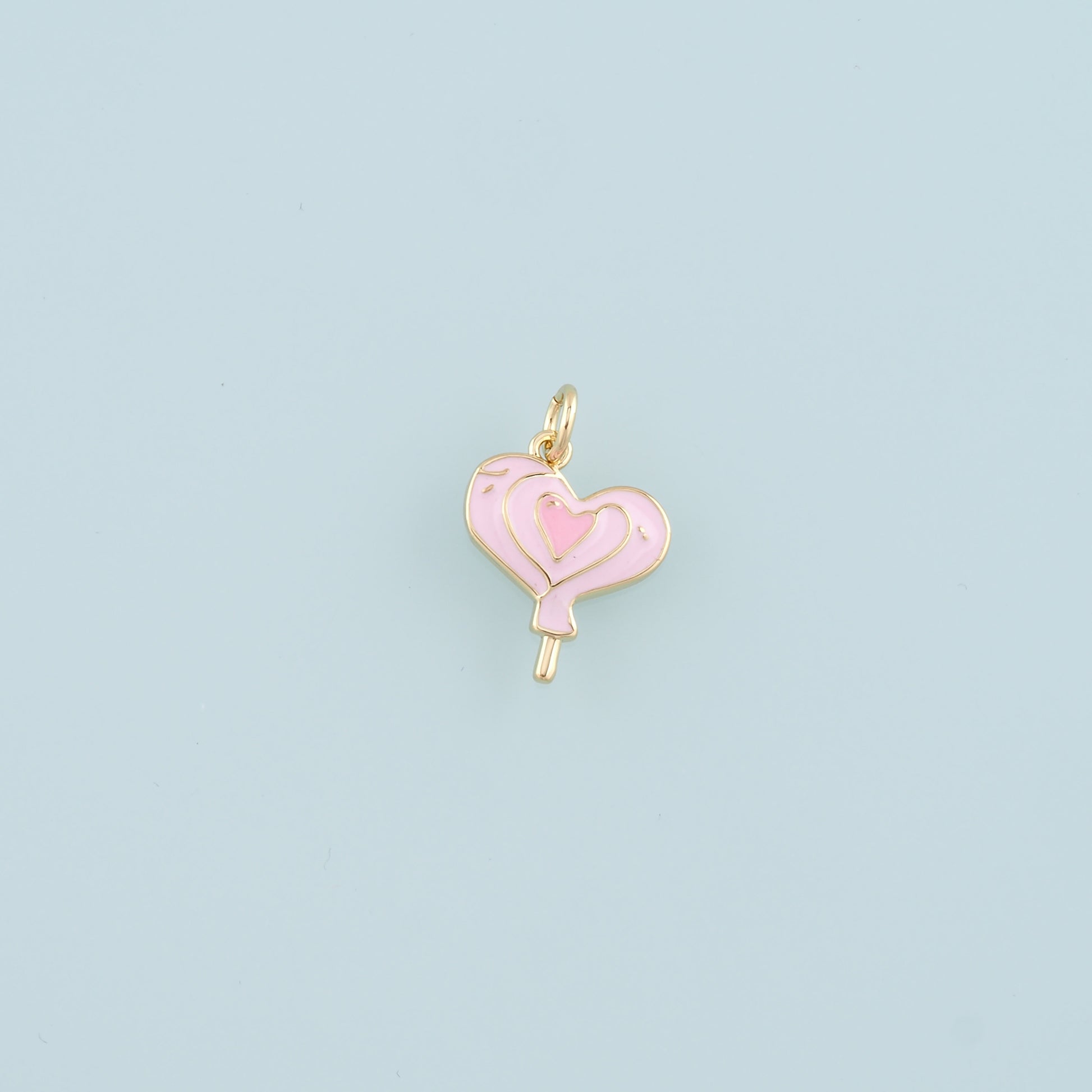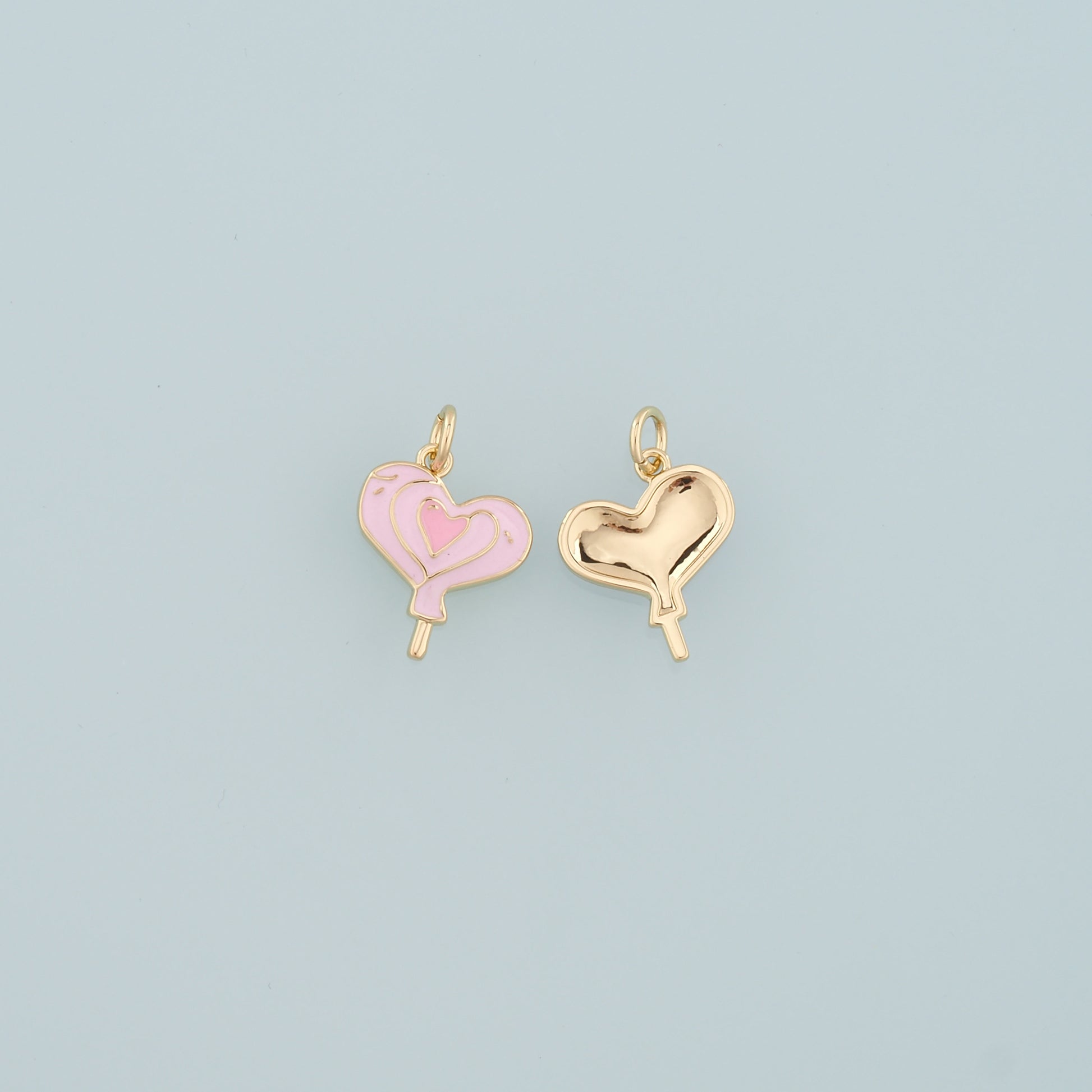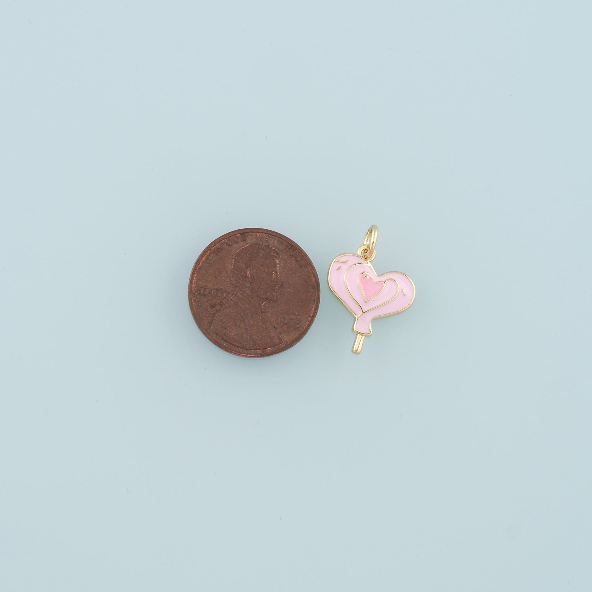18K Gold Filled Heart Pendant,Enamel Heart Lollipop Charm Bracelet Necklace for DIY Jewelry Making Supply