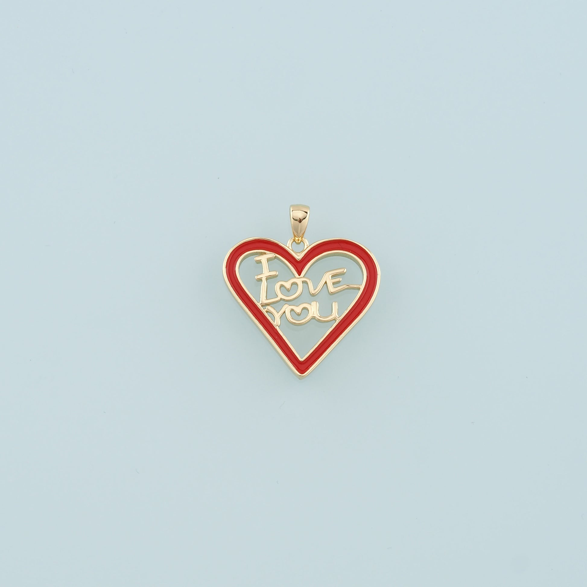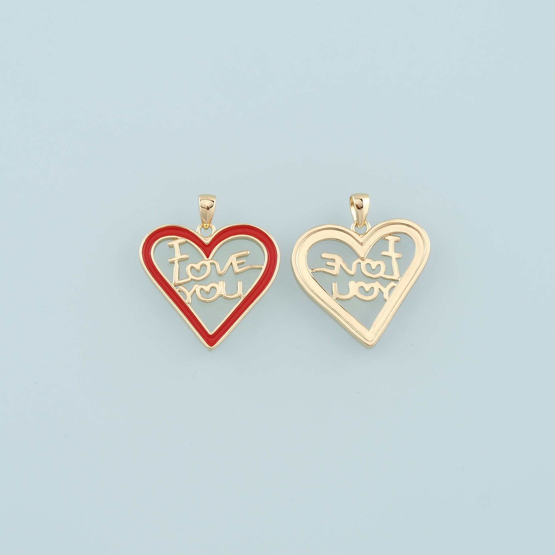 18K Gold Filled Heart Pendant,Enamel I Love You Charm Bracelet Necklace for DIY Jewelry Making Supply