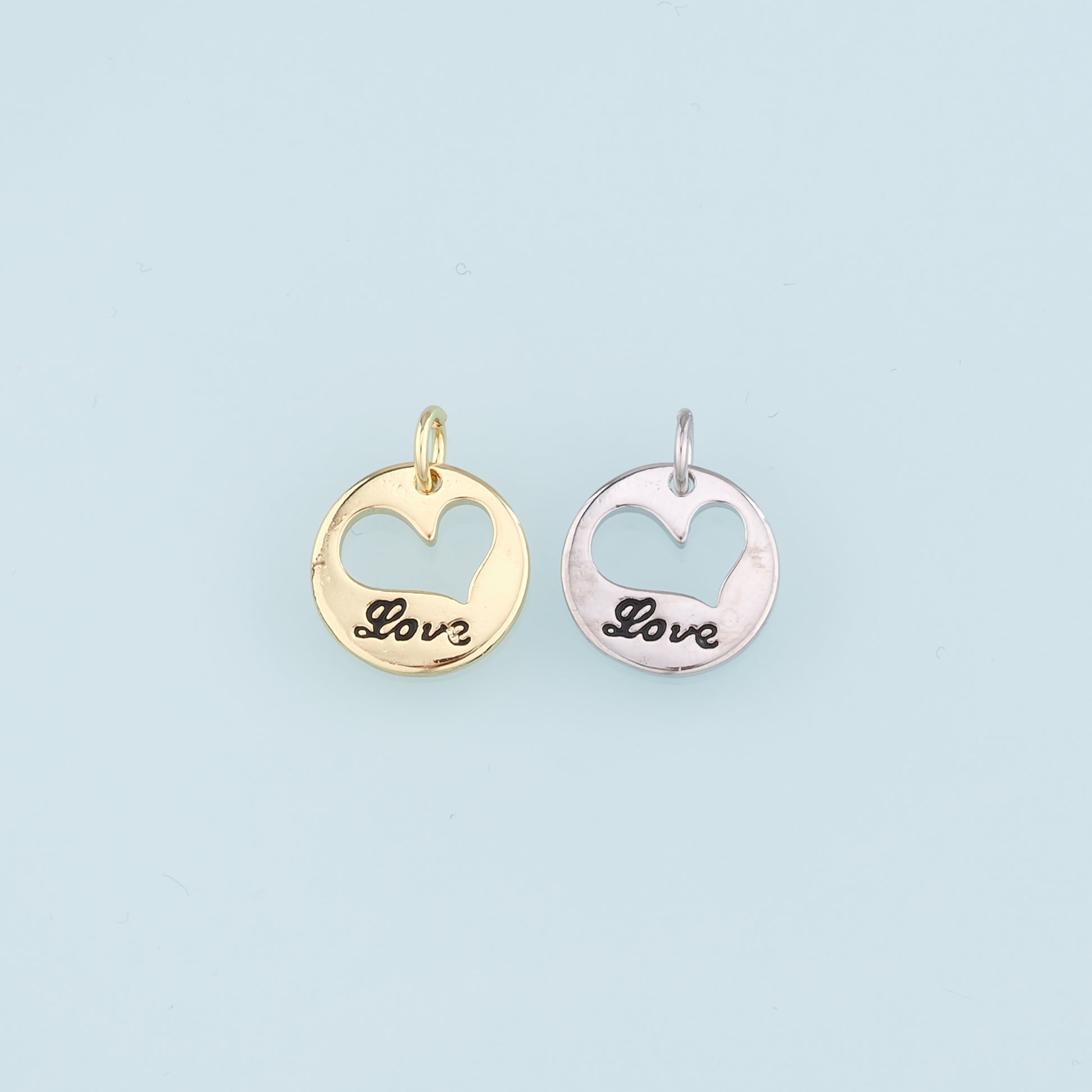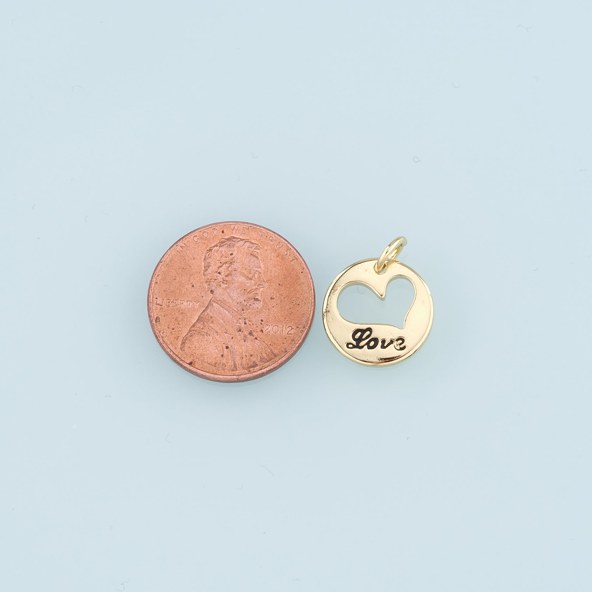 18K Gold Filled Heart Pendant,Love Charm Bracelet Necklace for DIY Jewelry Making Supply