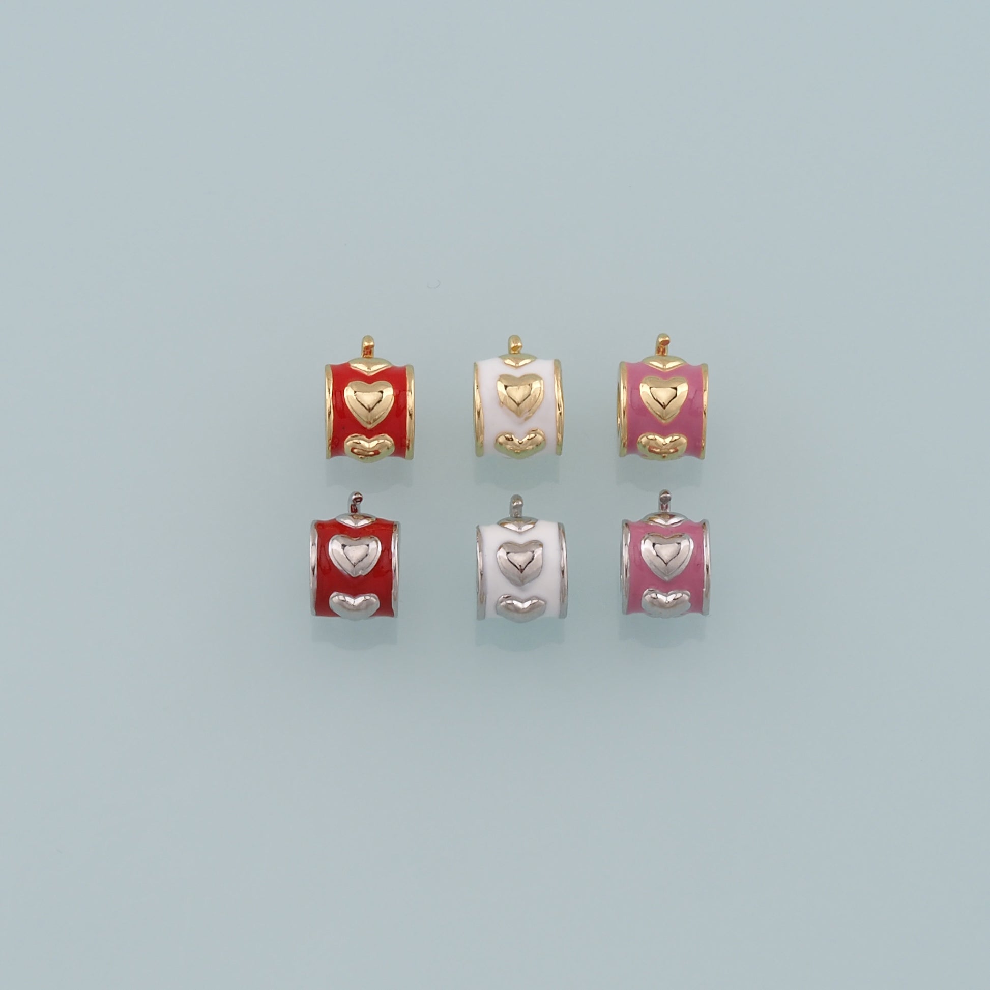 18K Gold Filled Heart Spacer Bead,Enamel Heart Charm Bracelet Necklace for DIY Jewelry Making Supply