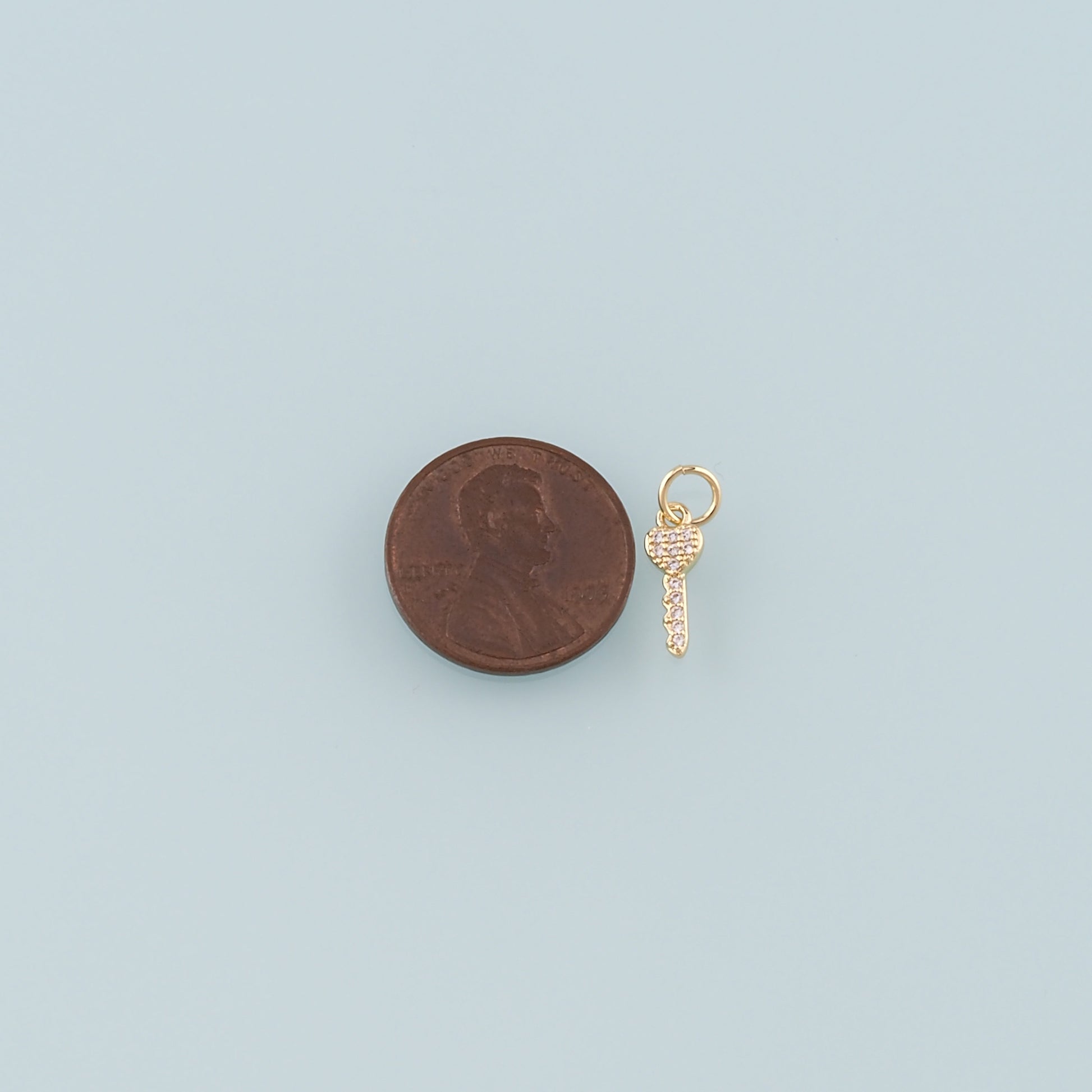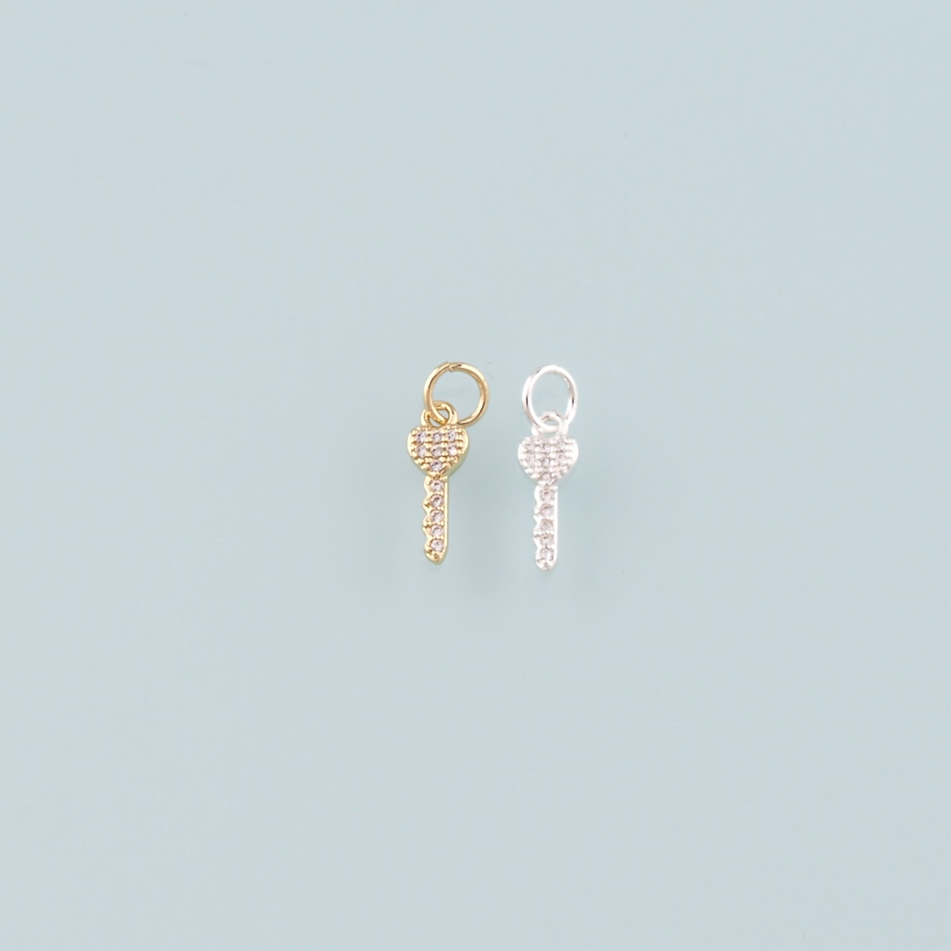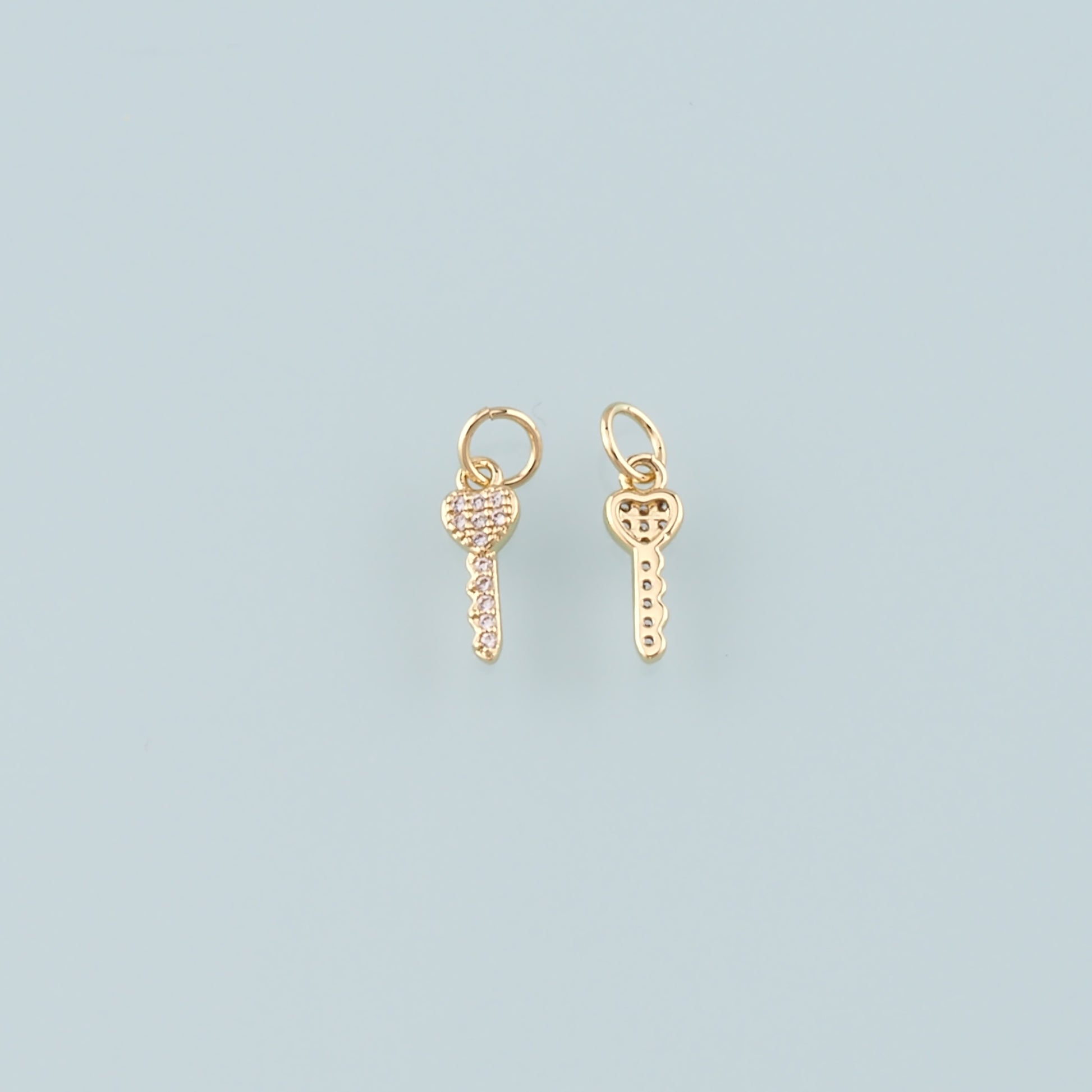 18K Gold Filled Key Pendant,CZ Micro Pave Key Charm Bracelet Necklace for DIY Jewelry Making Supply