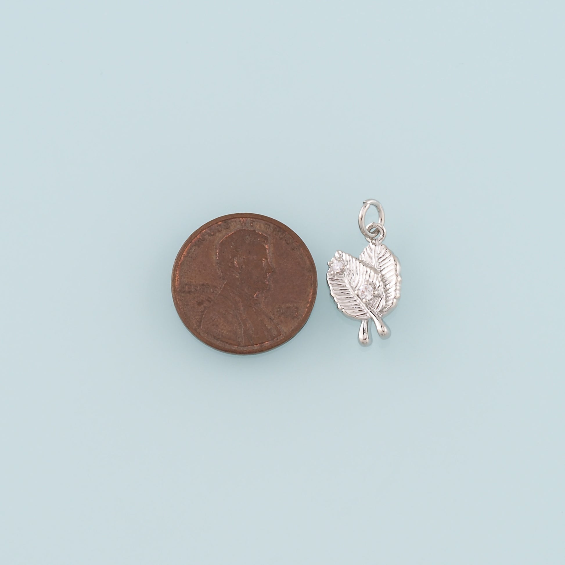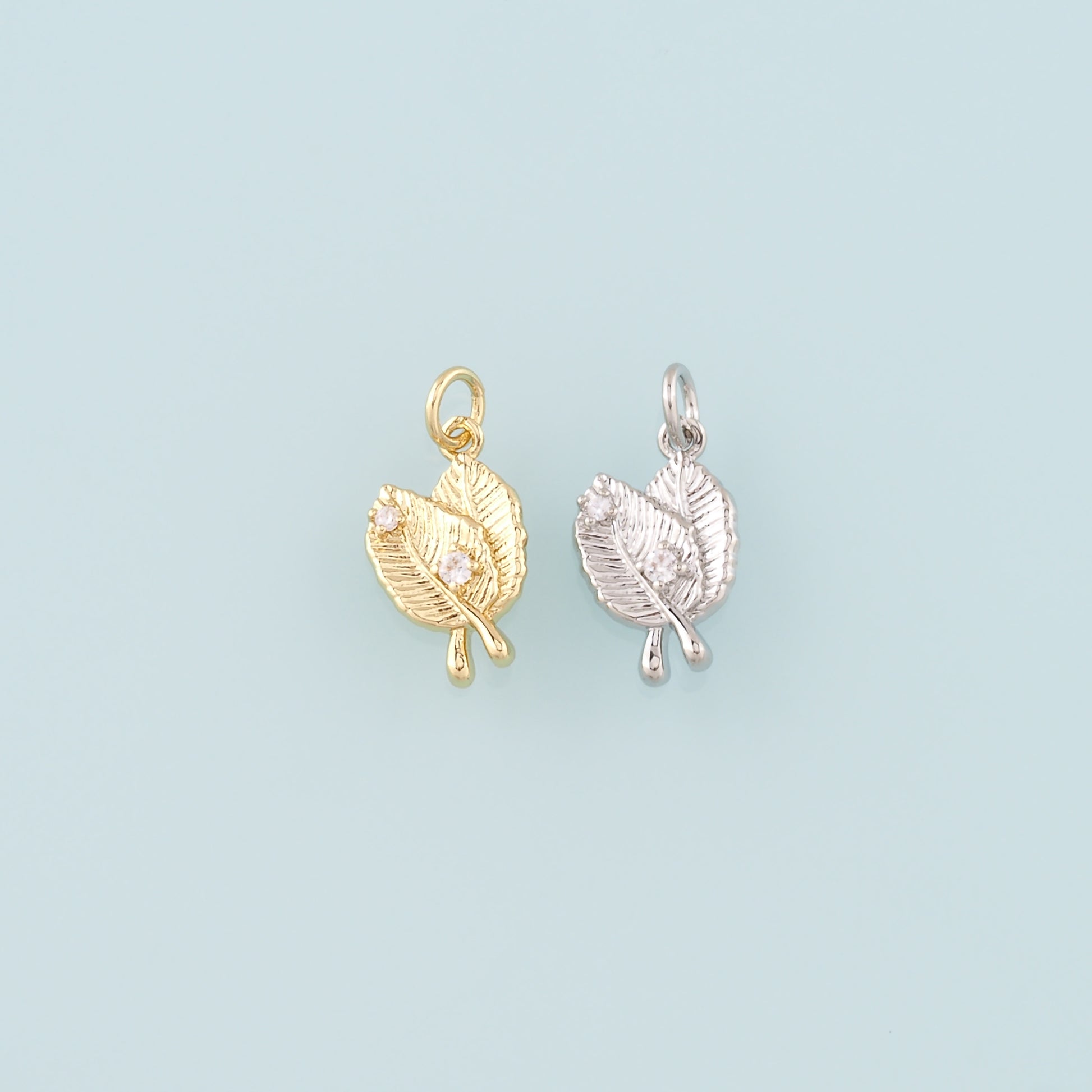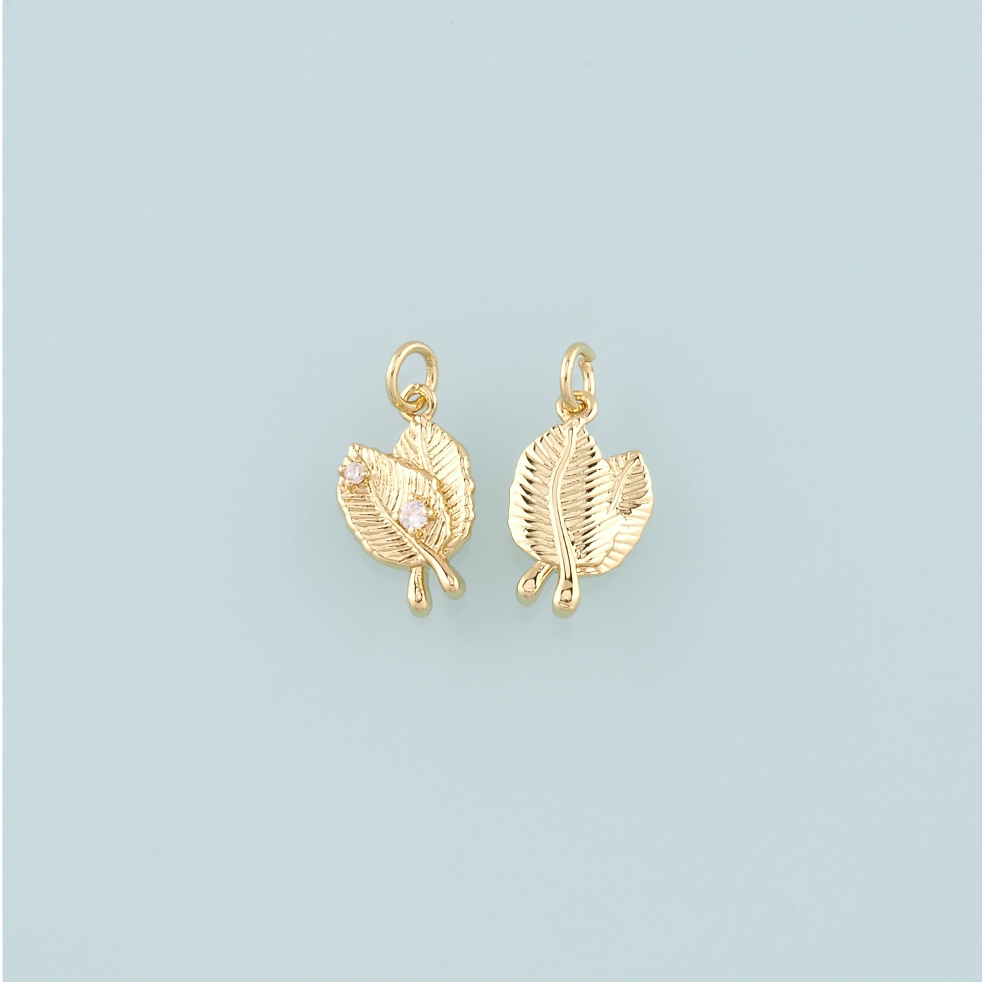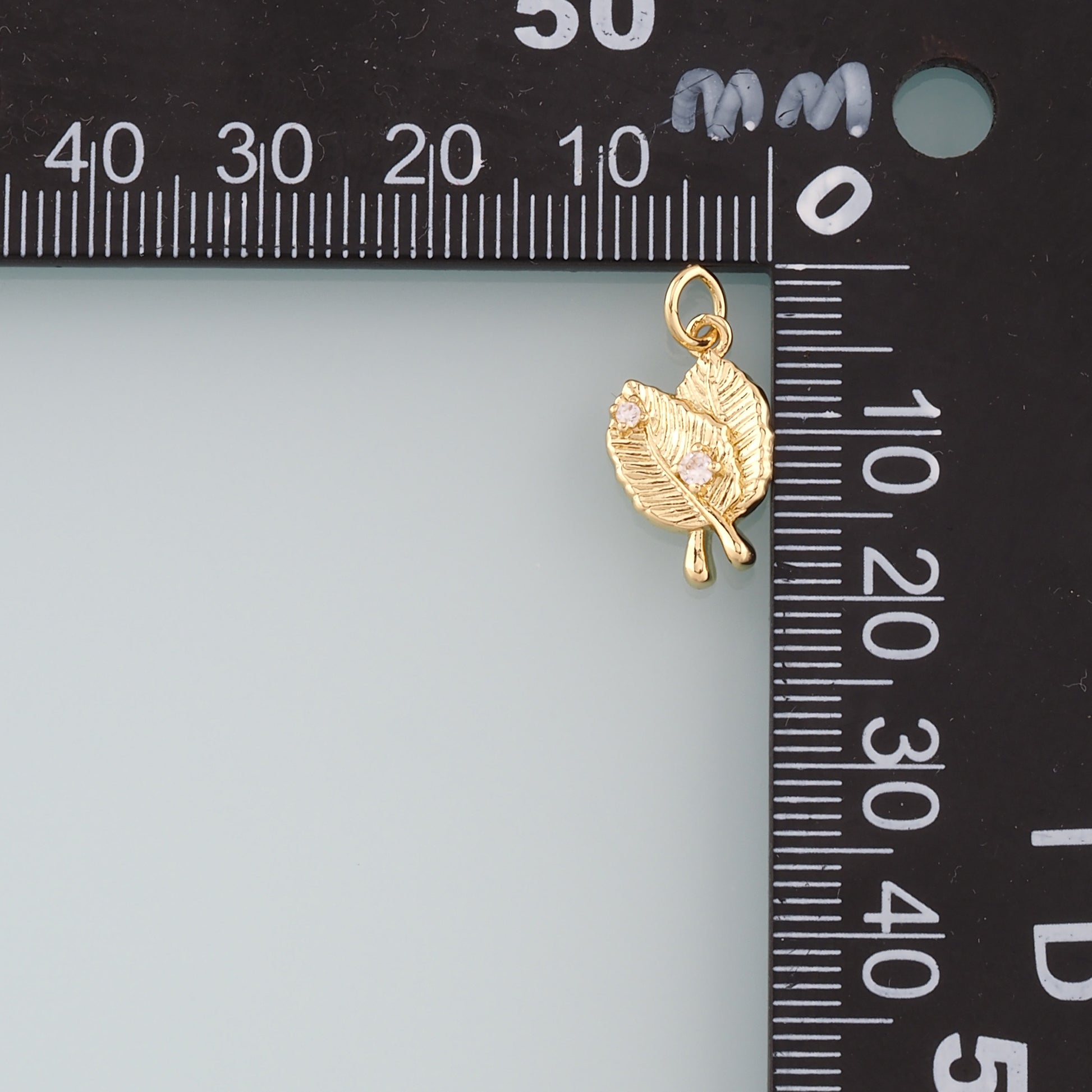 18K Gold Filled Leaf Pendant,CZ Micro Pave Leaf Charm Bracelet Necklace for DIY Jewelry Making Supply