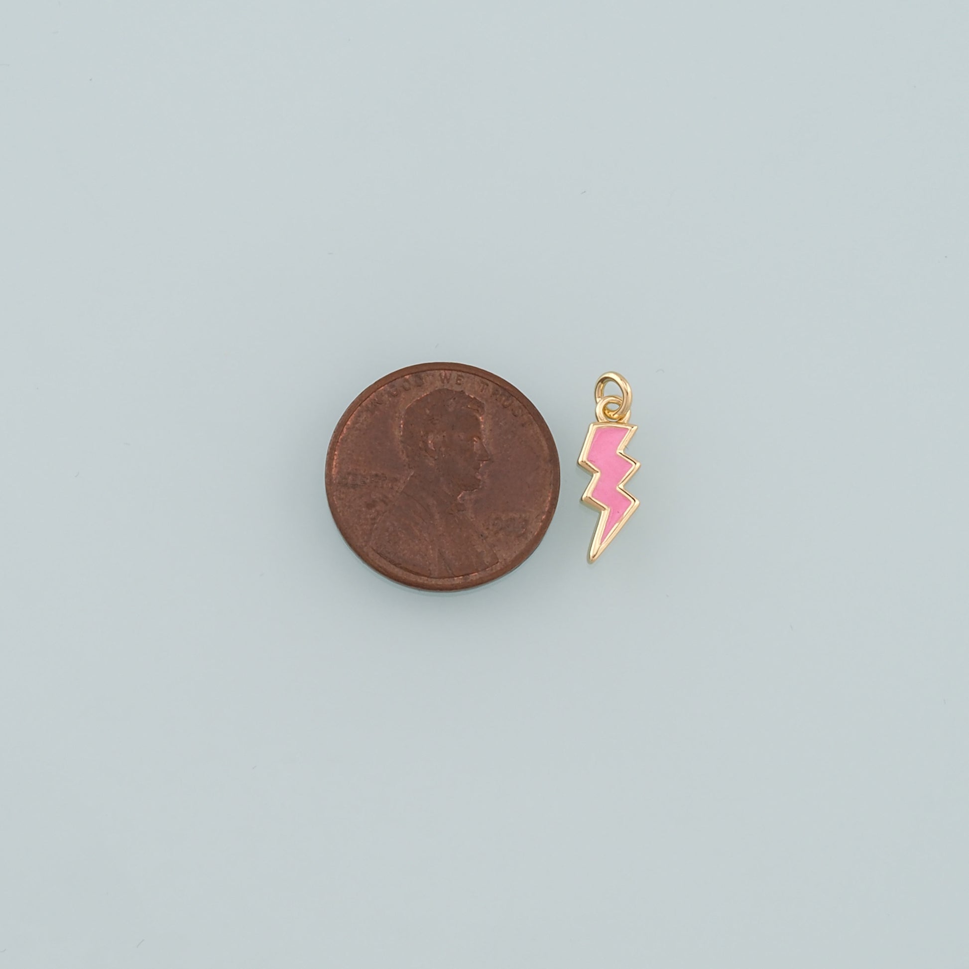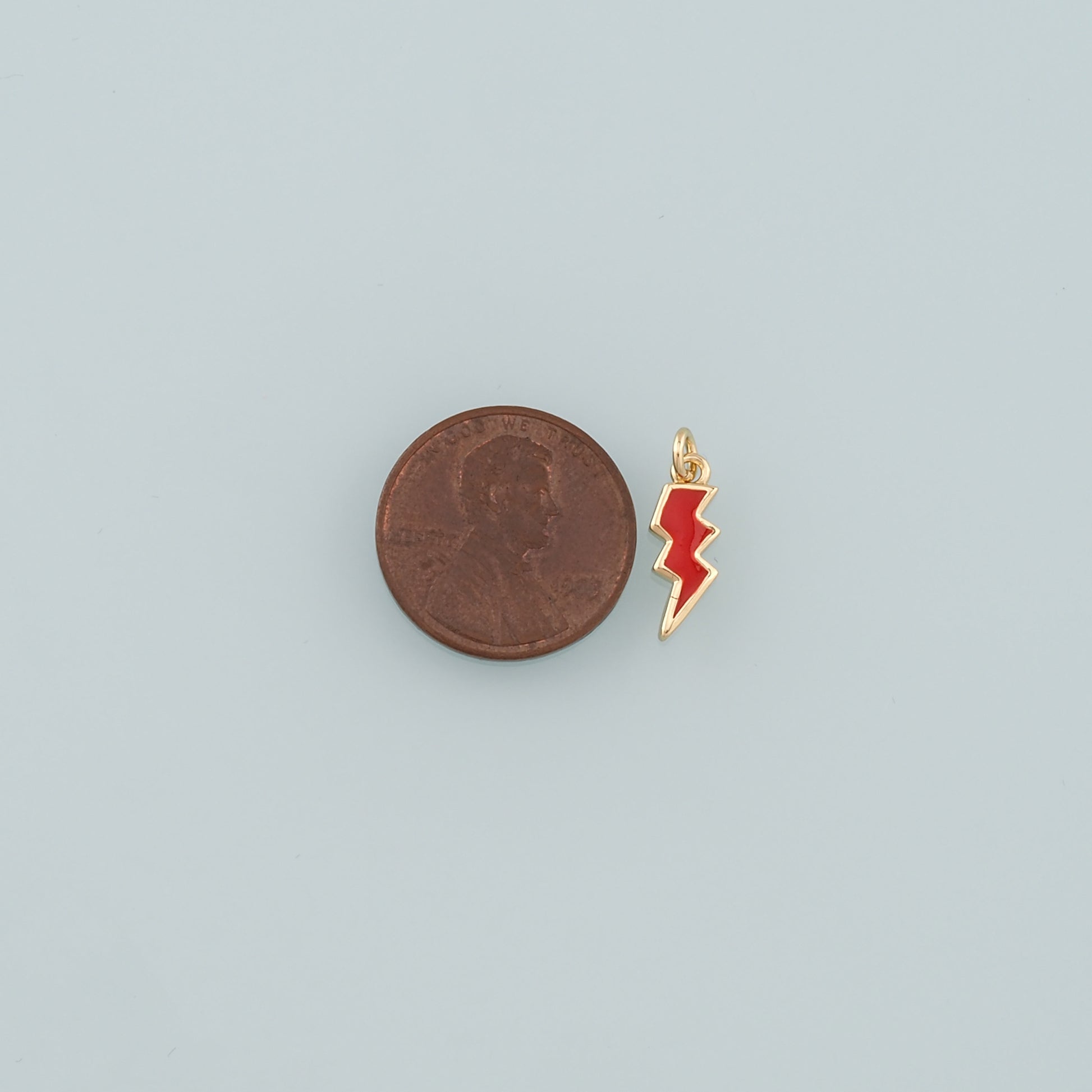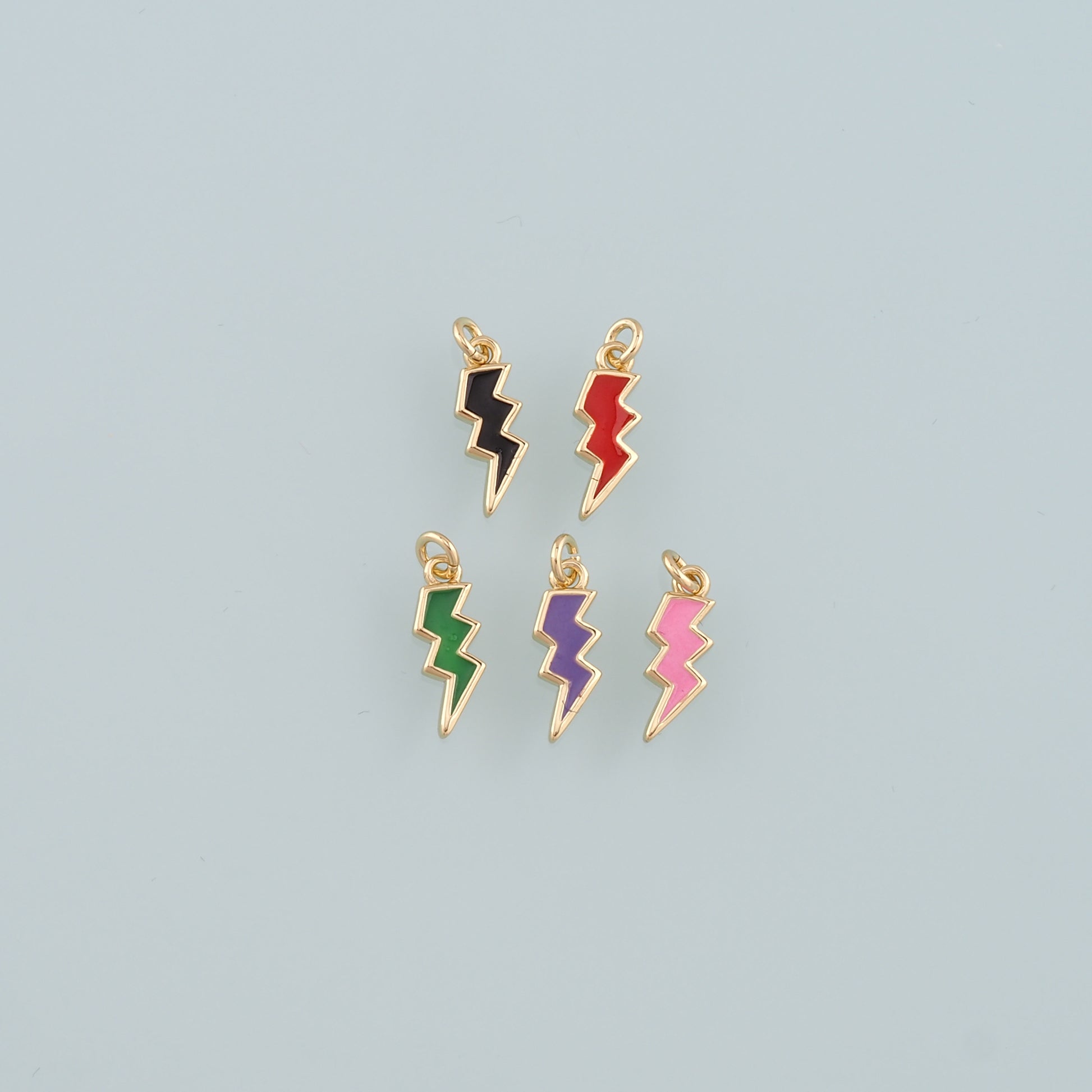18K Gold Filled Lightning Pendant,Enamel Lightning Charm Bracelet Necklace for DIY Jewelry Making Supply