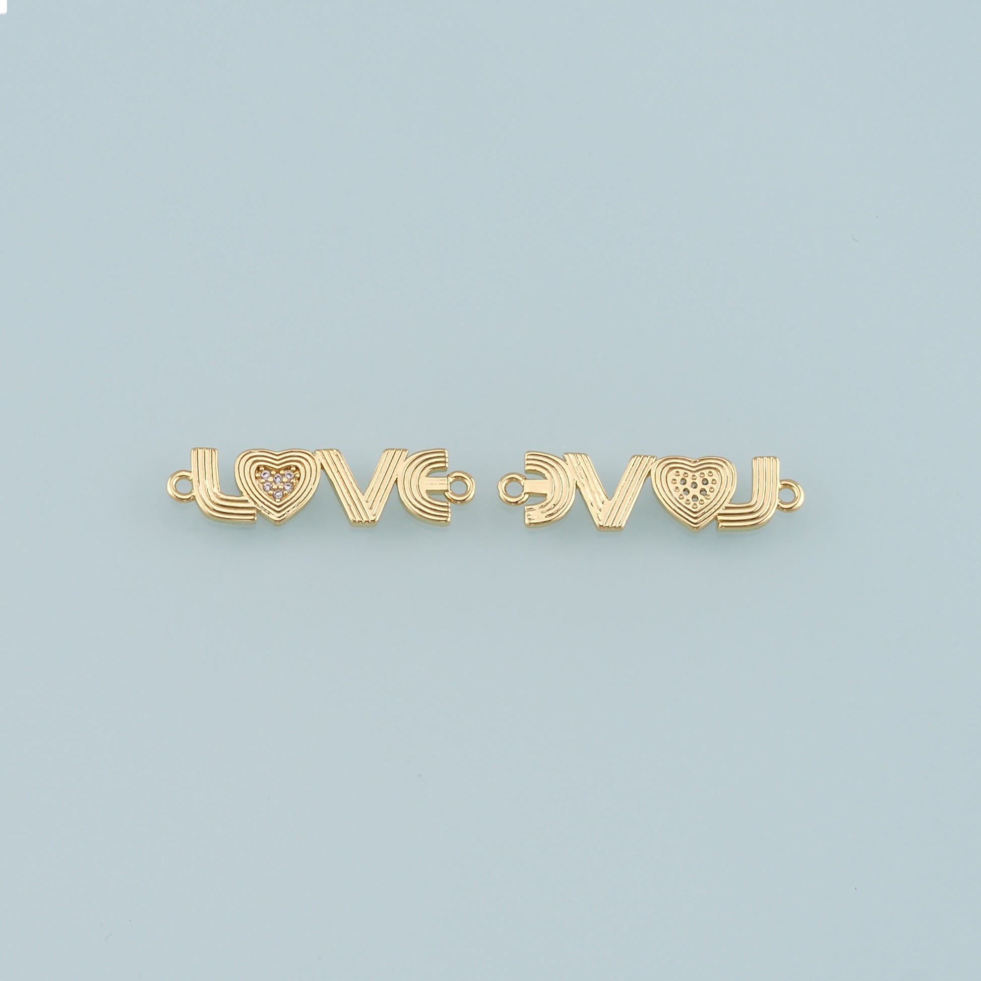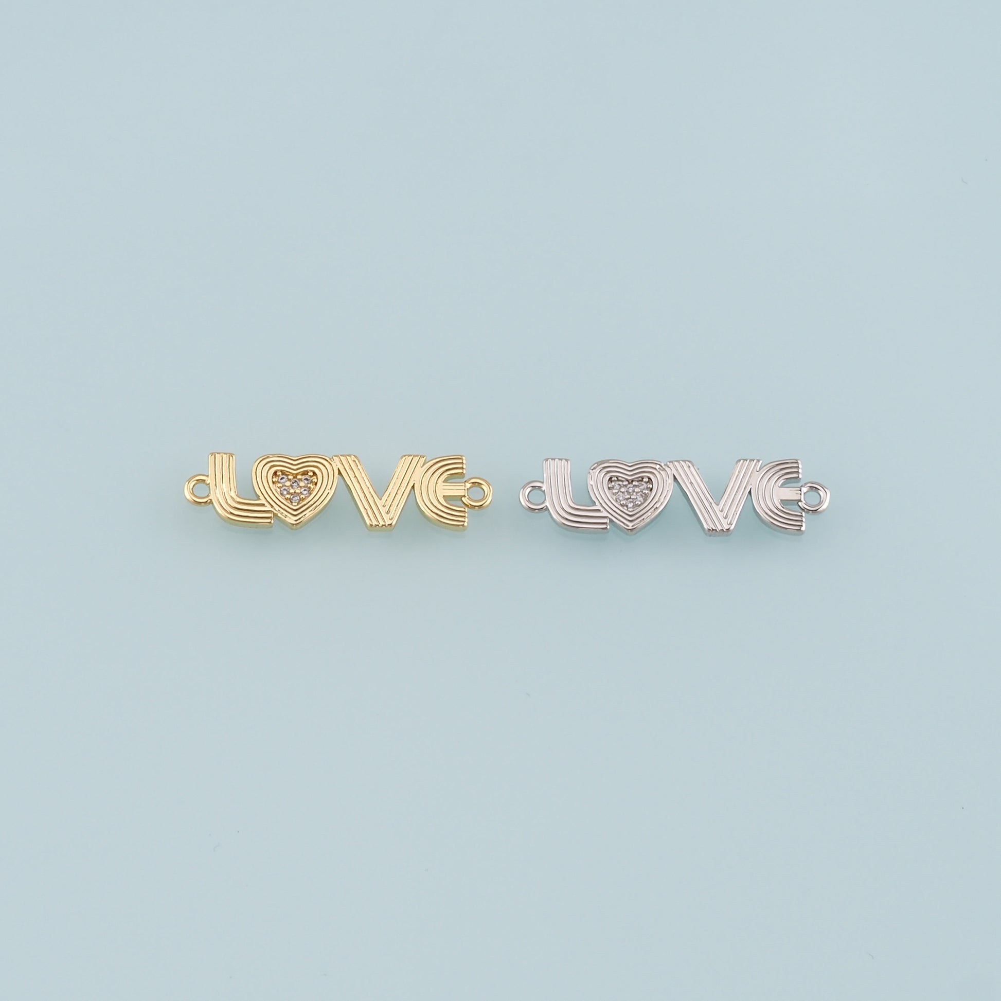 18K Gold Filled Love Connector,CZ Micro Pave Heart Charm Bracelet Necklace for DIY Jewelry Making Supply