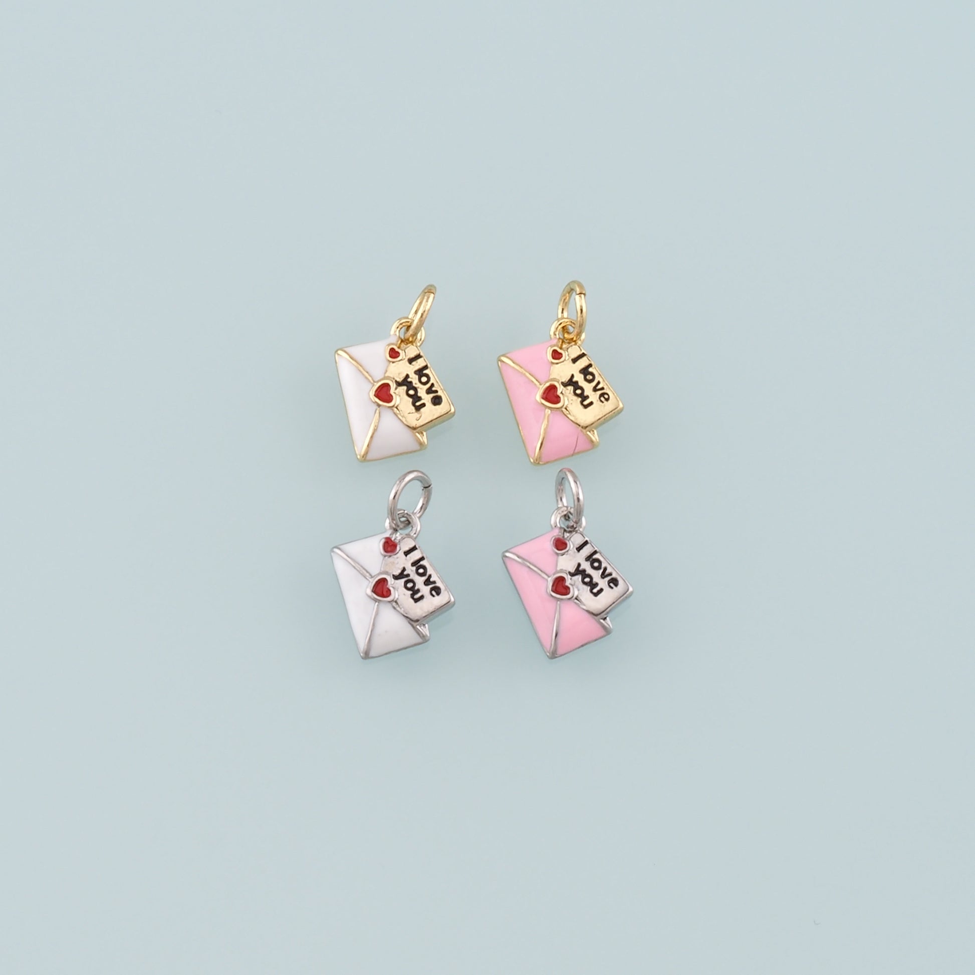 18K Gold Filled Love Letter Pendant,Enamel Heart Envelope Charm Bracelet Necklace for DIY Jewelry Making Supply
