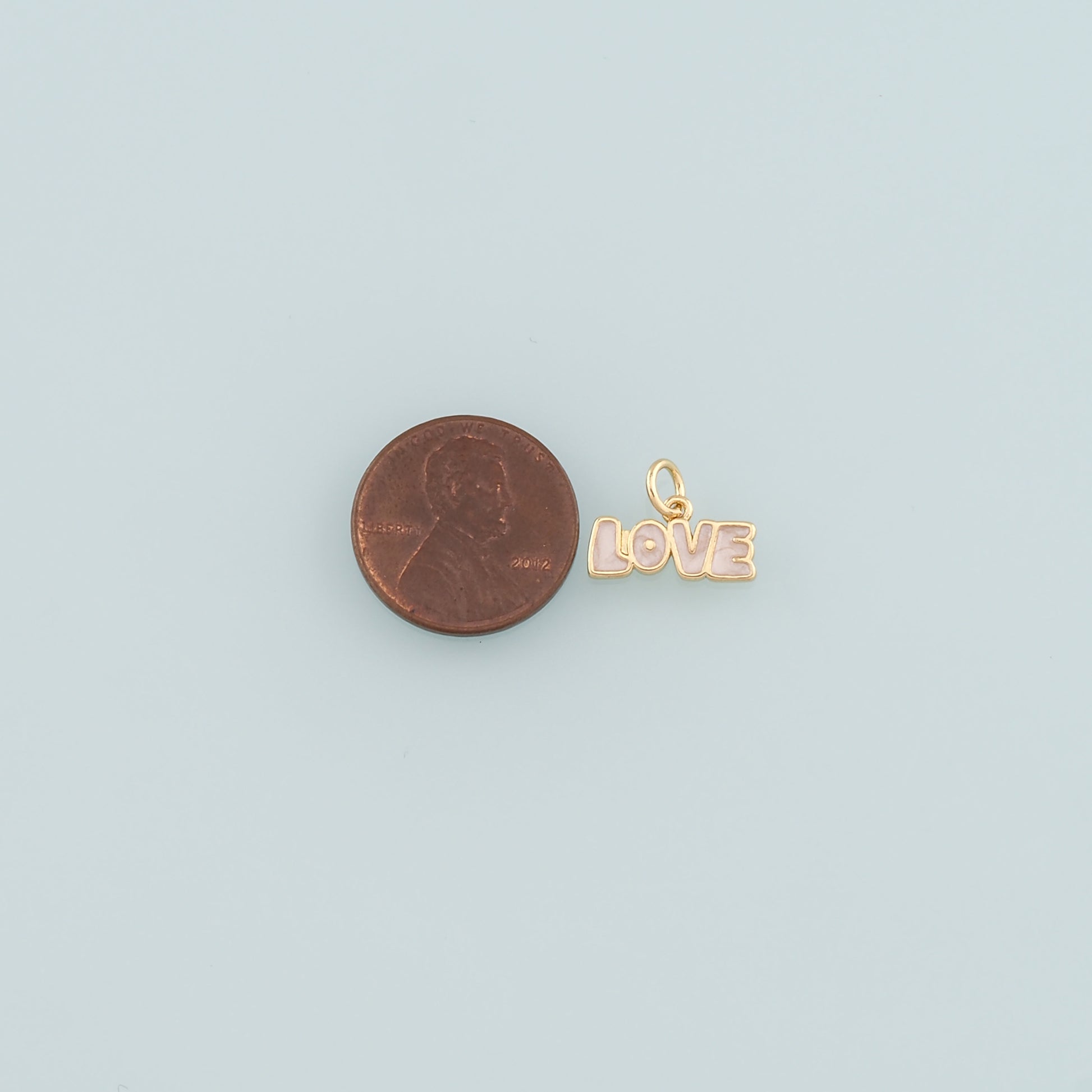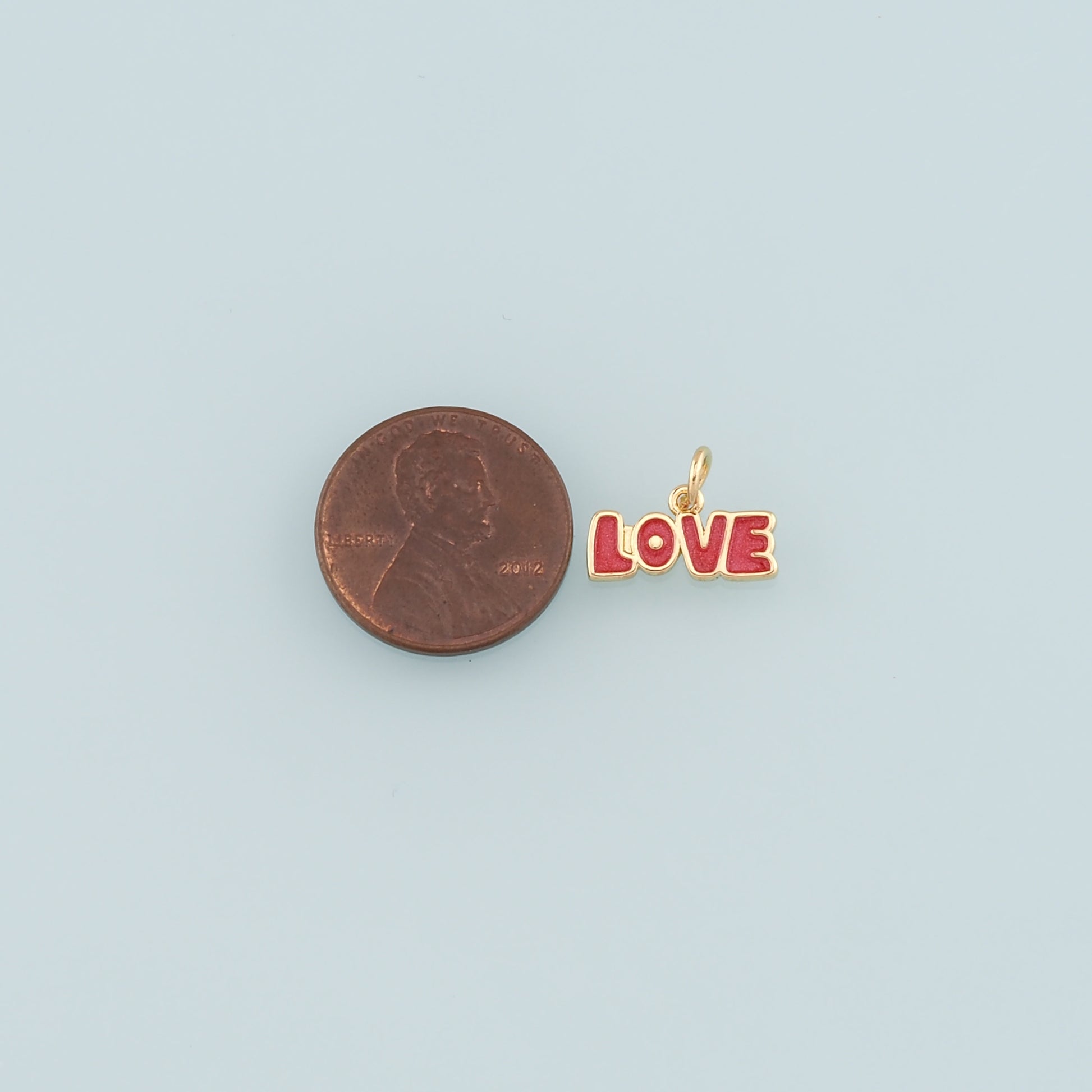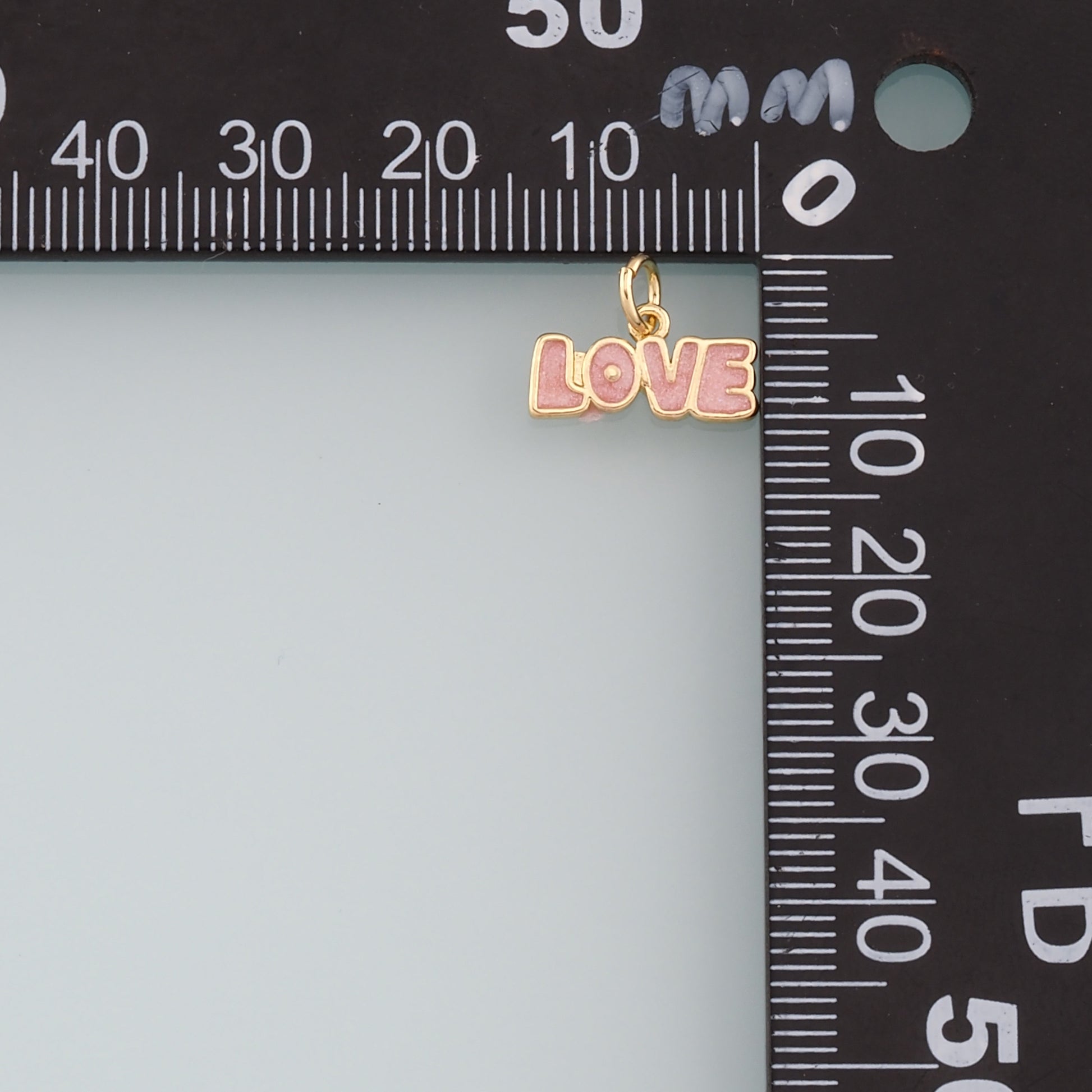18K Gold Filled Love Pendant,Enamel Love Charm Bracelet Necklace for DIY Jewelry Making Supply