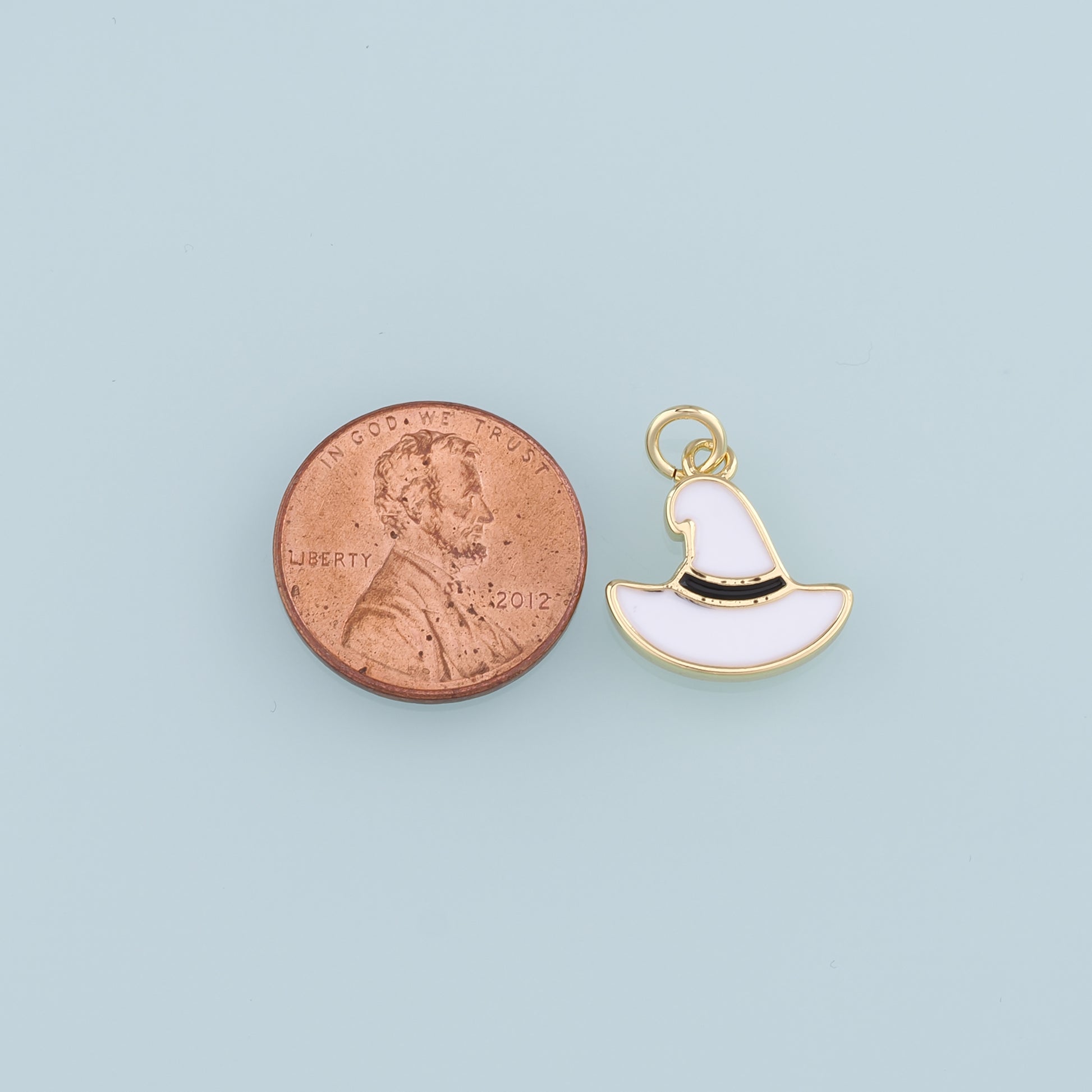 18K Gold Filled Magic Hat Pendant,Enamel Witch Hat Charm Bracelet Necklace for DIY Jewelry Making Supply