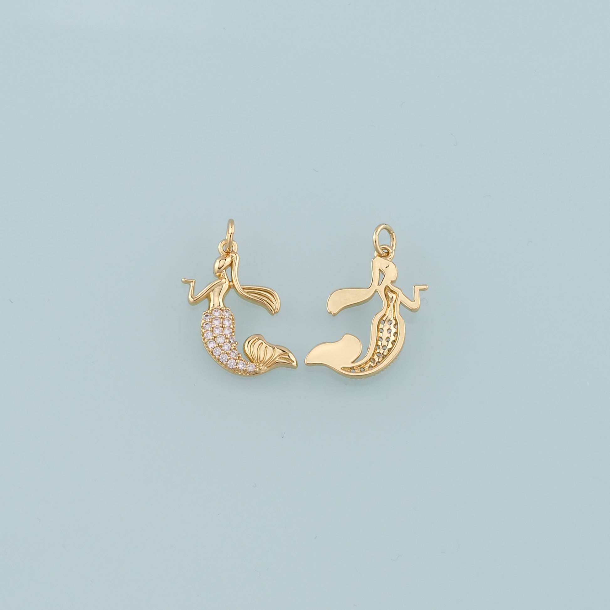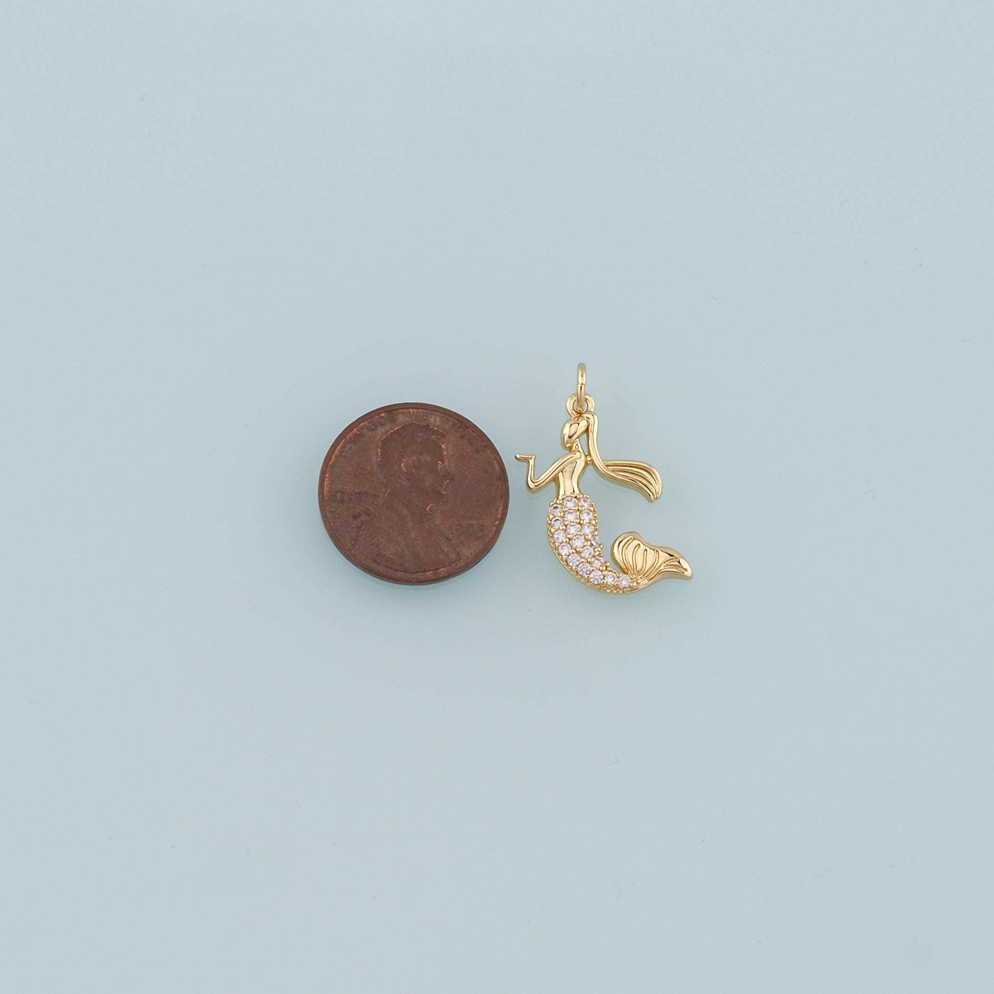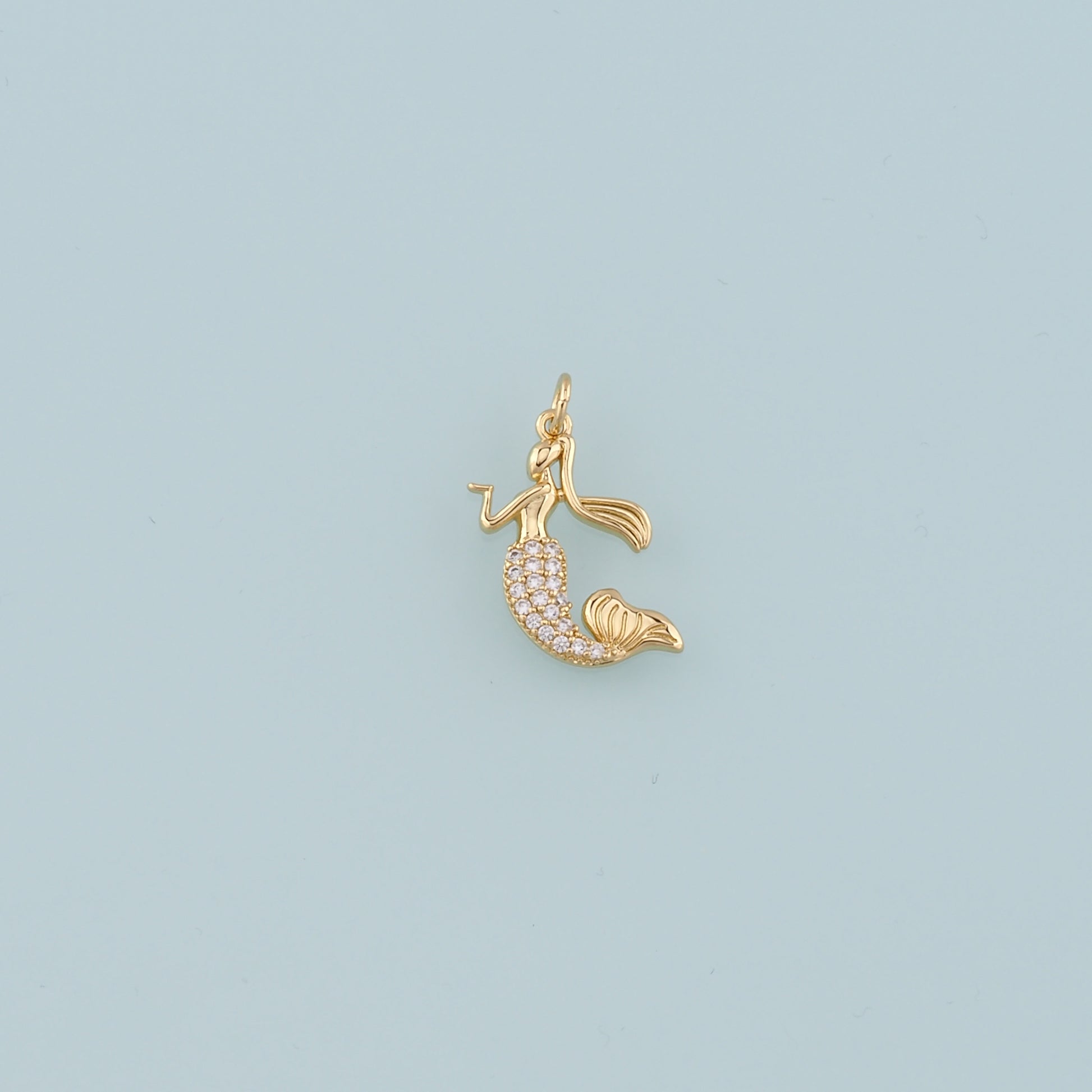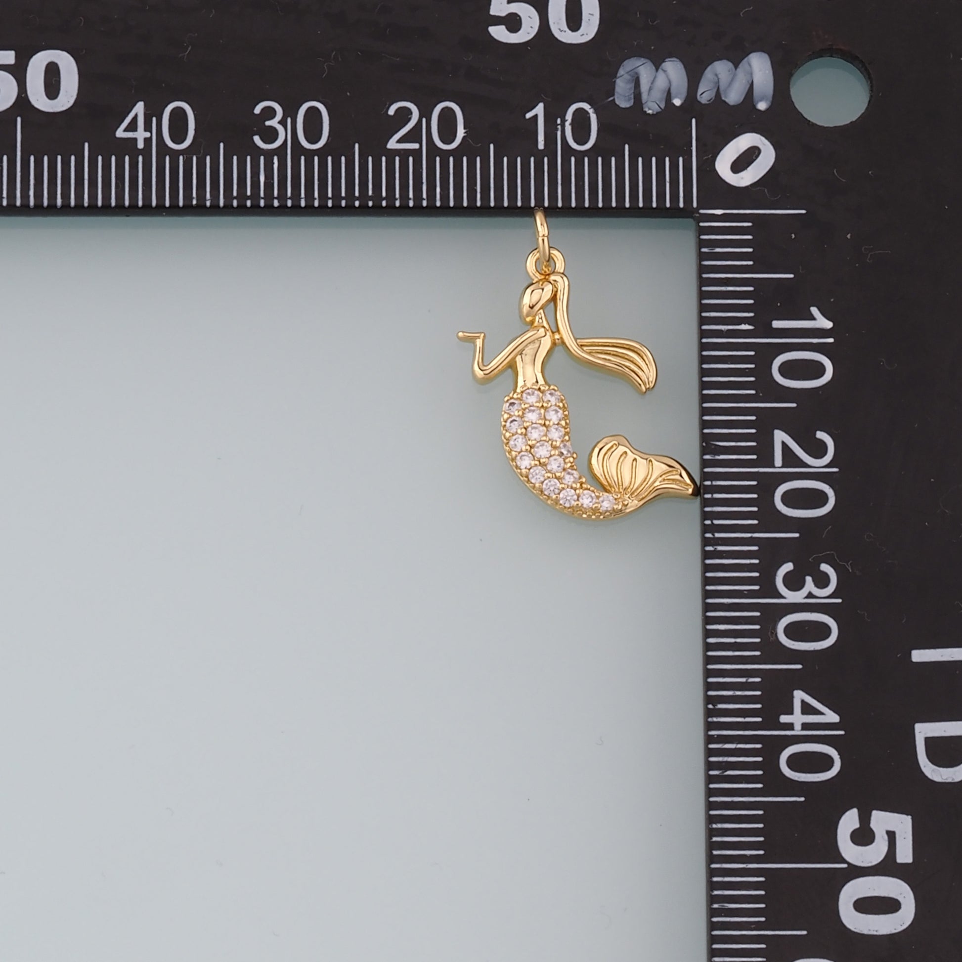18K Gold Filled Mermaid Pendant,CZ Micro Pave Mermaid Tail Charm Bracelet Necklace for DIY Jewelry Making Supply