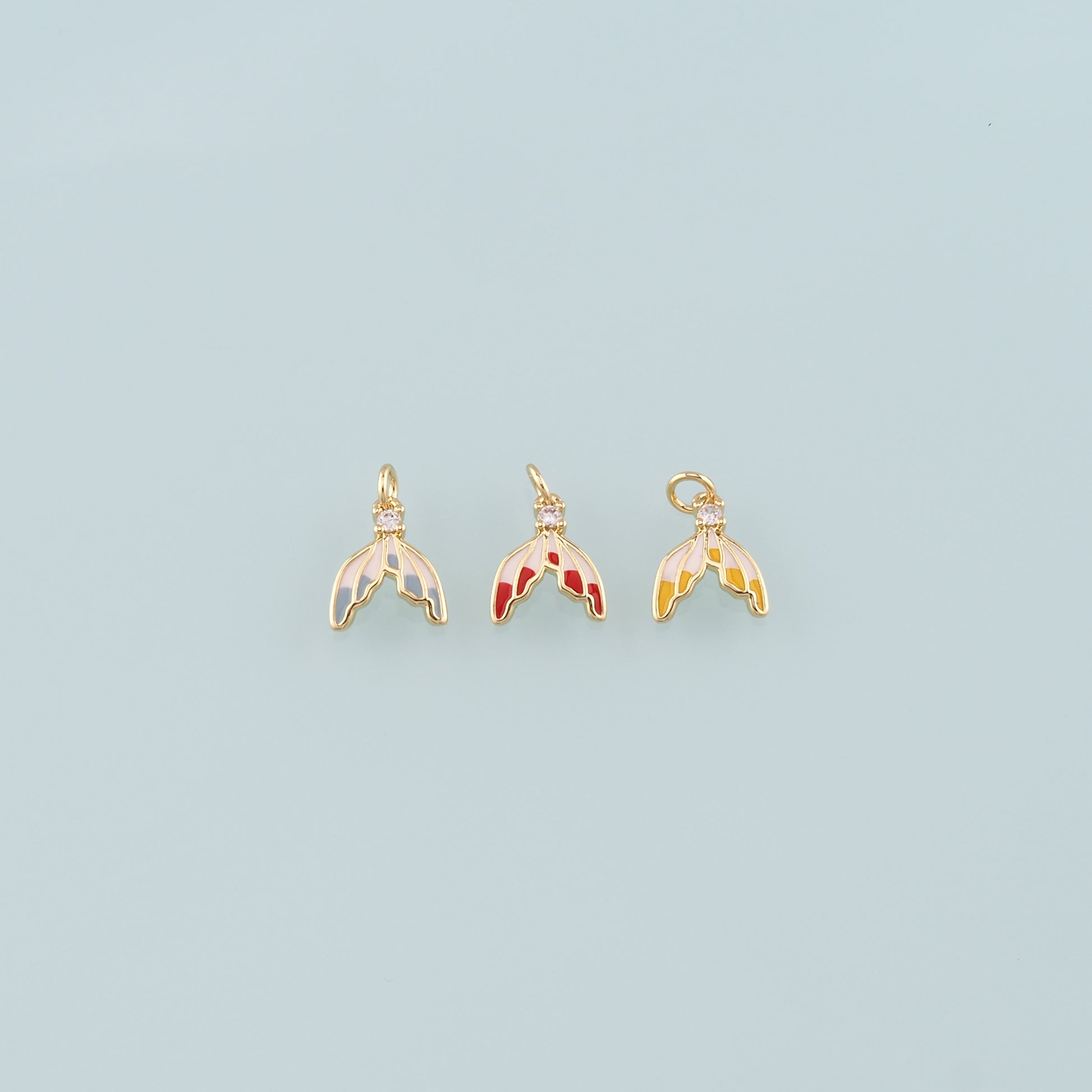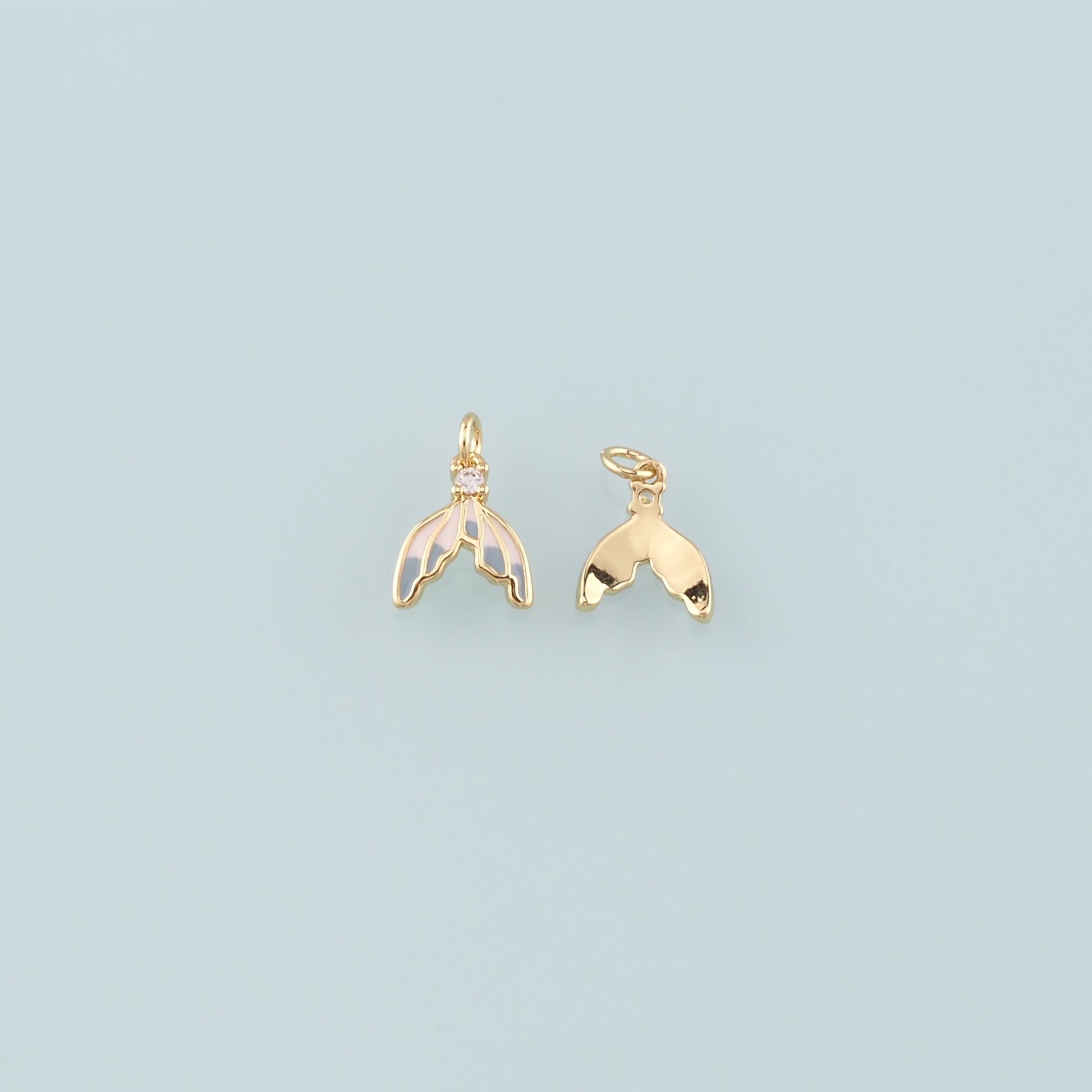 18K Gold Filled Mermaid Tail Pendant,Enamel Tail Charm Bracelet Necklace for DIY Jewelry Making Supply
