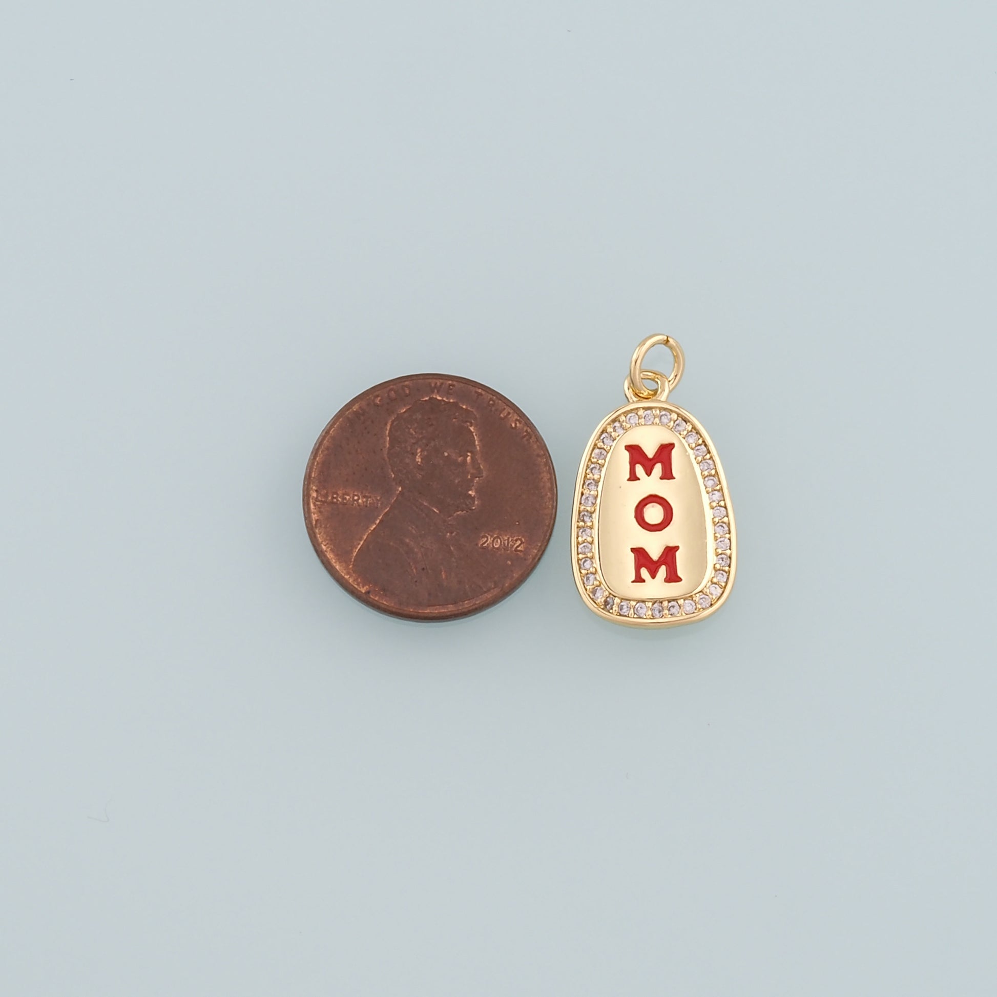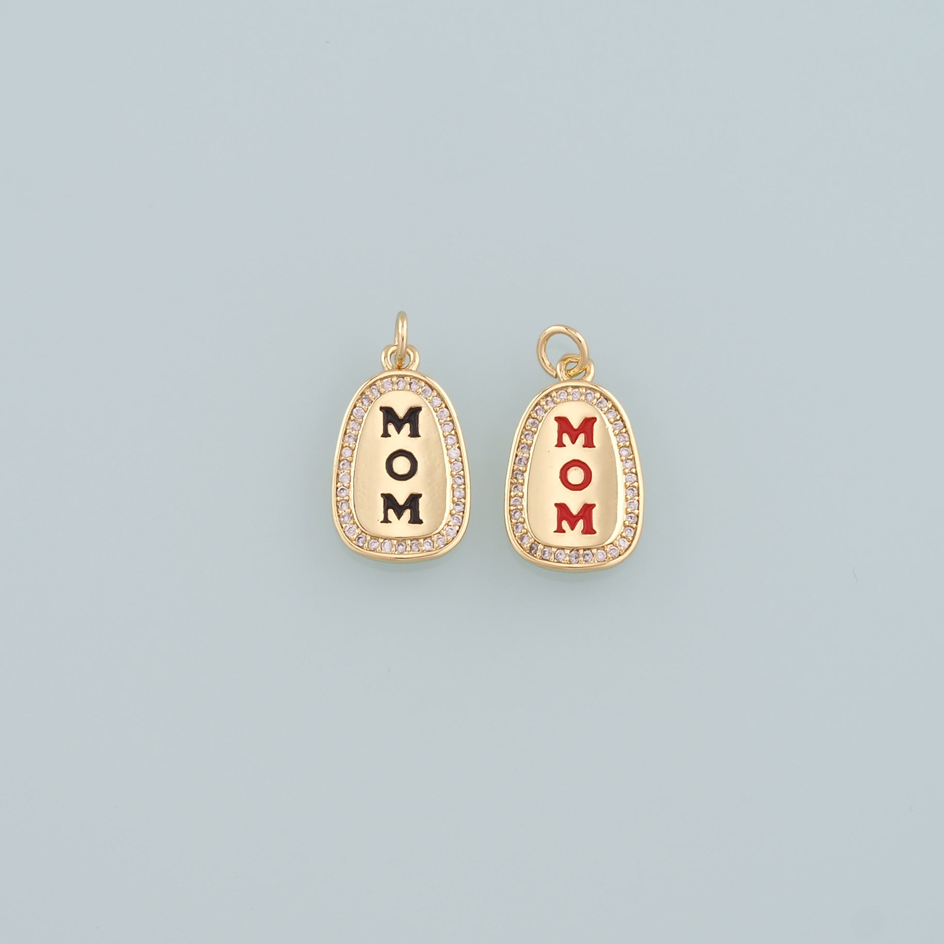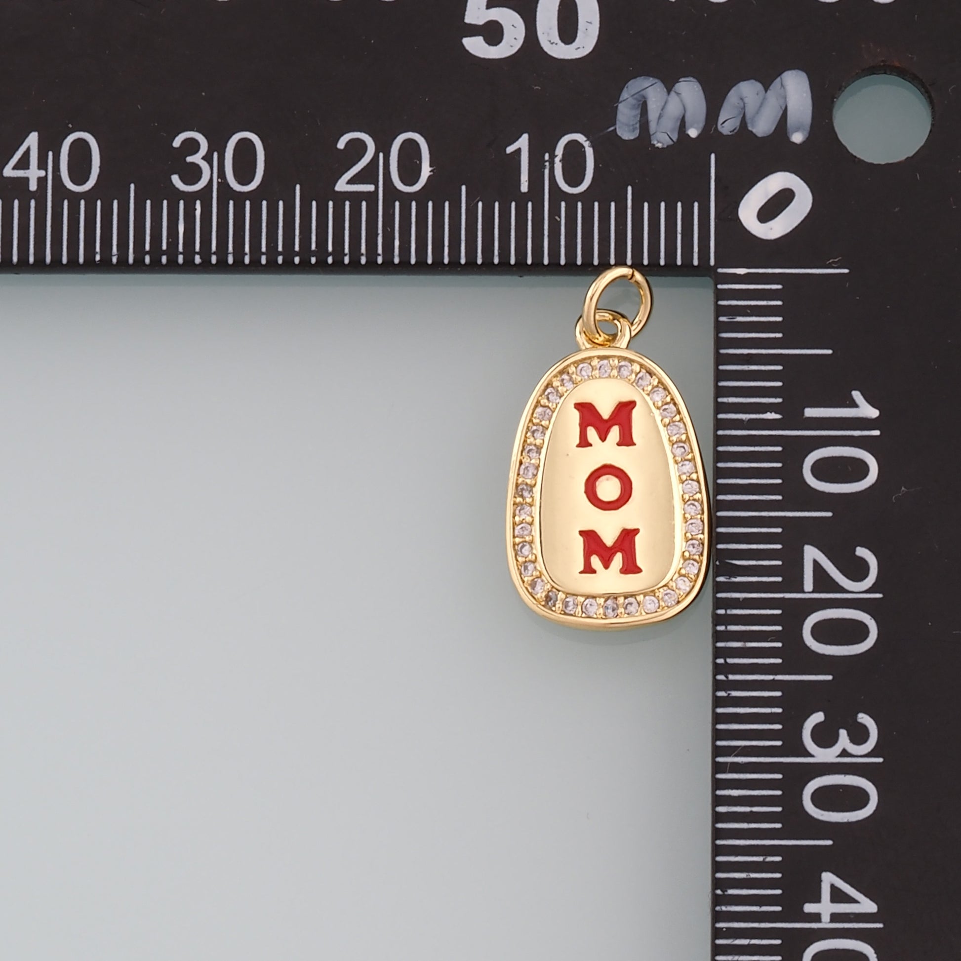 18K Gold Filled Mom Pendant,Enamel Mom Charm Bracelet Necklace for DIY Jewelry Making Supply