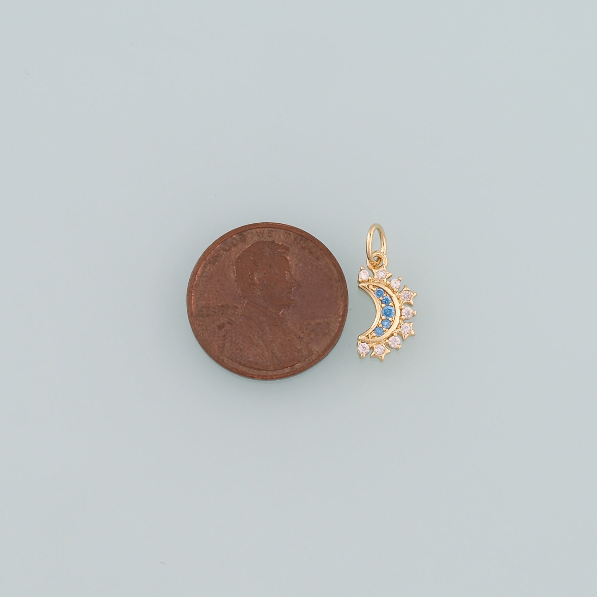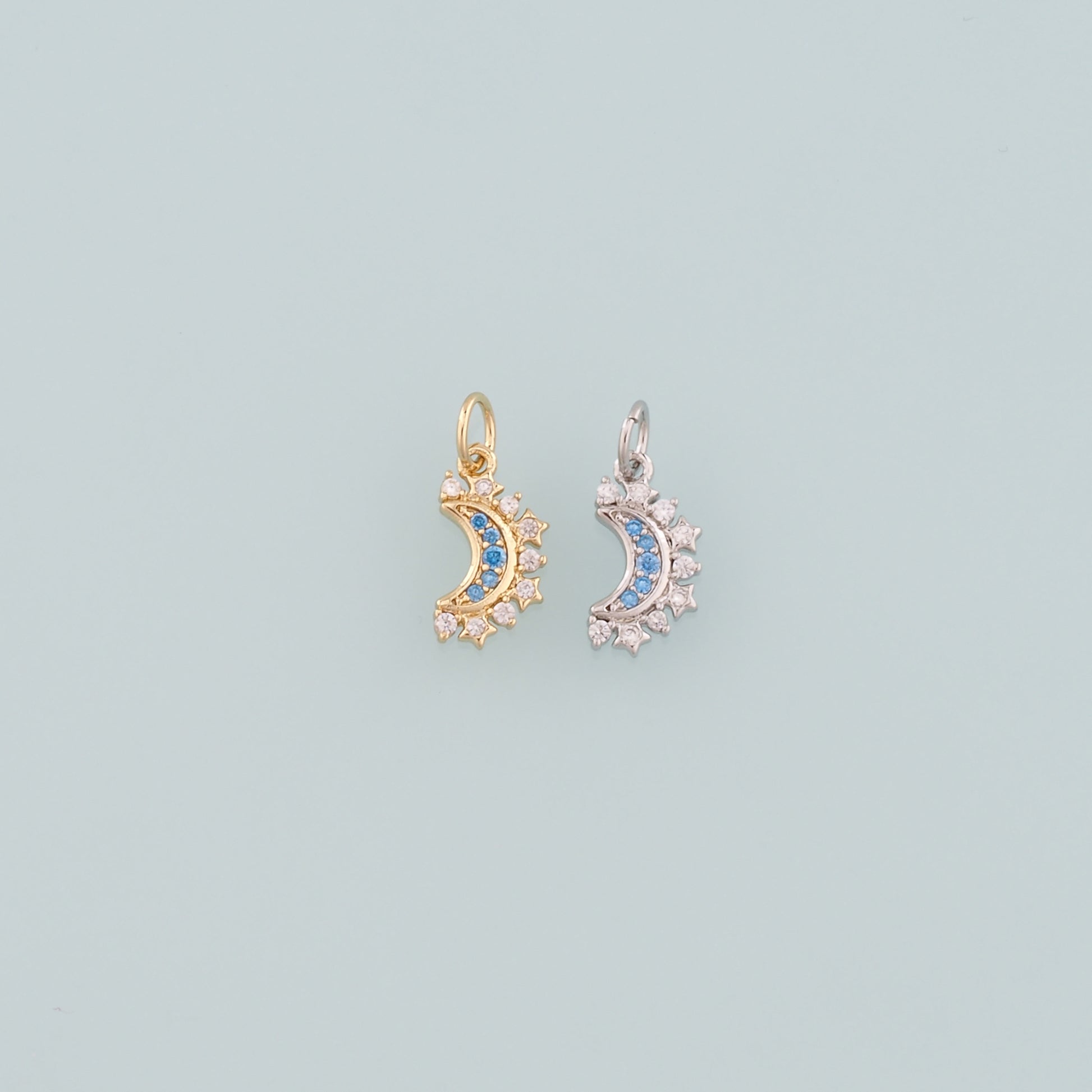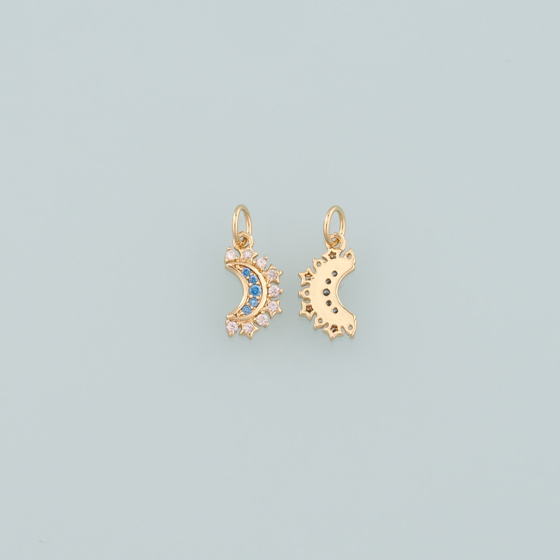 18K Gold Filled Moon Pendant,CZ Micro Pave Celestial Charm Bracelet Necklace for DIY Jewelry Making Supply