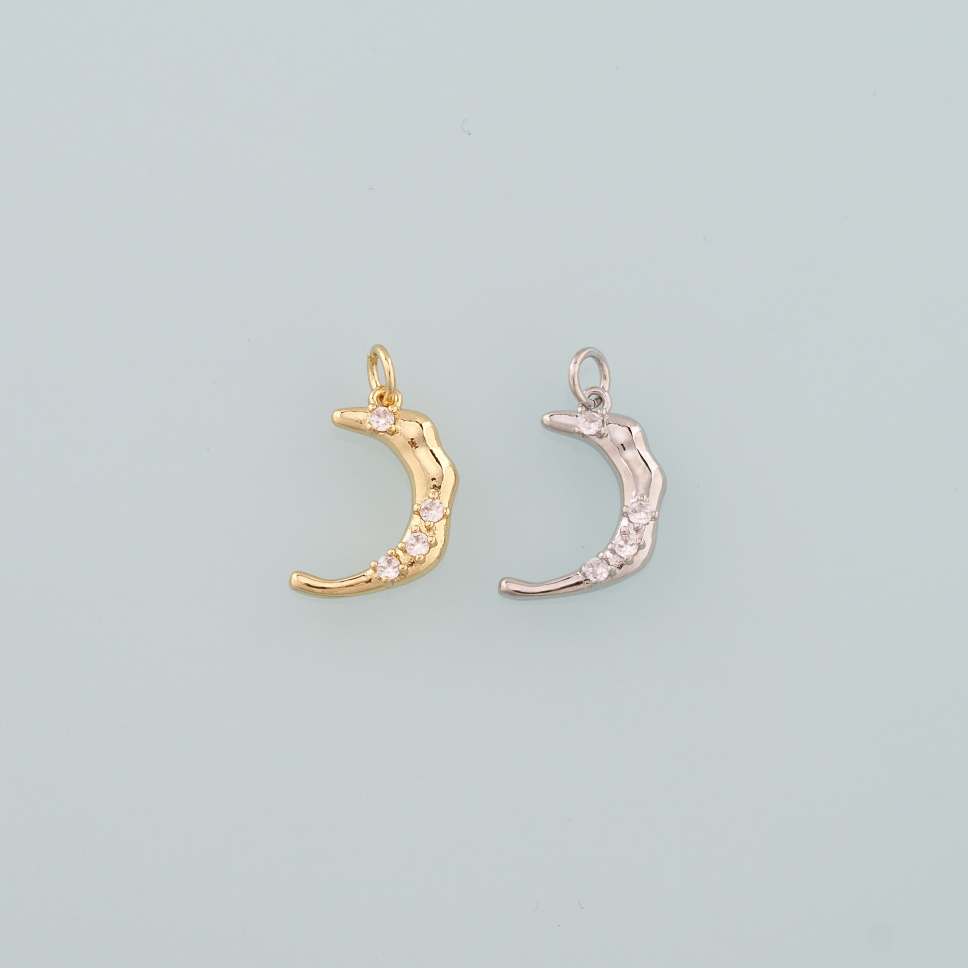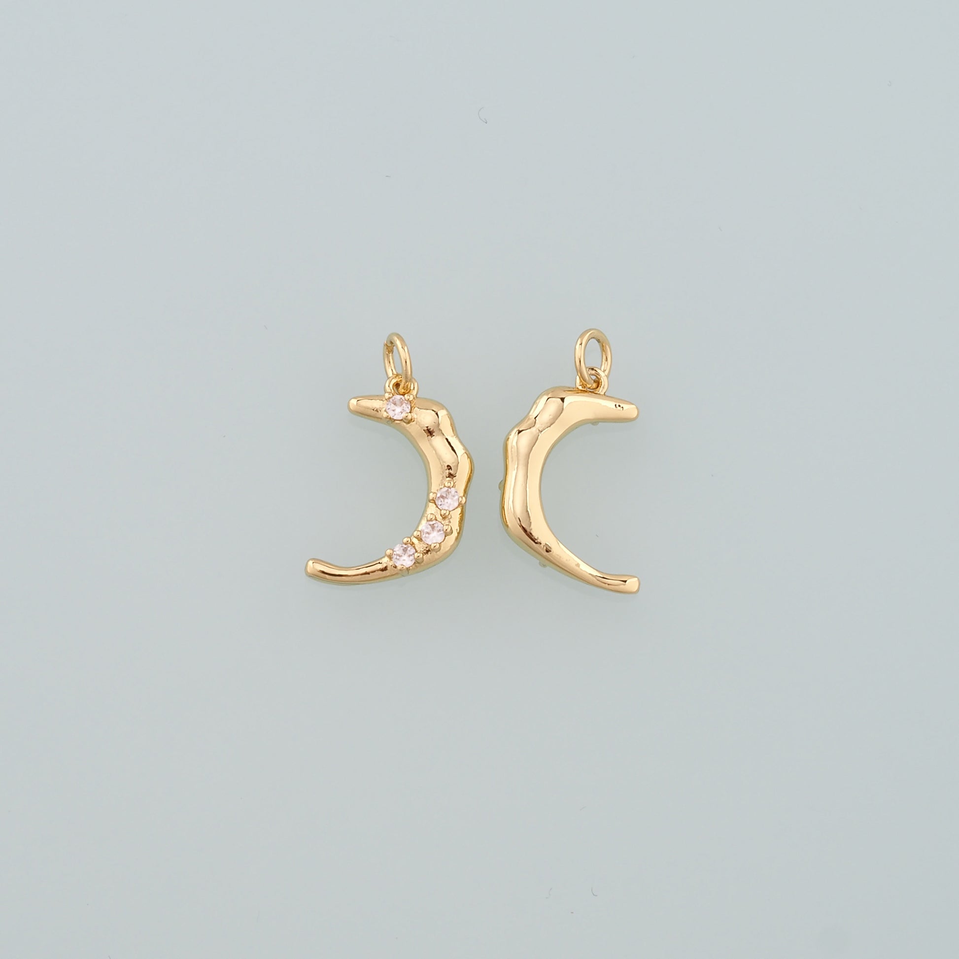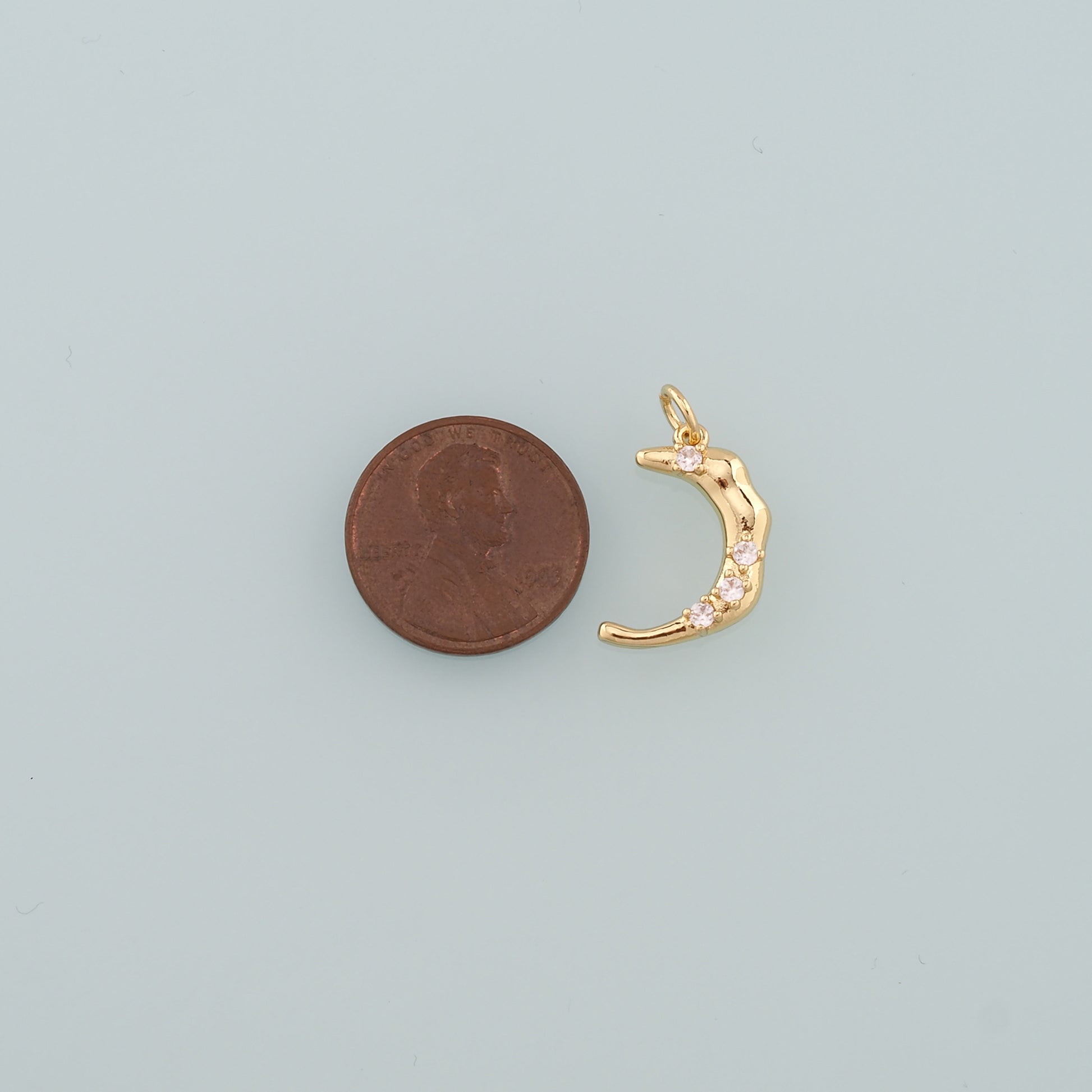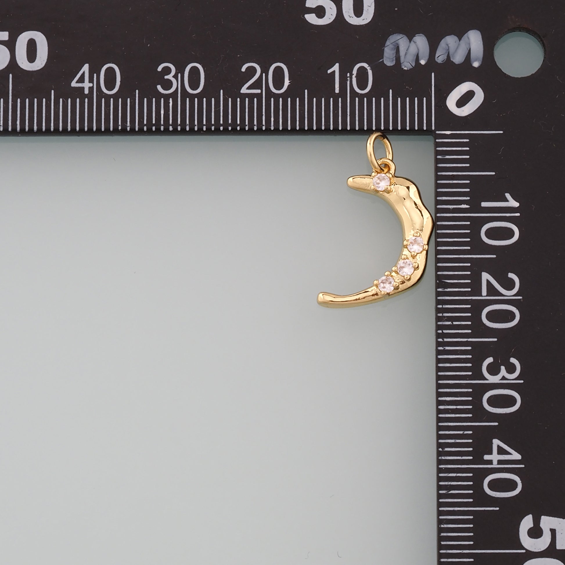 18K Gold Filled Moon Pendant,CZ Micro Pave Celestial Charm Bracelet Necklace for DIY Jewelry Making Supply