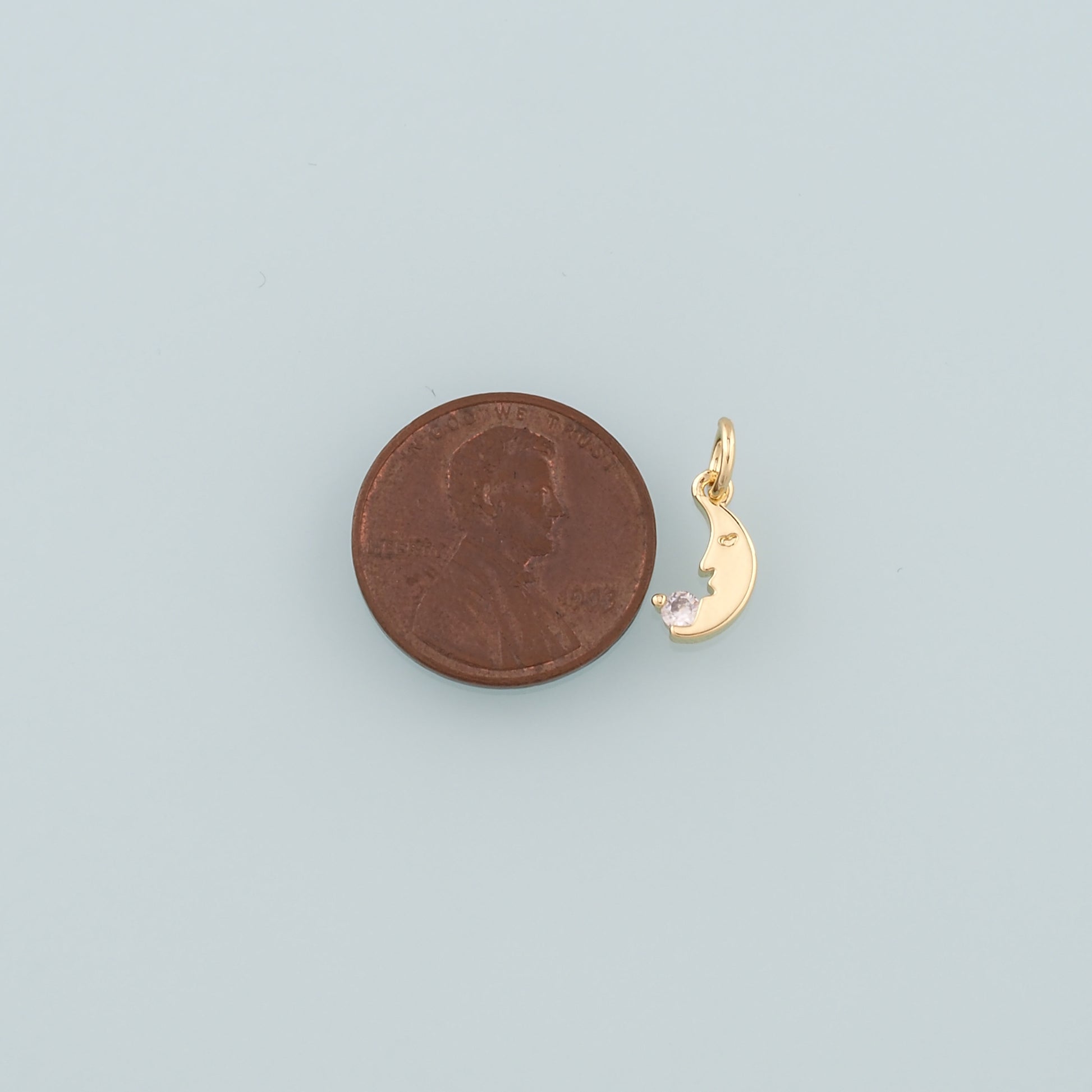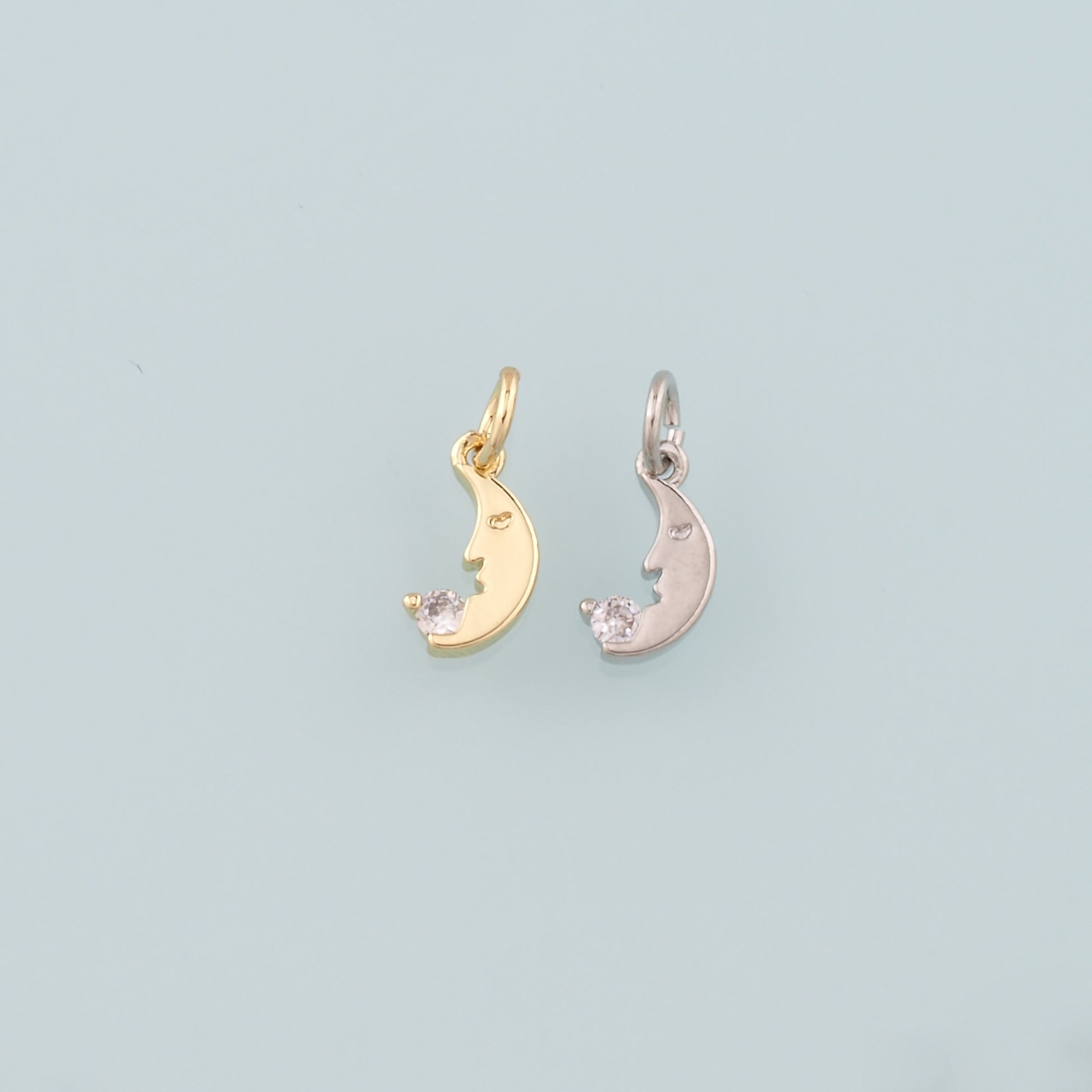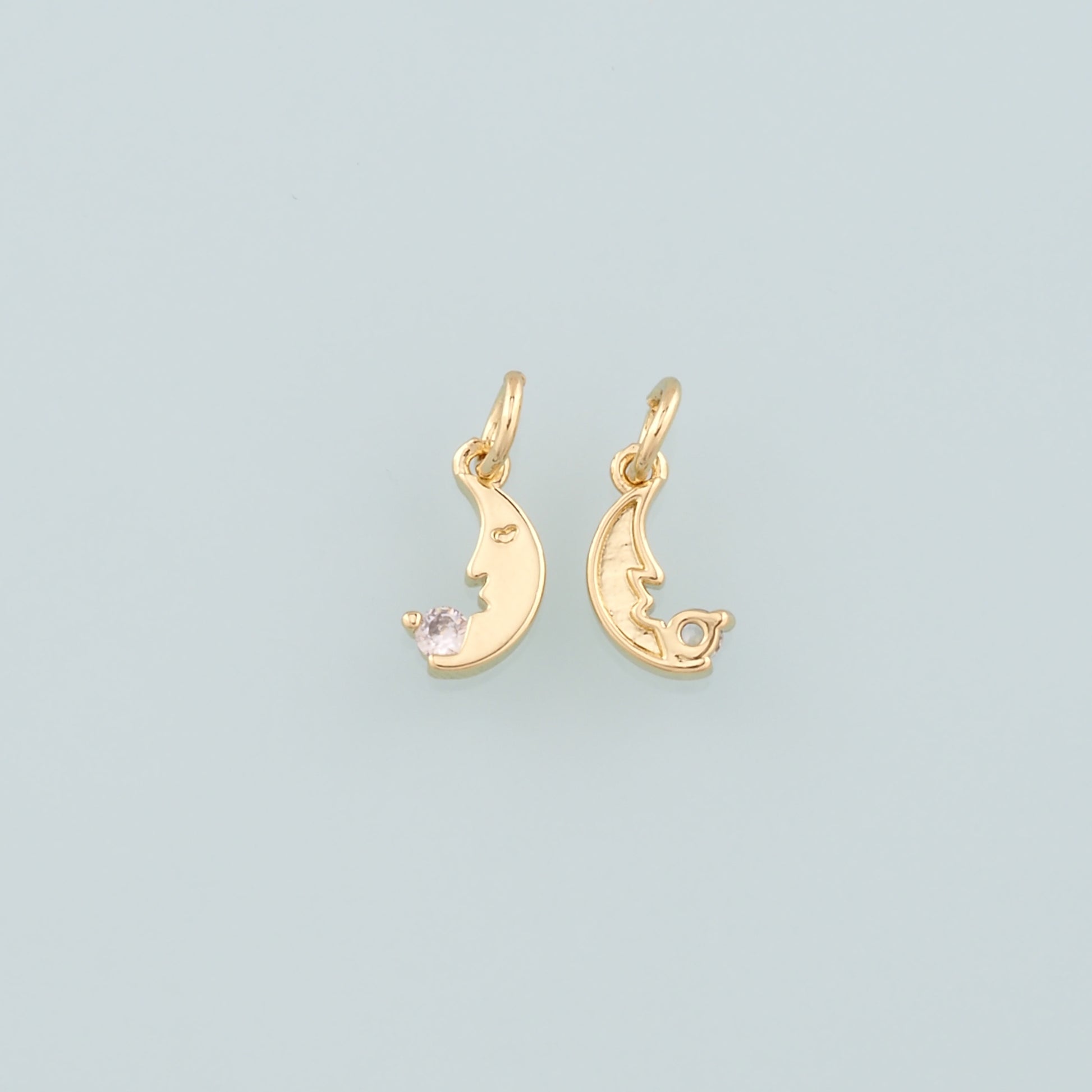 18K Gold Filled Moon Pendant,CZ Micro Pave Celestial Charm Bracelet Necklace for DIY Jewelry Making Supply