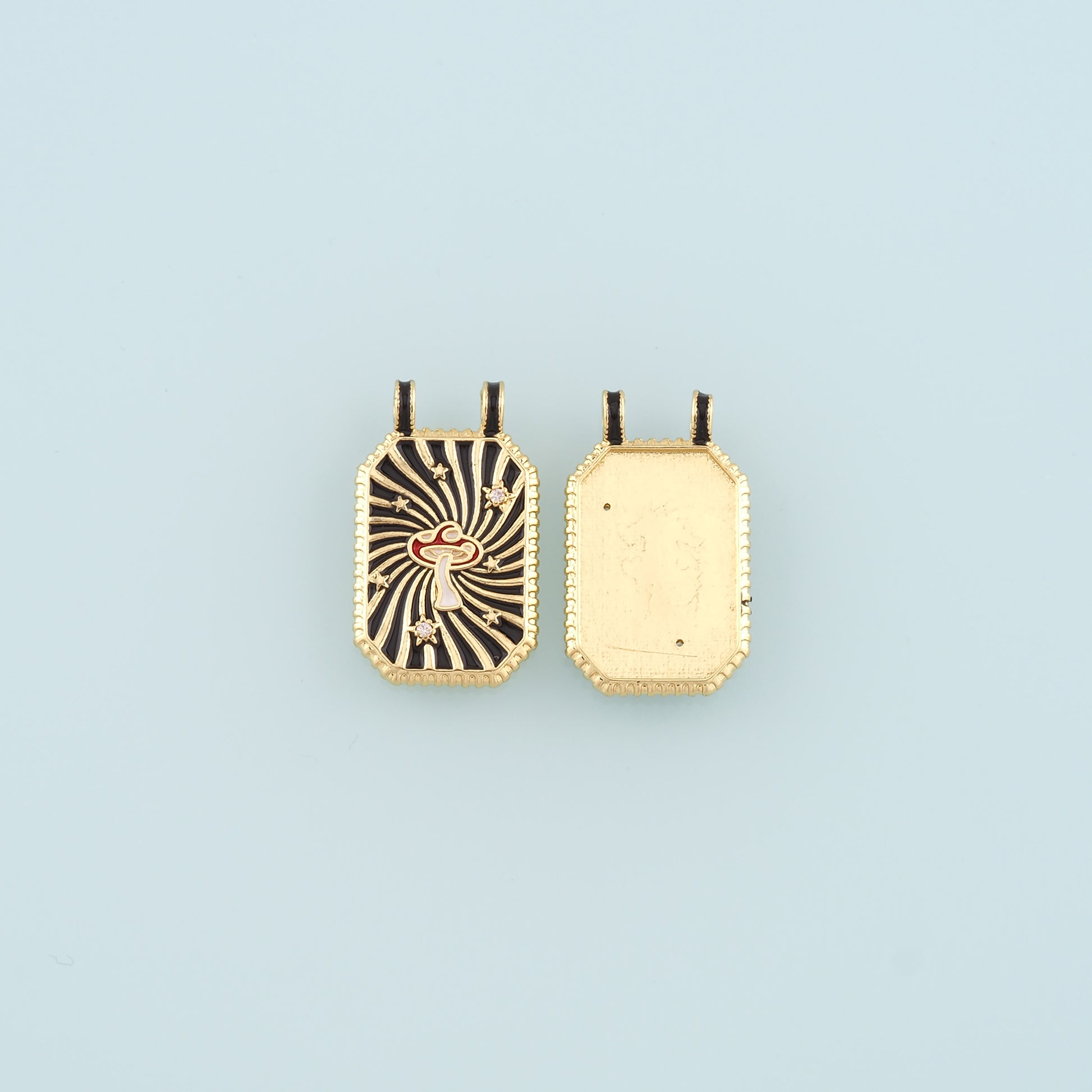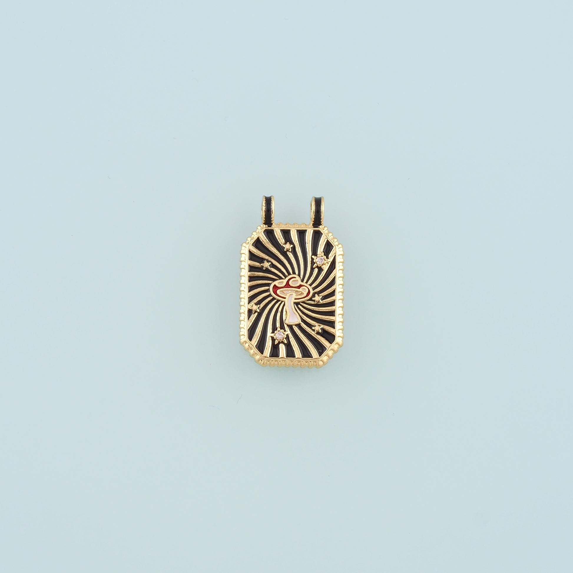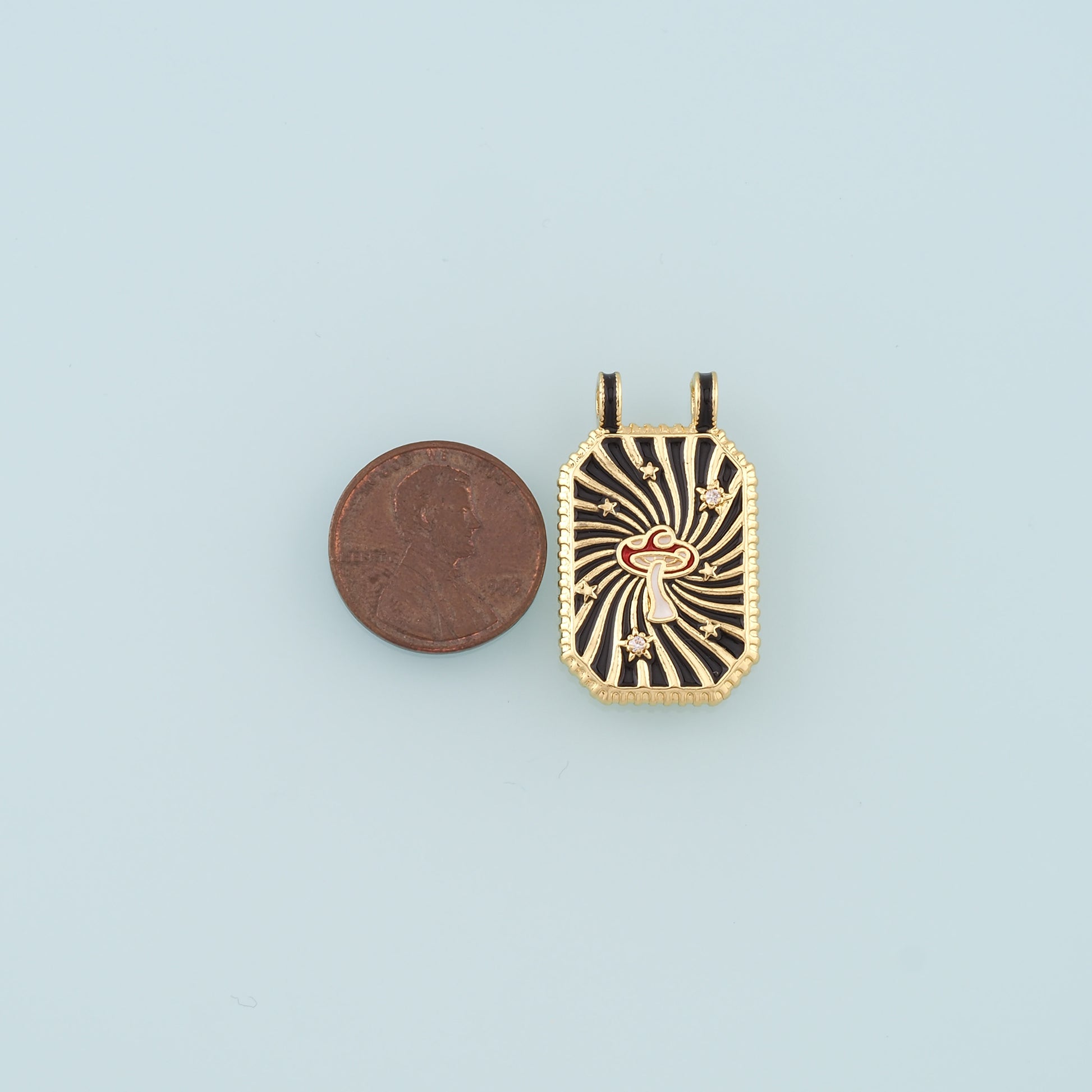 18K Gold Filled Mushroom Pendant,Enamel Mushroom Charm Bracelet Necklace for DIY Jewelry Making Supply
