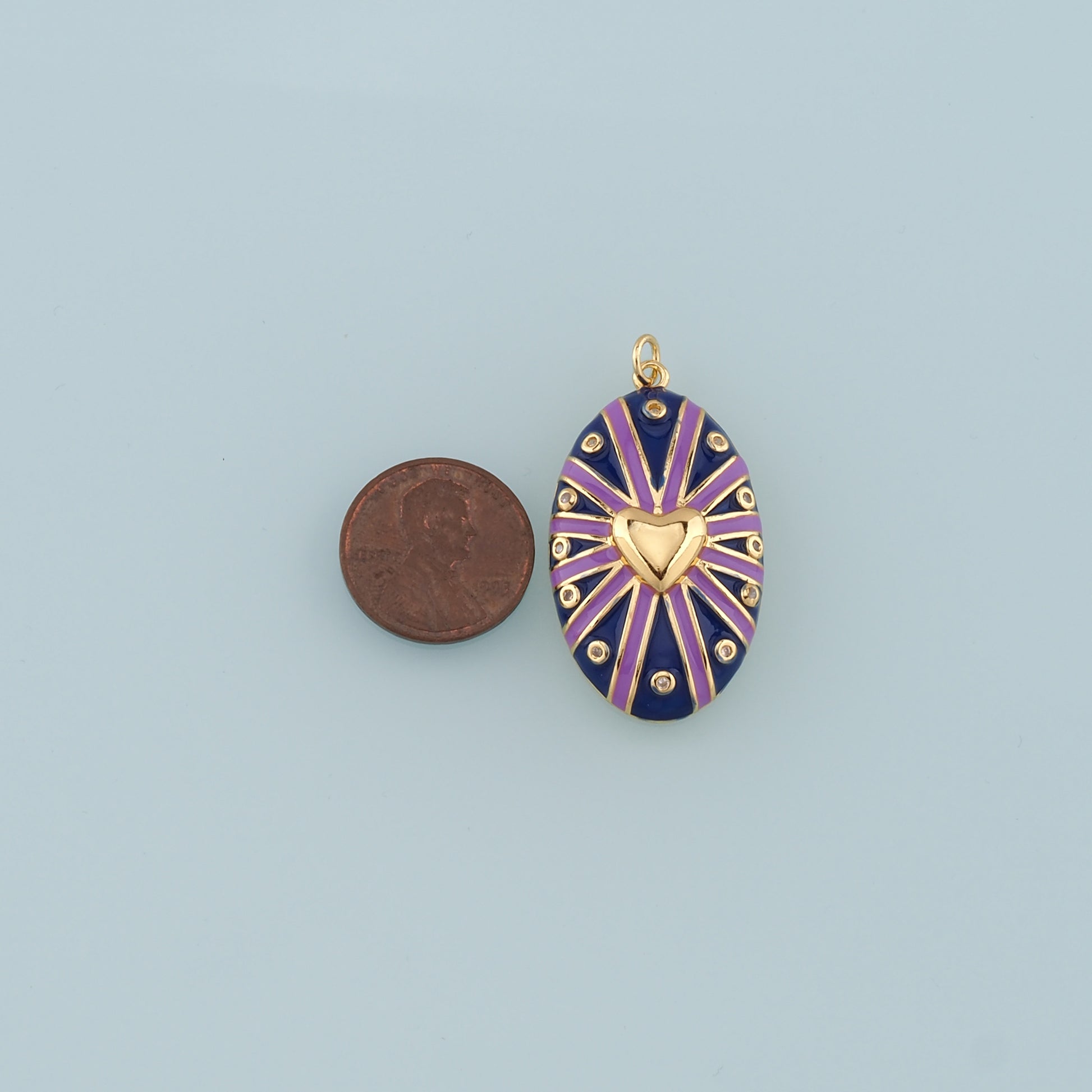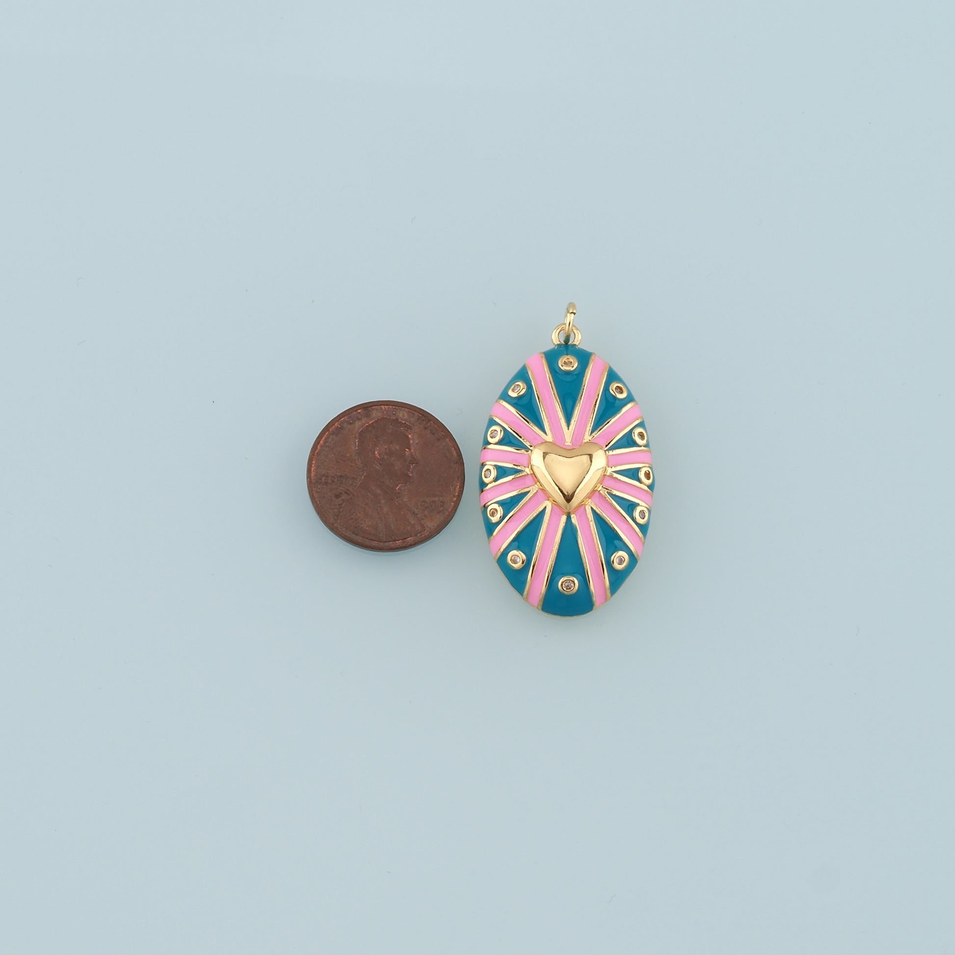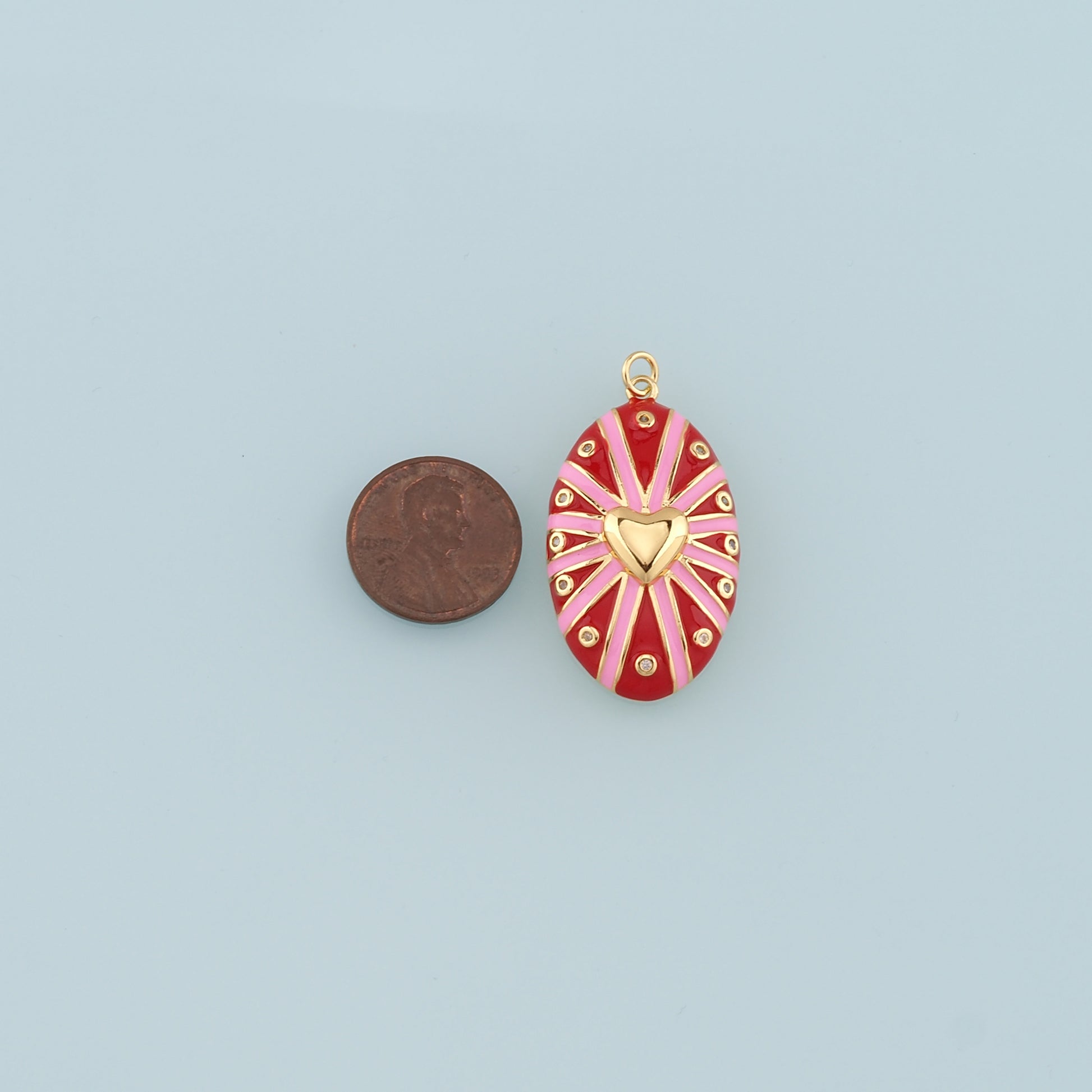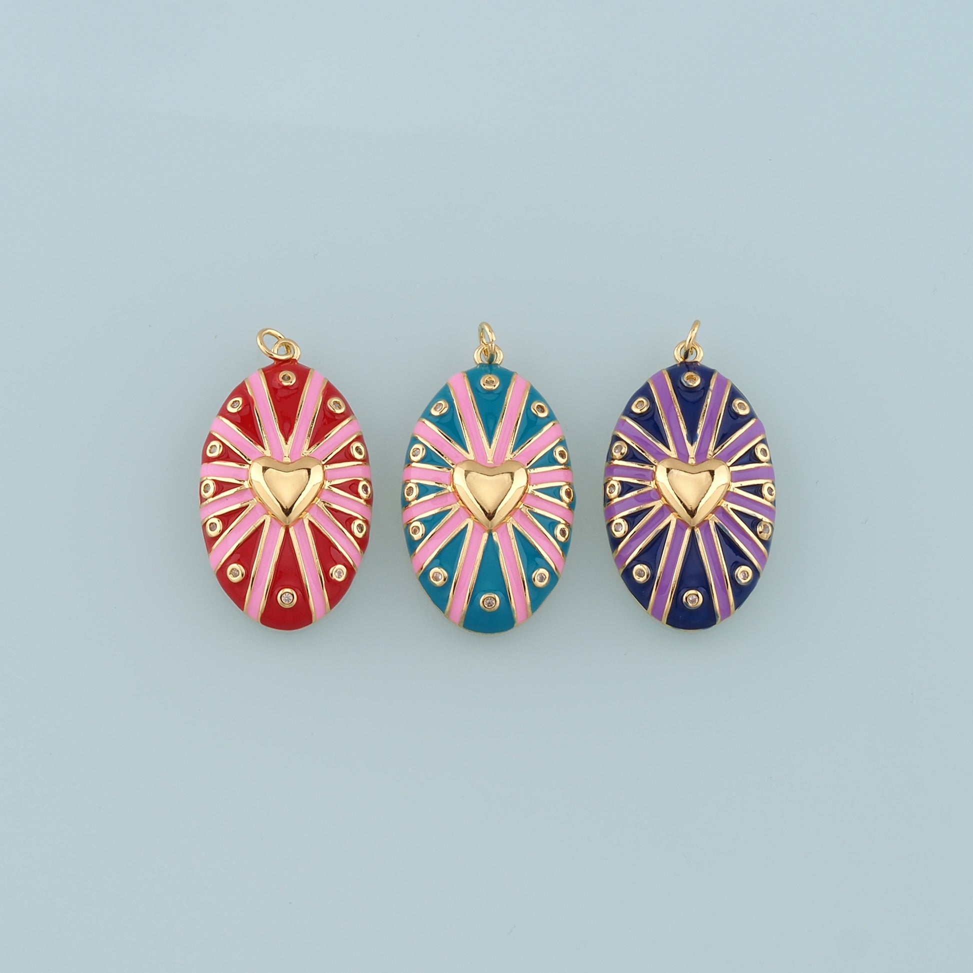 18K Gold Filled Oval Heart Pendant,Enamel Heart Charm Bracelet Necklace for DIY Jewelry Making Supply