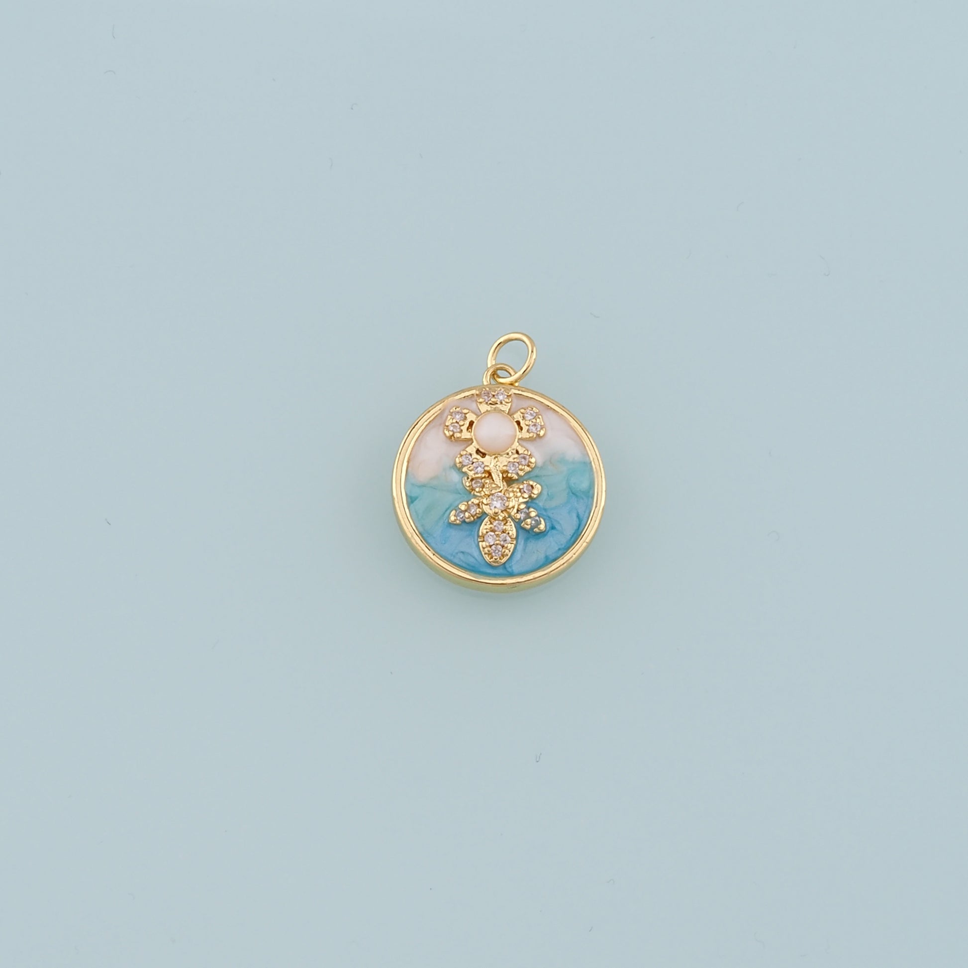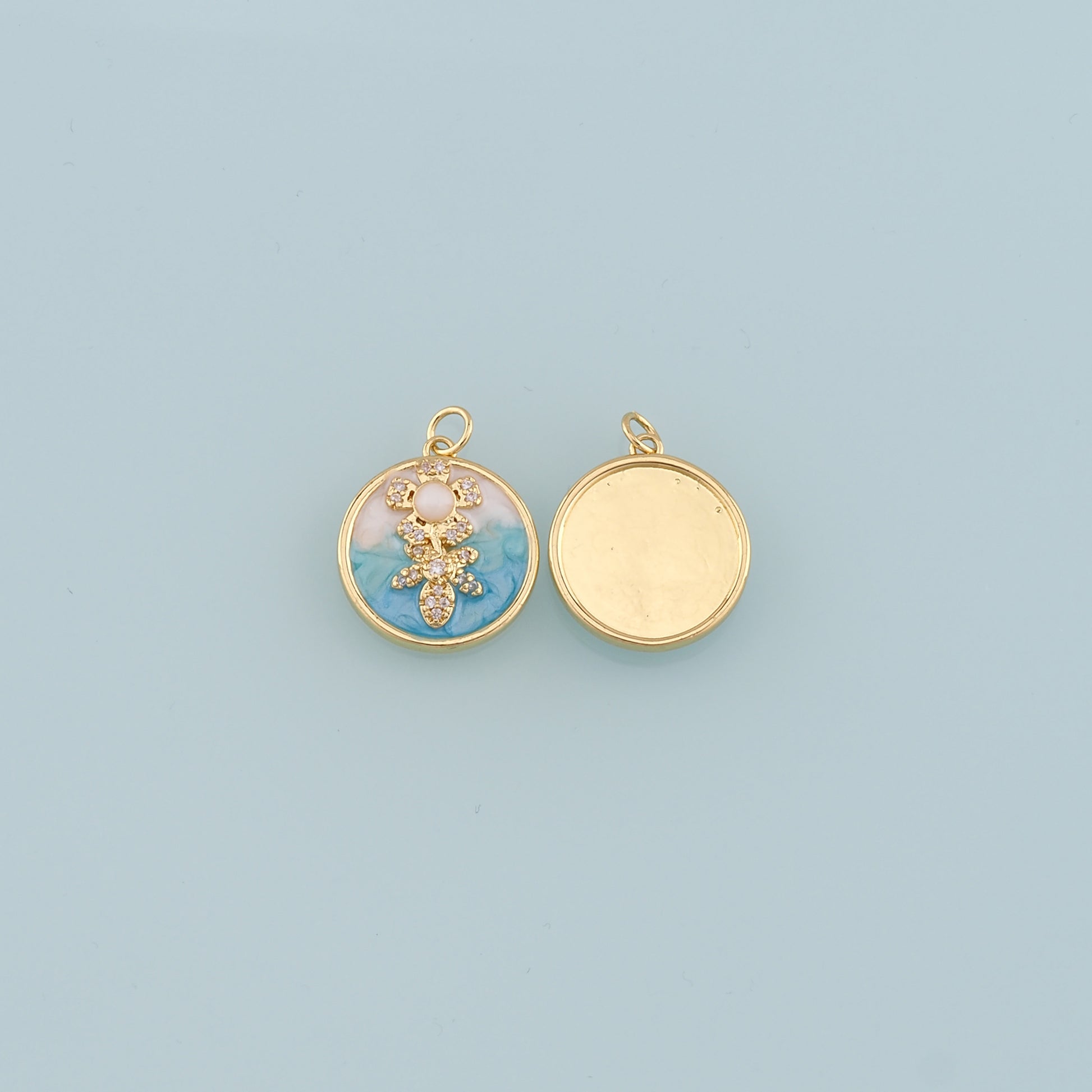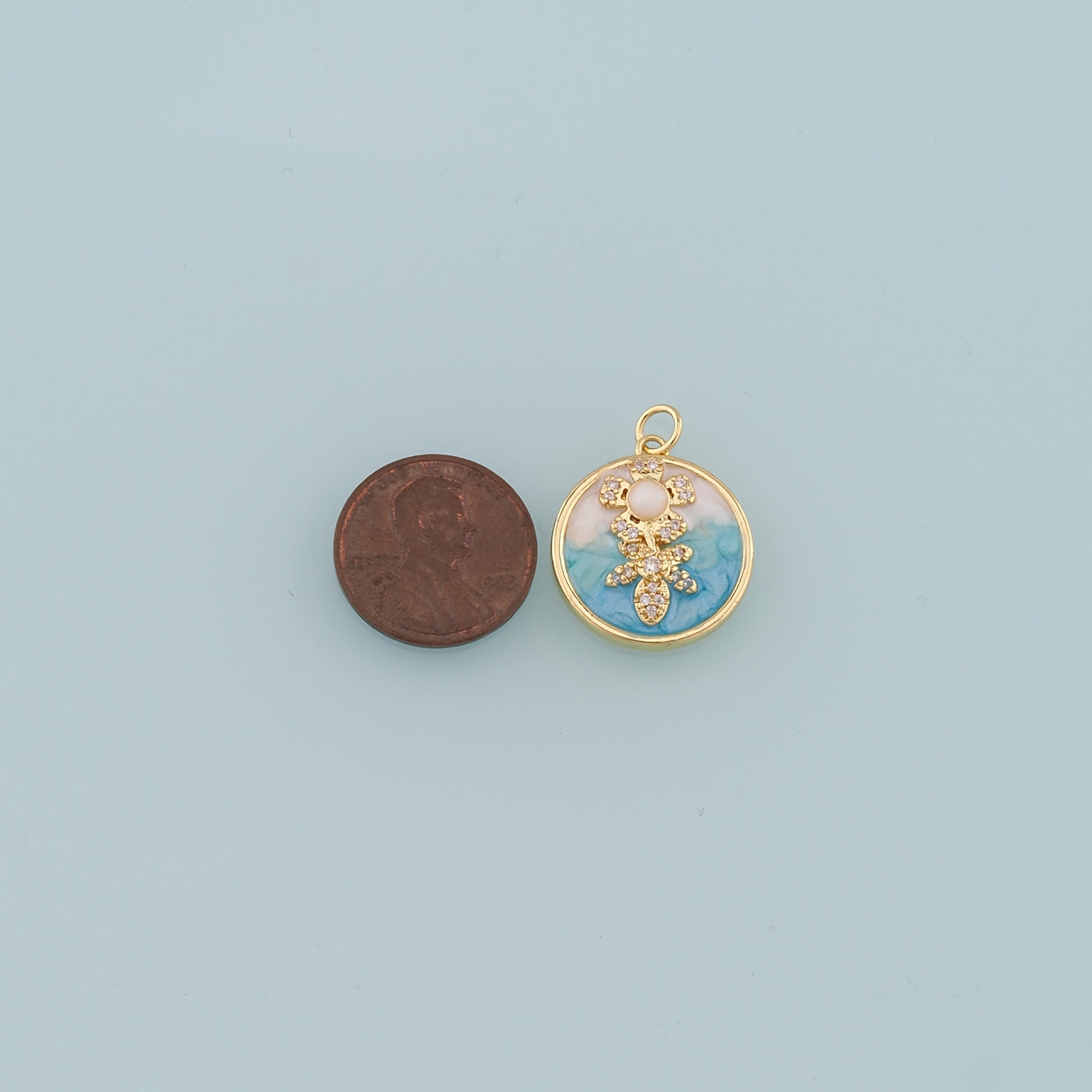 18K Gold Filled Pearl Flower Pendant,Enamel Flower Charm Bracelet Necklace for DIY Jewelry Making Supply