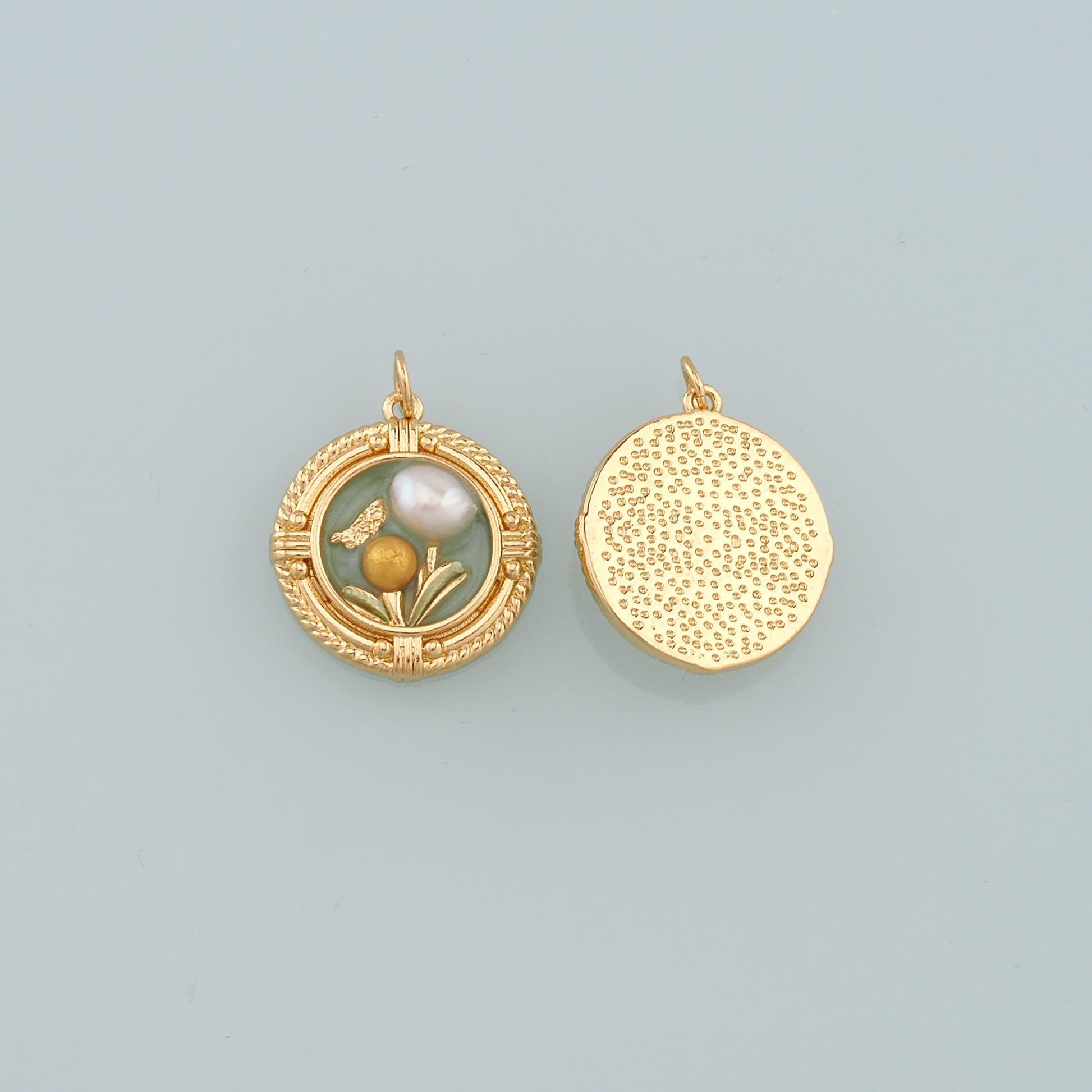 18K Gold Filled Pearl Flower Pendant,Enamel Flower Charm Bracelet Necklace for DIY Jewelry Making Supply