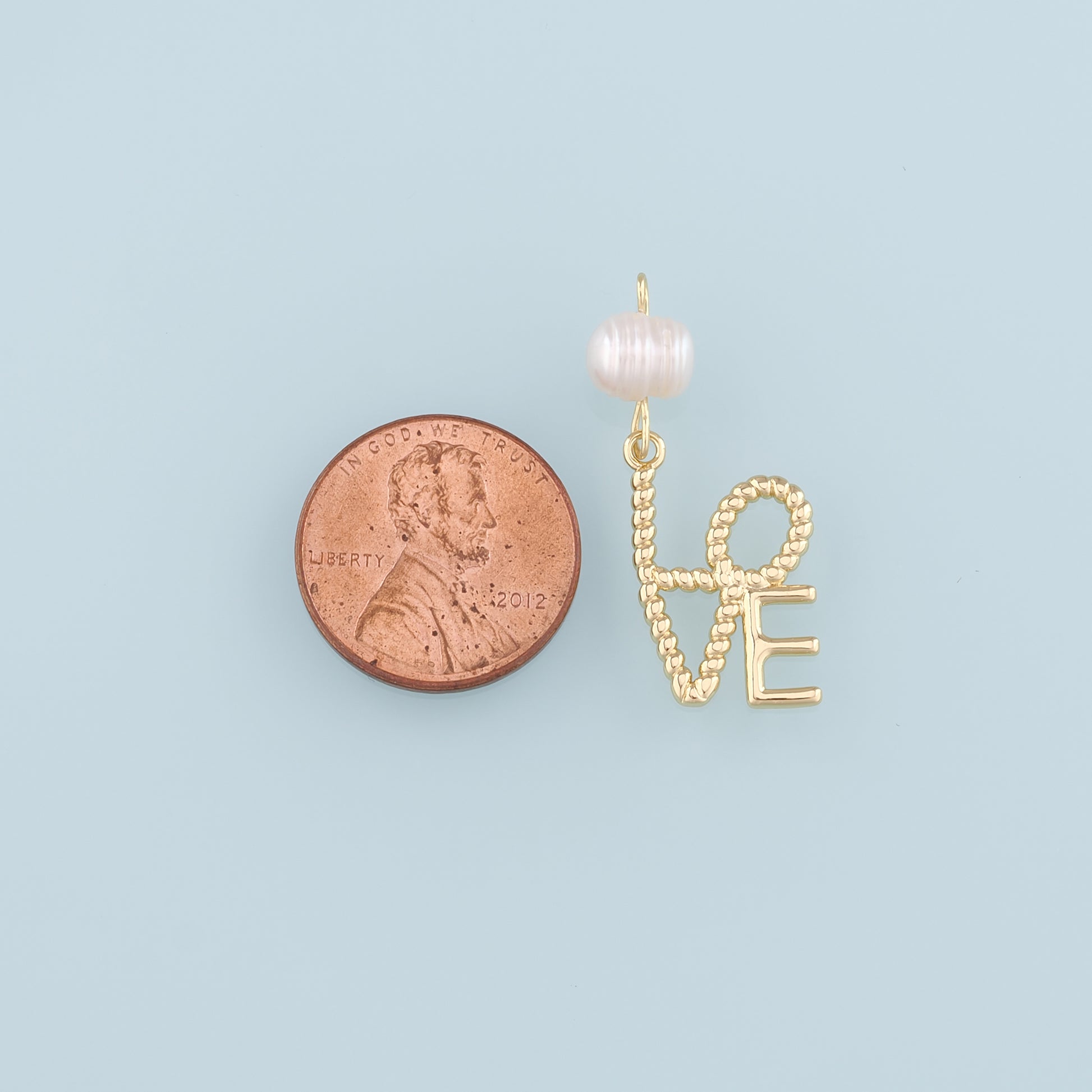 18K Gold Filled Pearl Love Pendant,Love Charm Bracelet Necklace for DIY Jewelry Making Supply