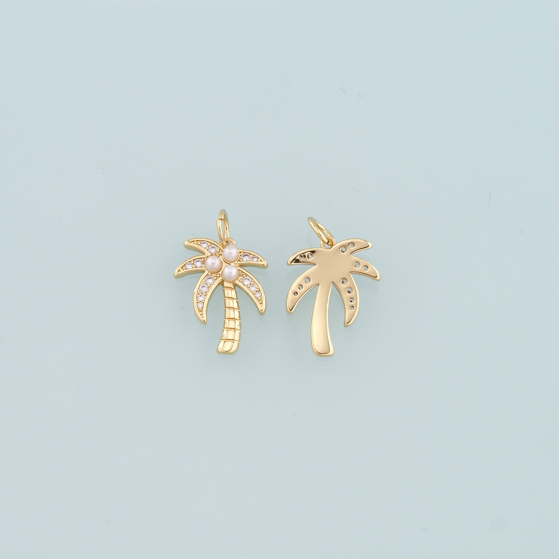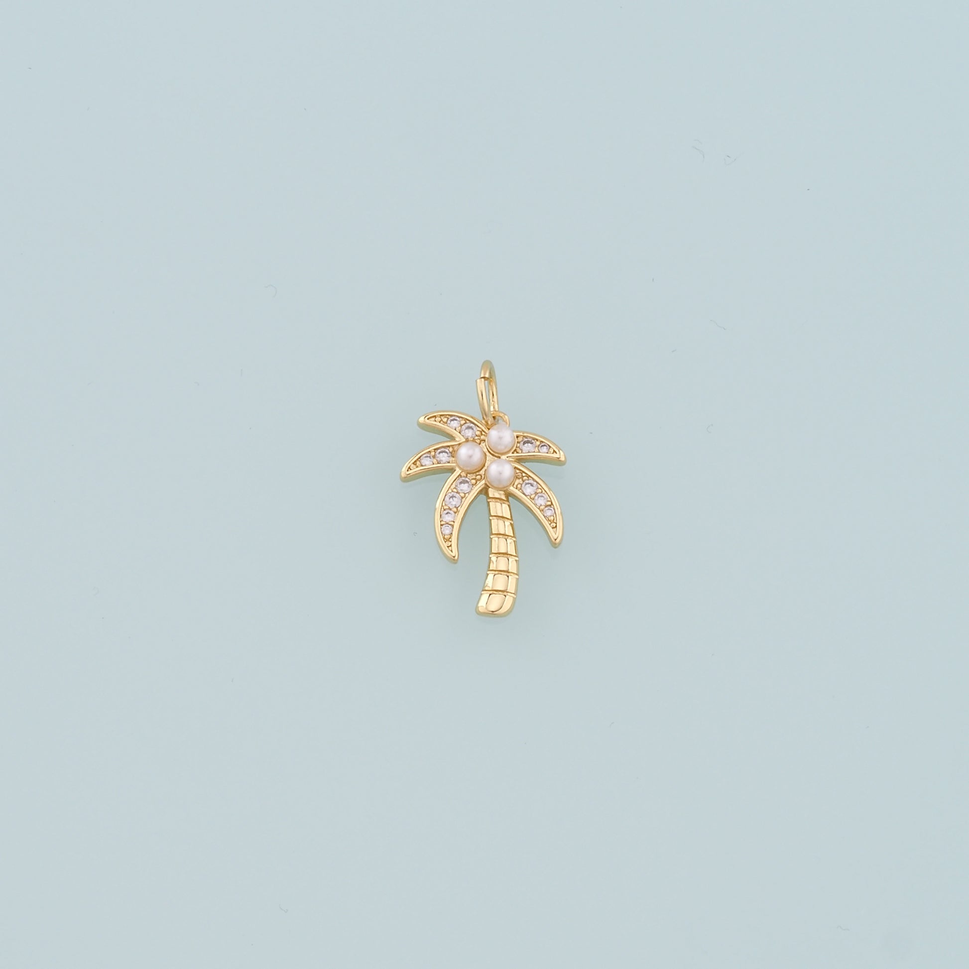 18K Gold Filled Pearl Palm Tree Pendant,CZ Micro Pave Palm Tree Charm Bracelet Necklace for DIY Jewelry Making Supply