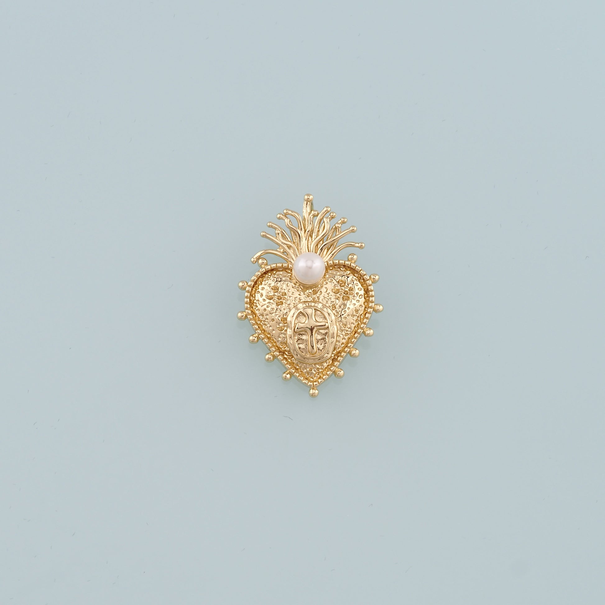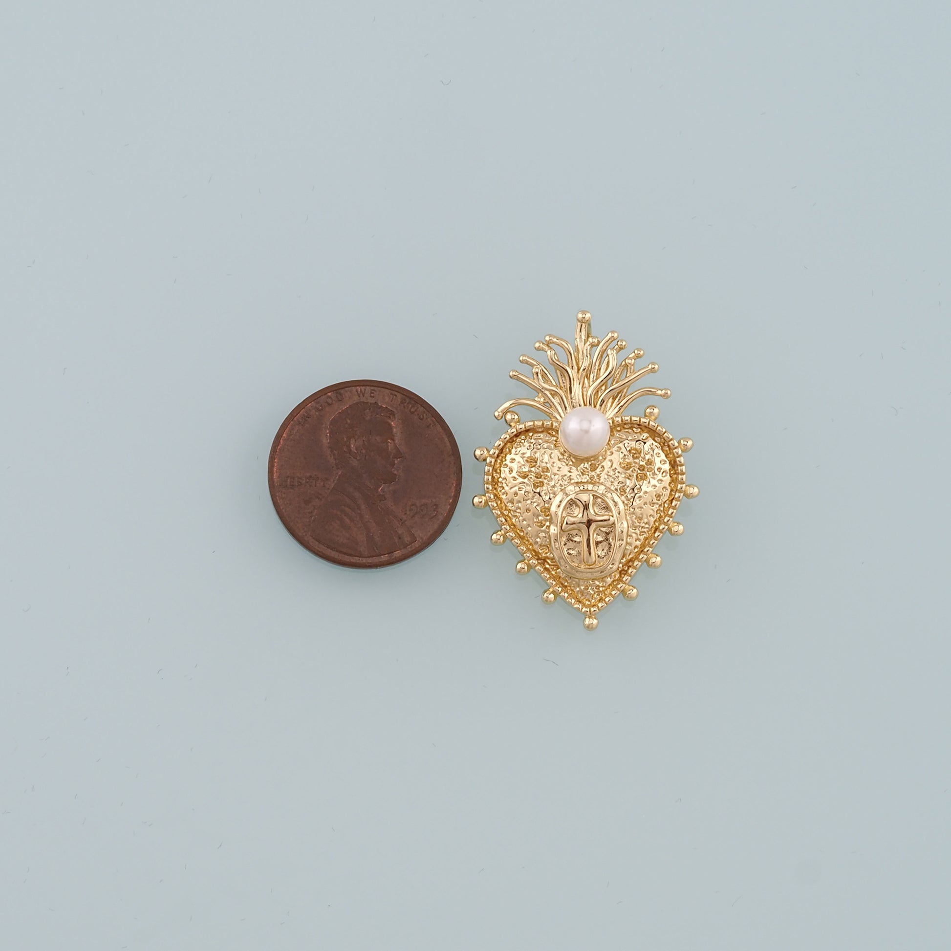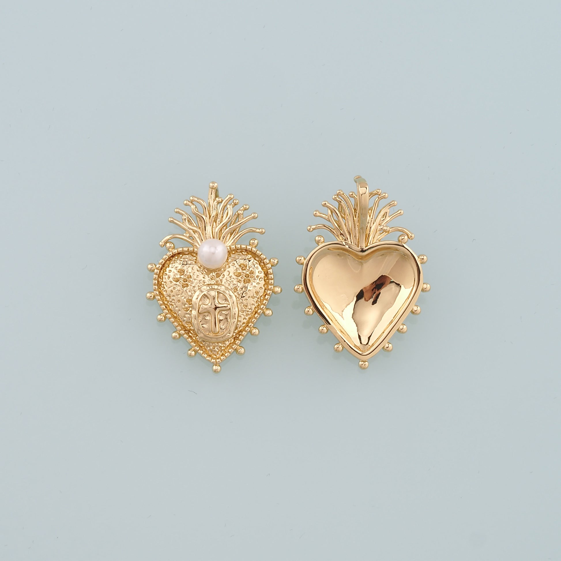 18K Gold Filled Pearl Sacred heart Pendant,Religion Charm Bracelet Necklace for DIY Jewelry Making Supply