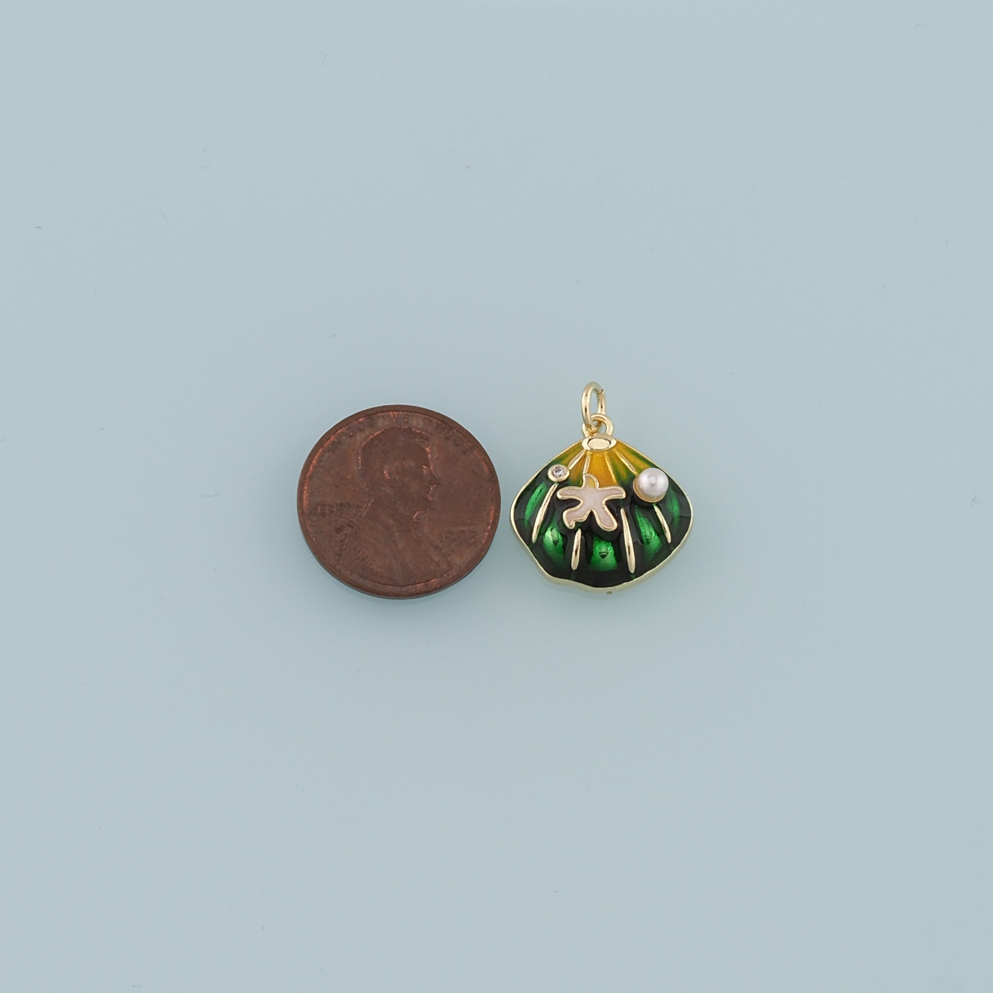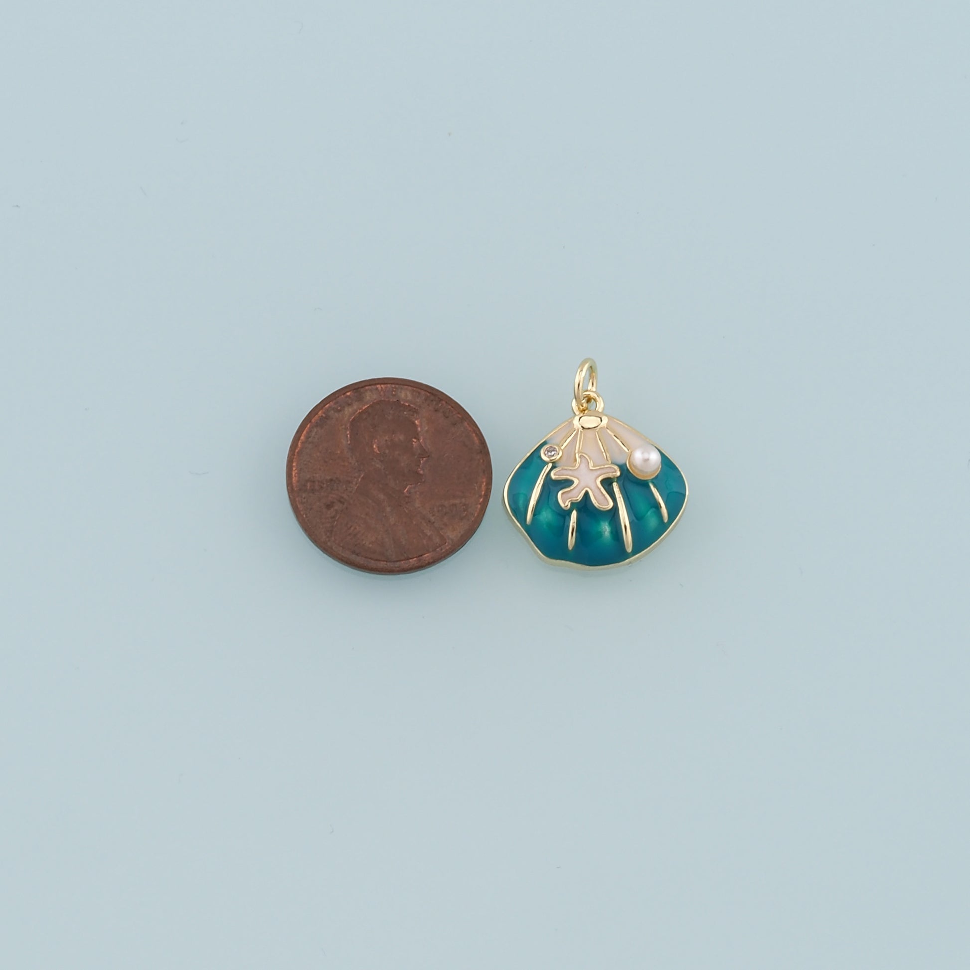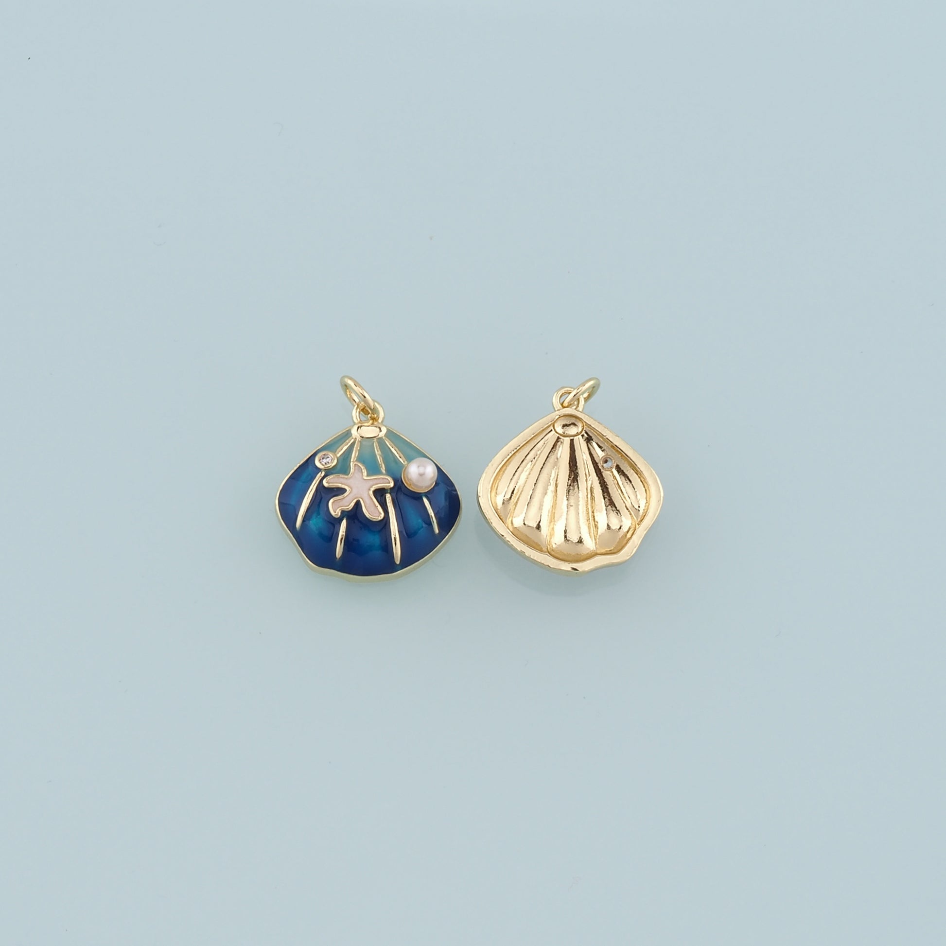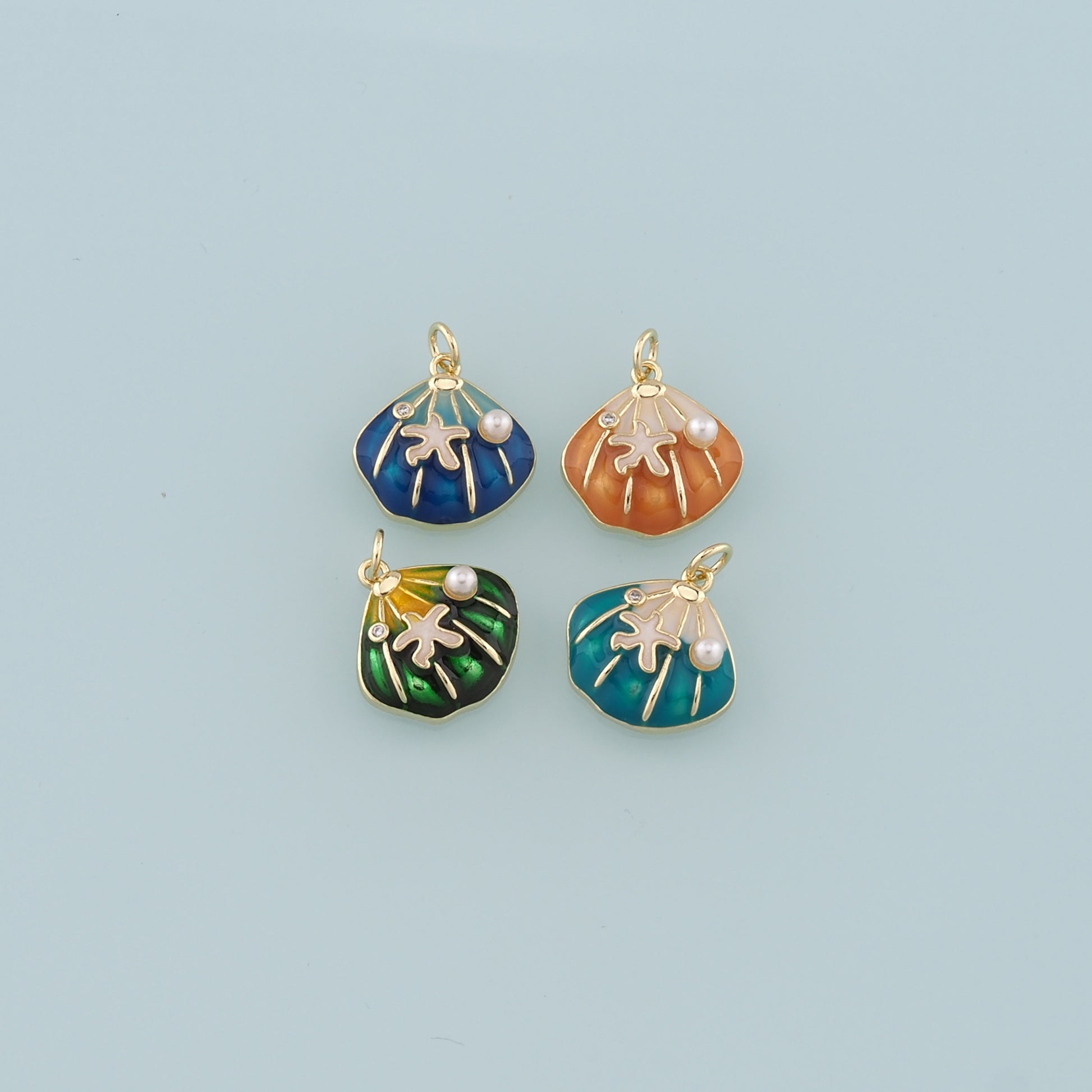 18K Gold Filled Pearl Shell Pendant,Enamel Starfish Charm Bracelet Necklace for DIY Jewelry Making Supply