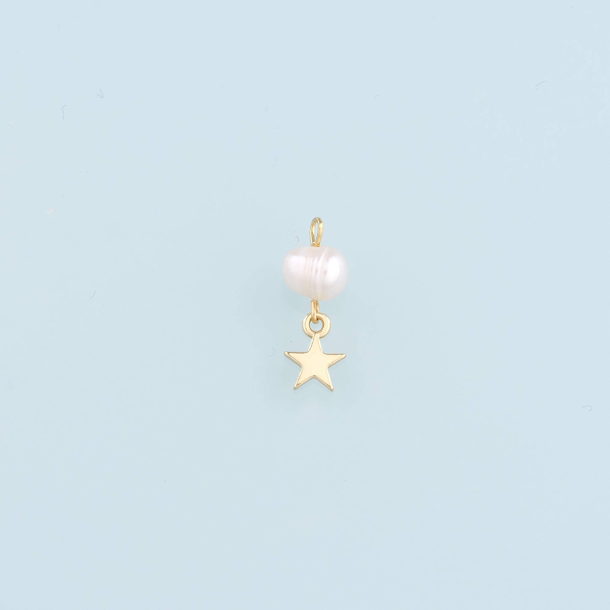 18K Gold Filled Pearl Star Pendant,Celestial Charm Bracelet Necklace for DIY Jewelry Making Supply