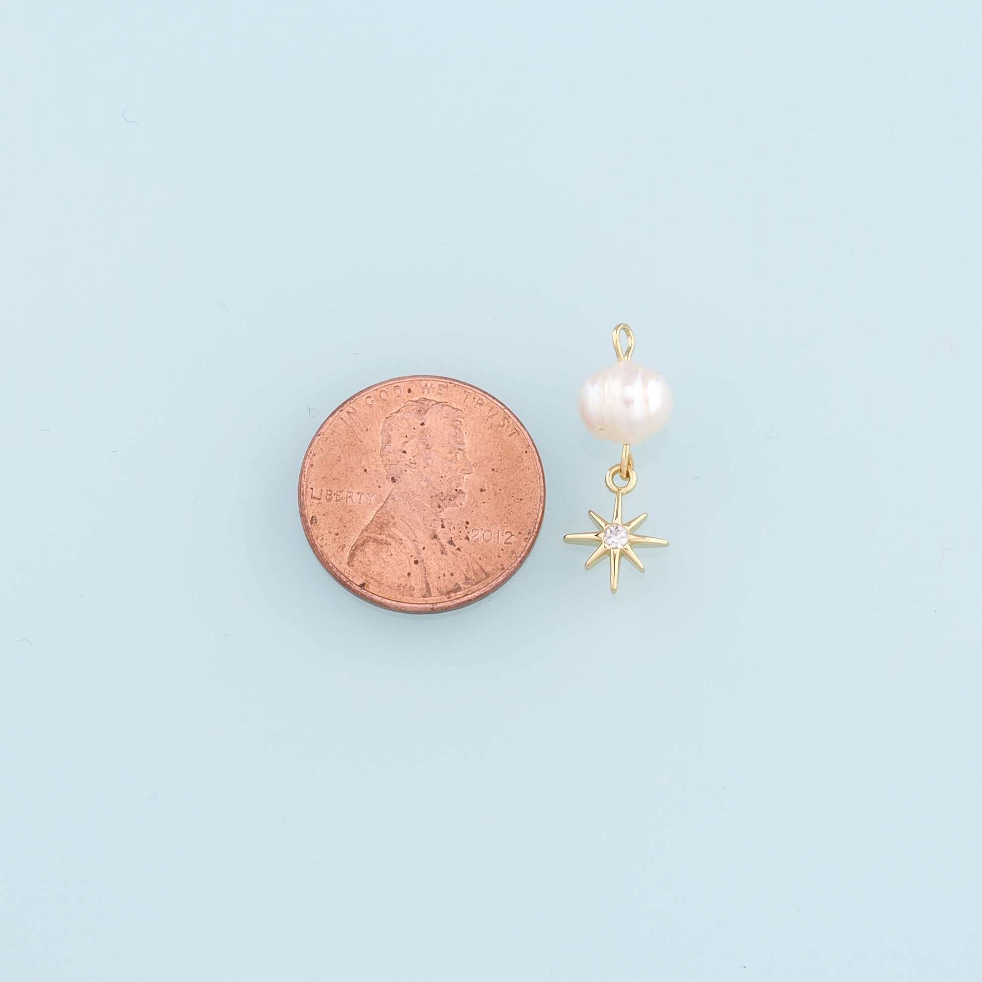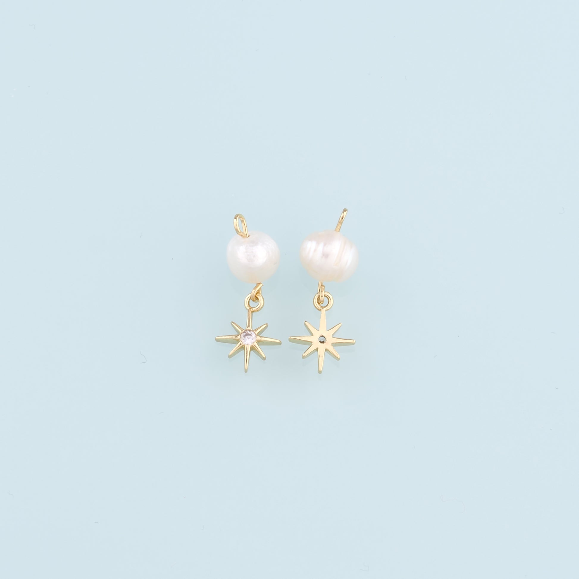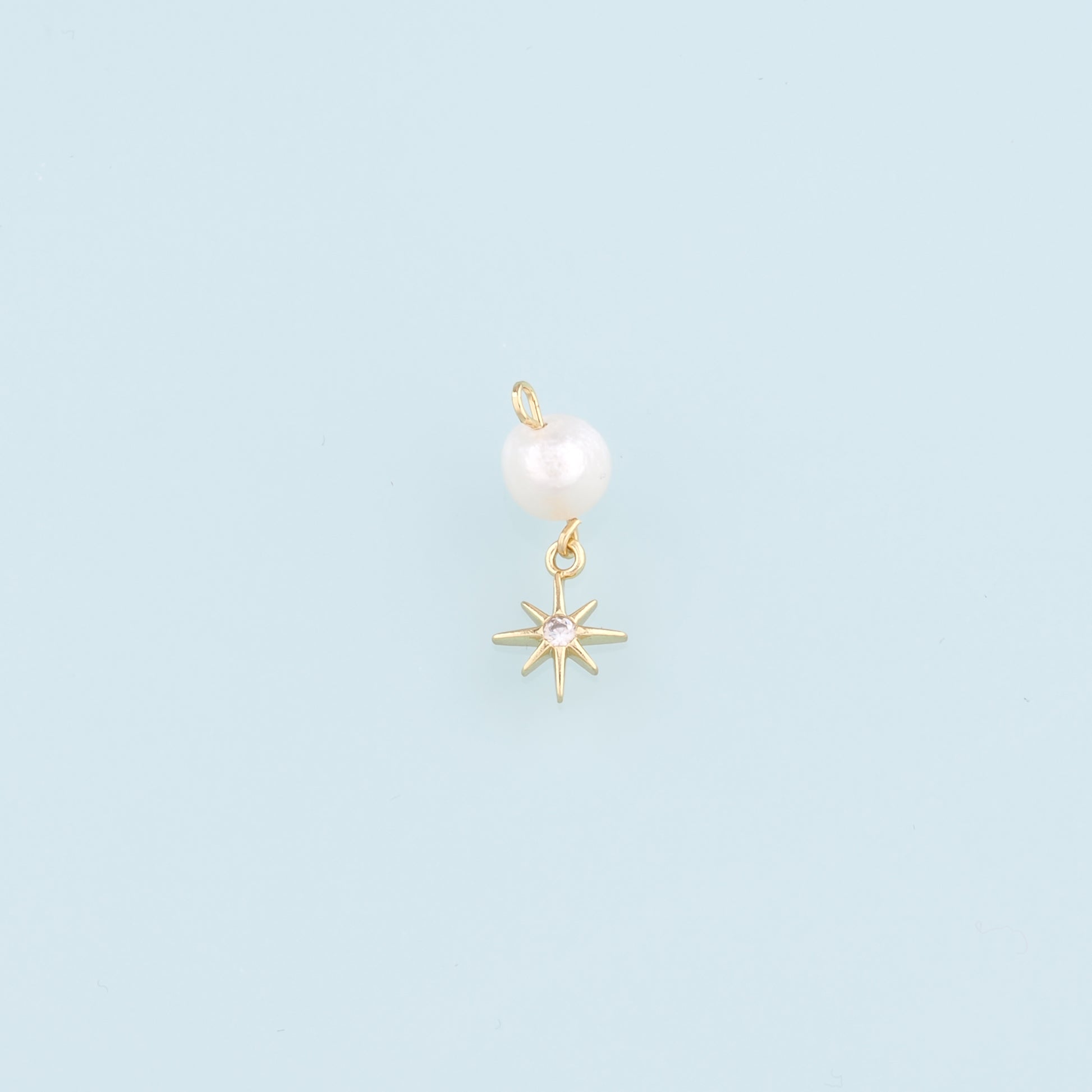 18K Gold Filled Pearl Star Pendant,Polar star Charm Bracelet Necklace for DIY Jewelry Making Supply