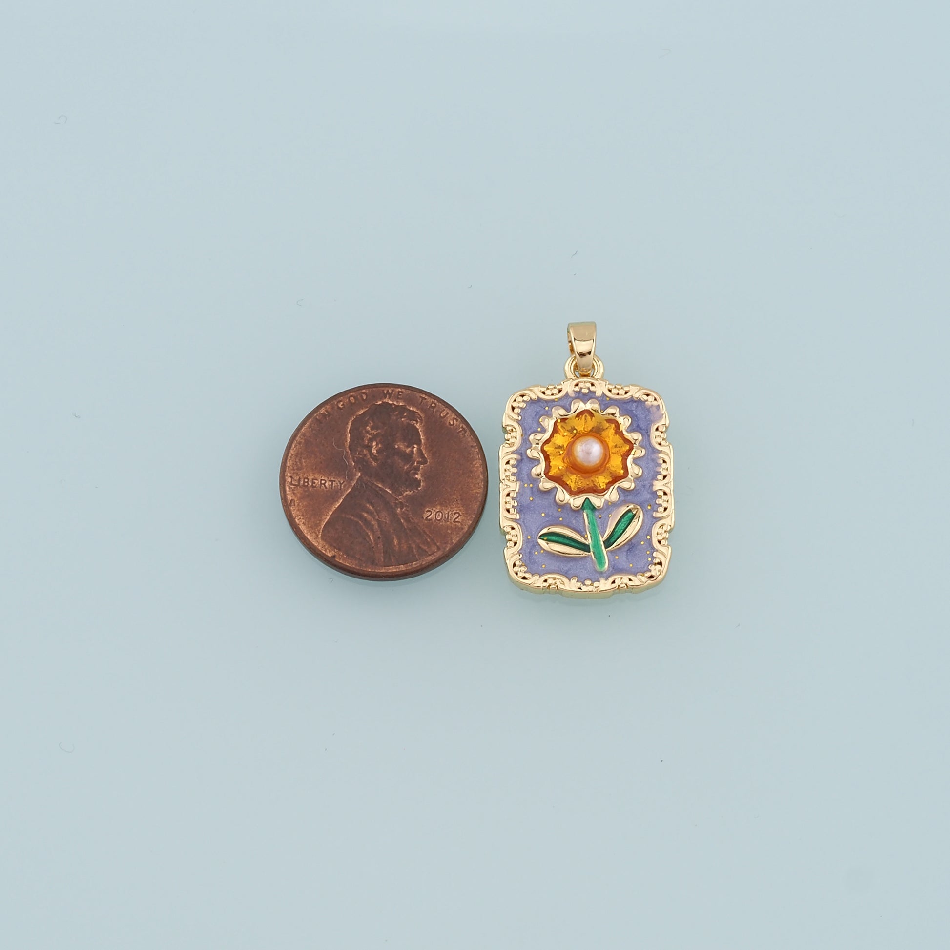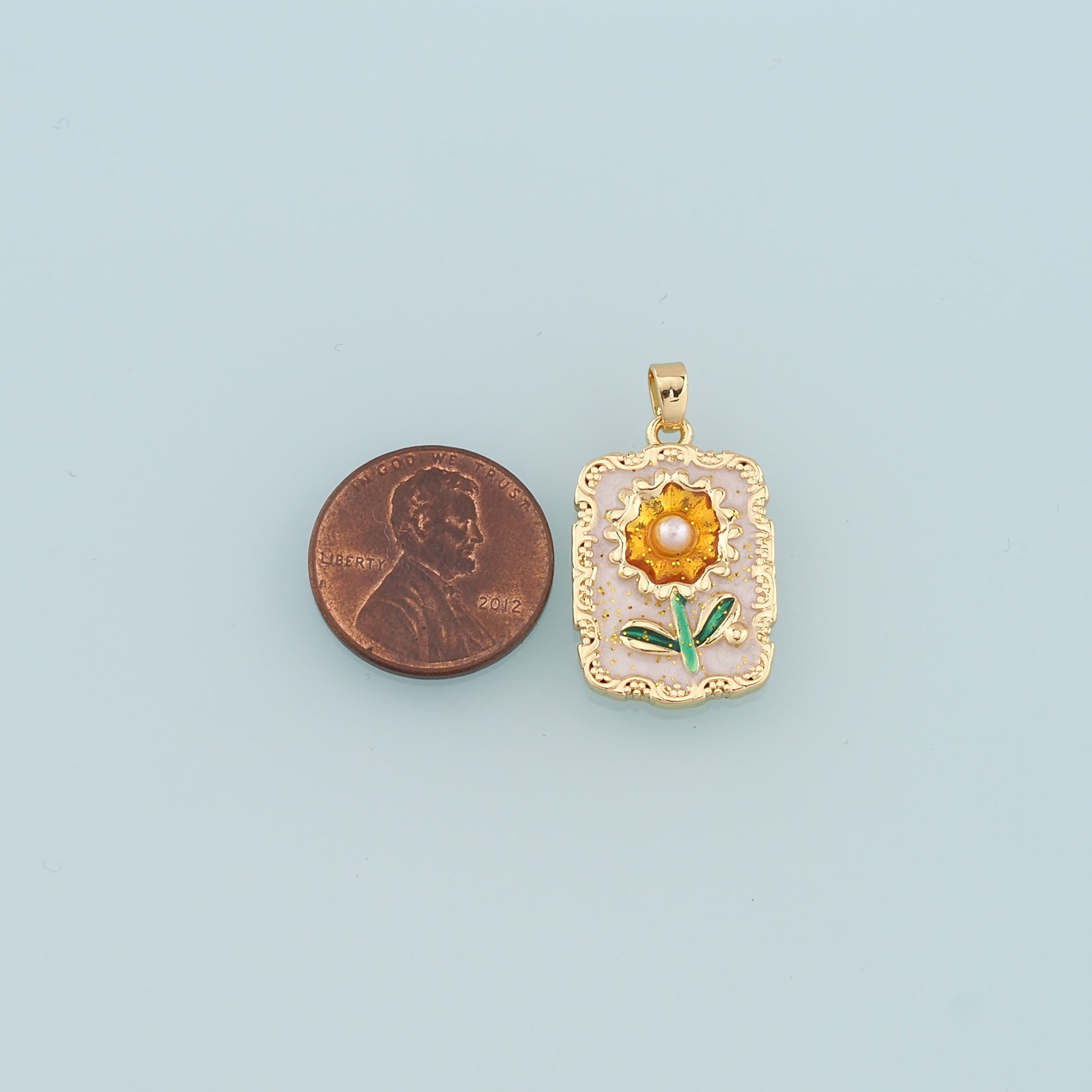 18K Gold Filled Pearl Sunflower Pendant,Enamel Daisy Charm Bracelet Necklace for DIY Jewelry Making Supply