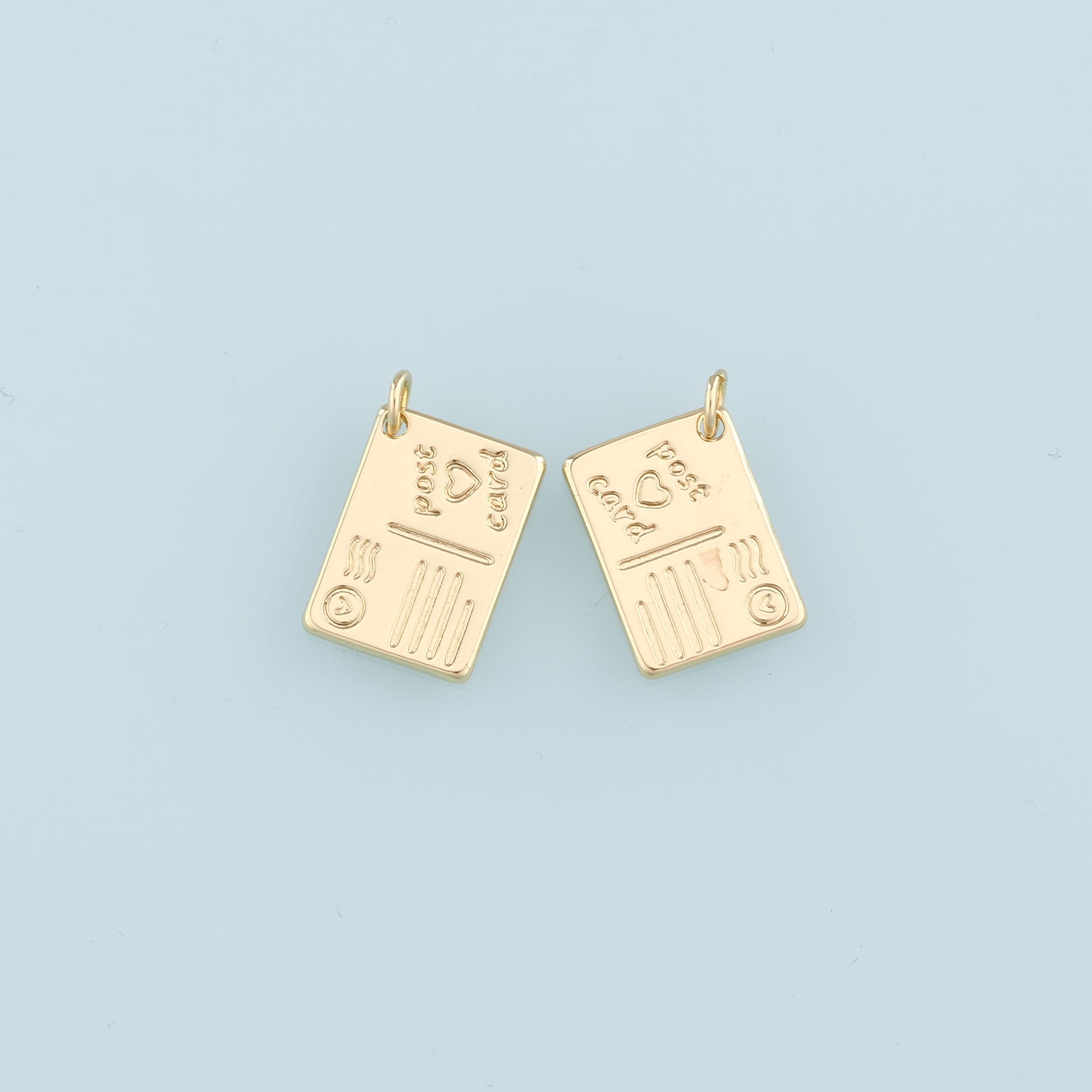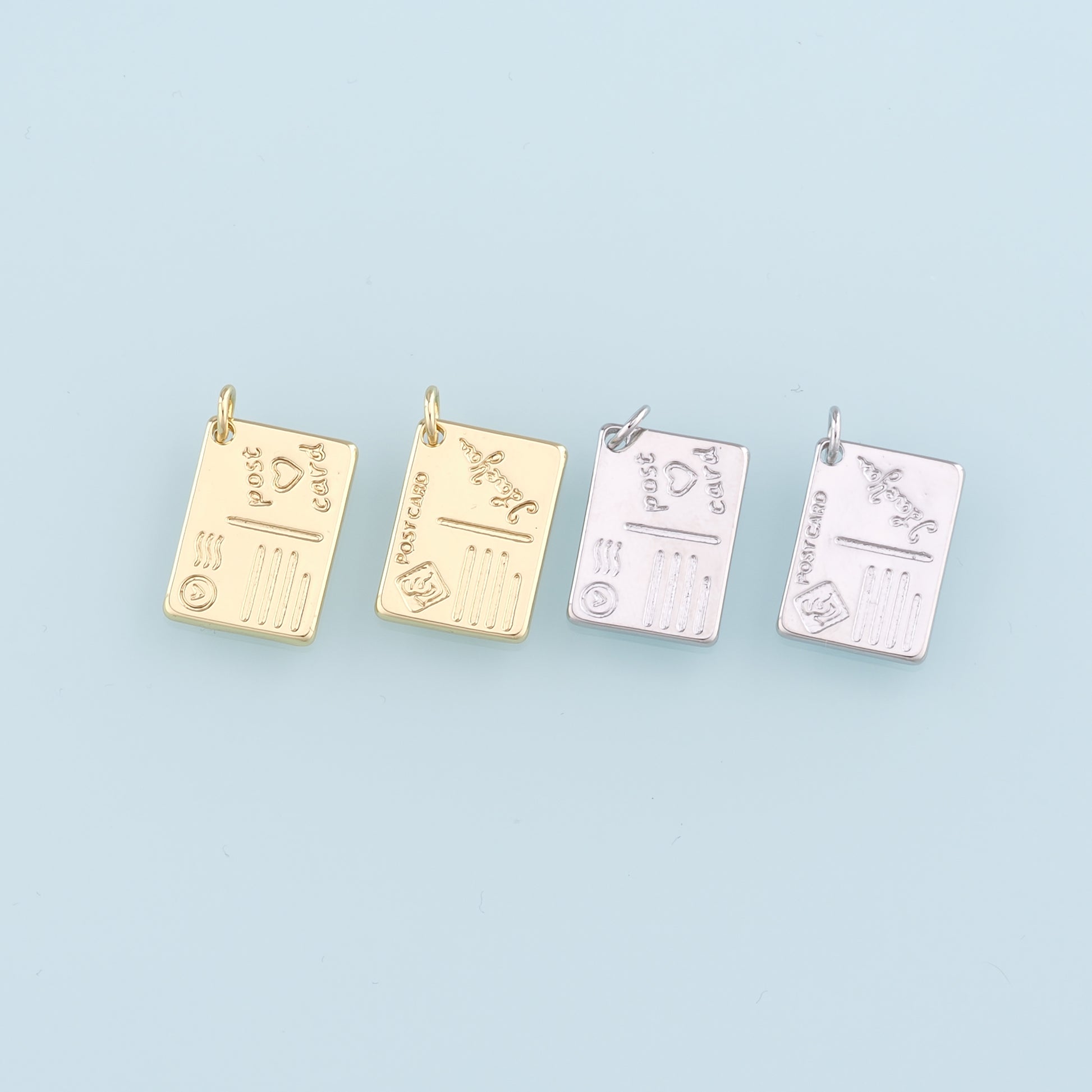 18K Gold Filled Postcard Pendant,Postcard Charm Bracelet Necklace for DIY Jewelry Making Supply
