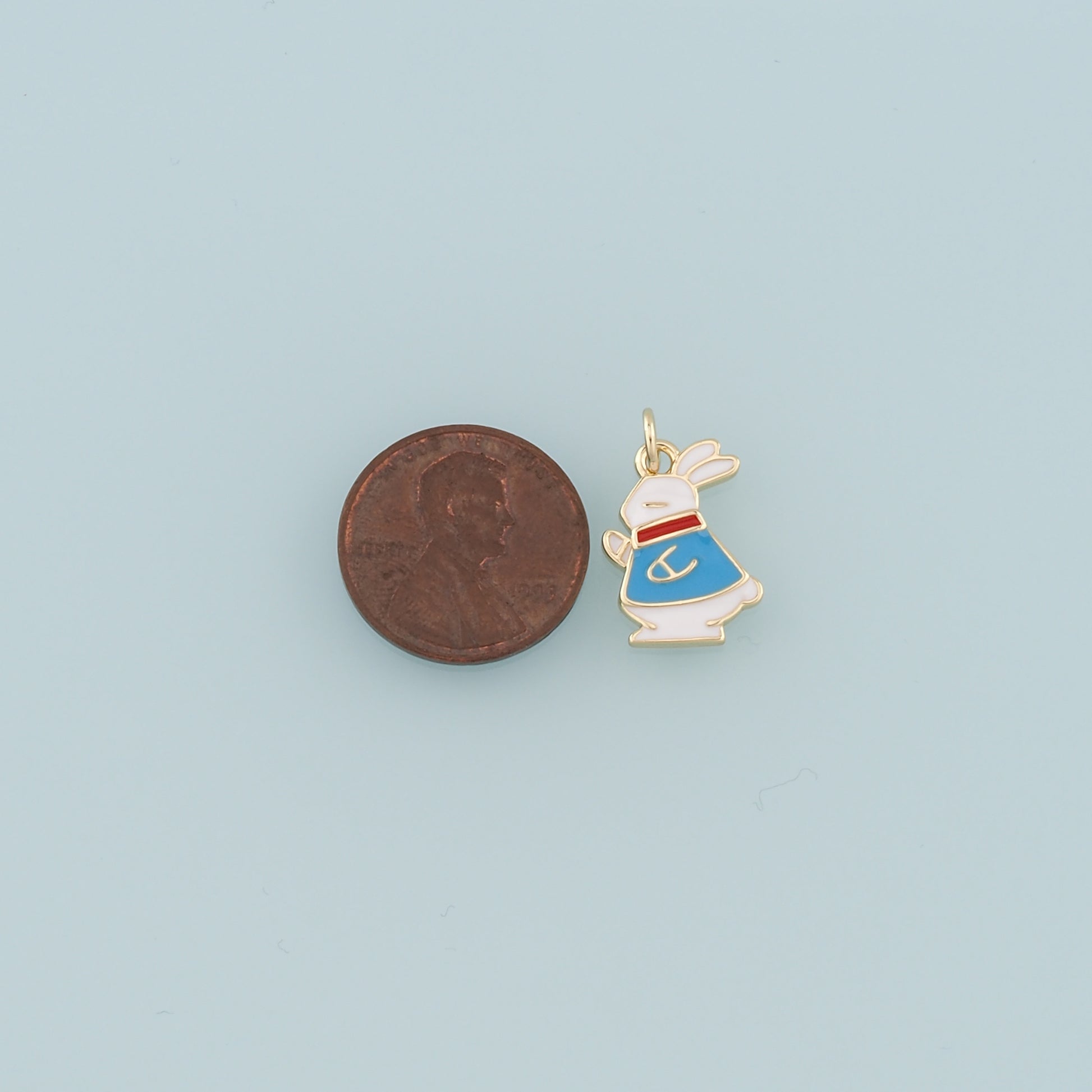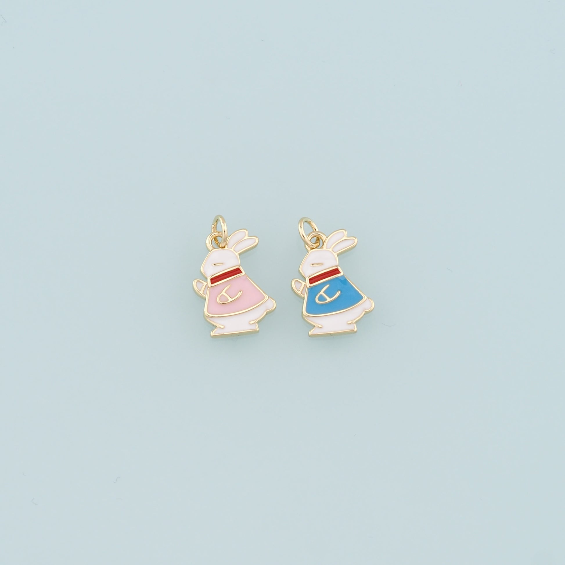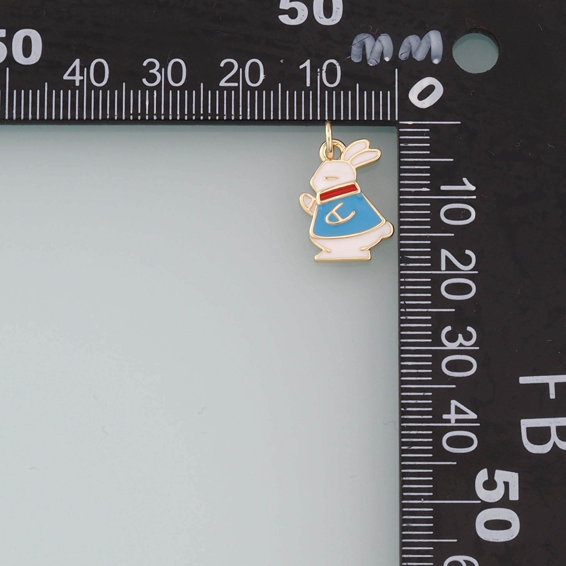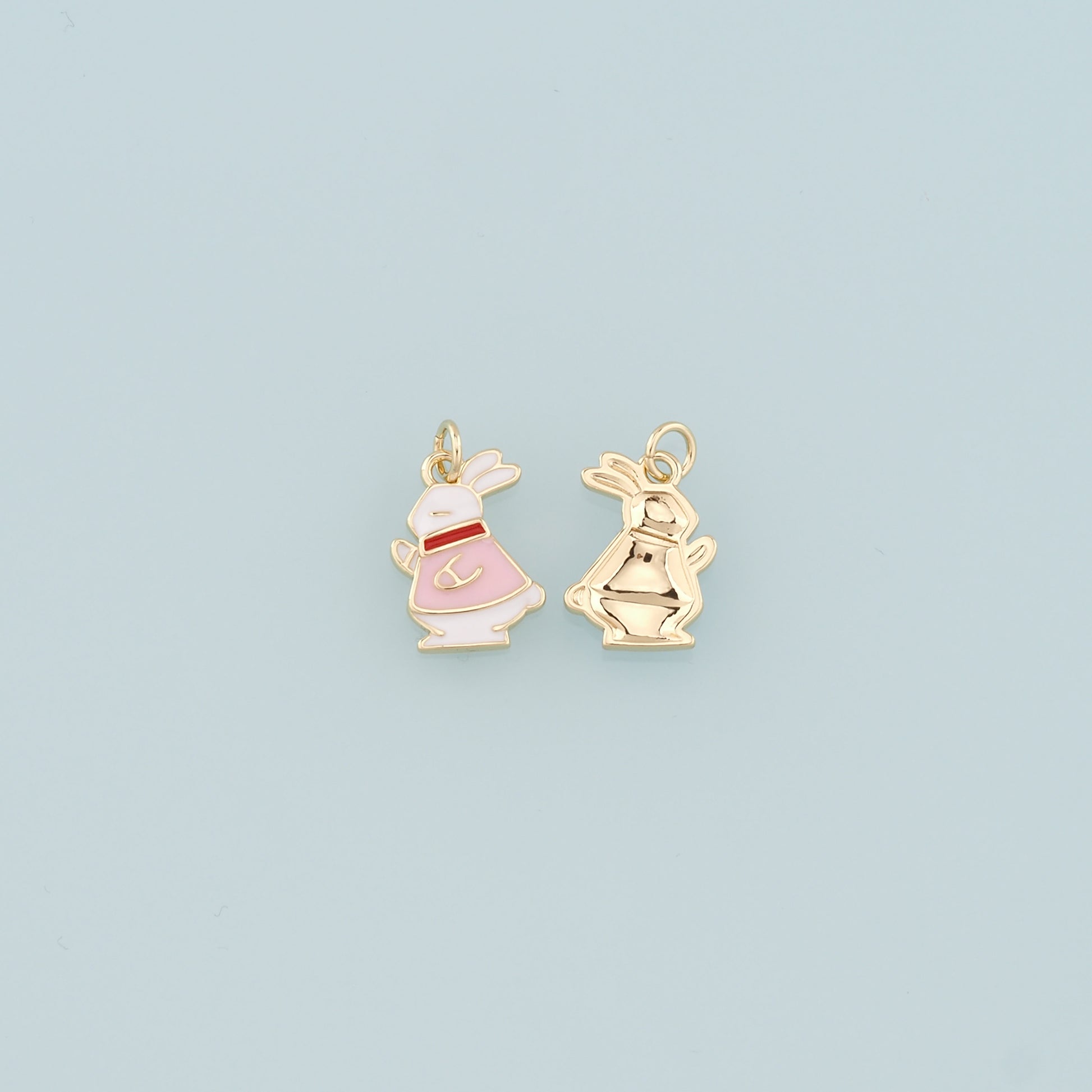 18K Gold Filled Rabbit Pendant,Enamel Animal Charm Bracelet Necklace for DIY Jewelry Making Supply